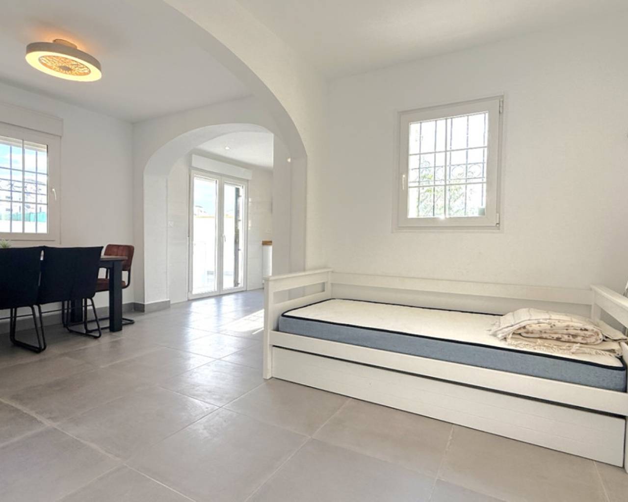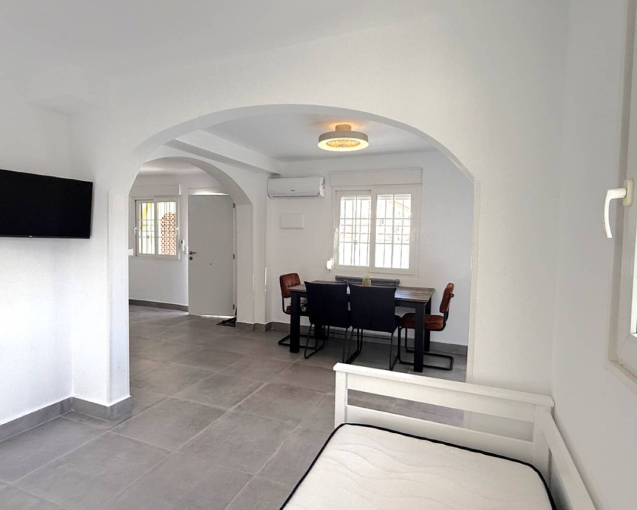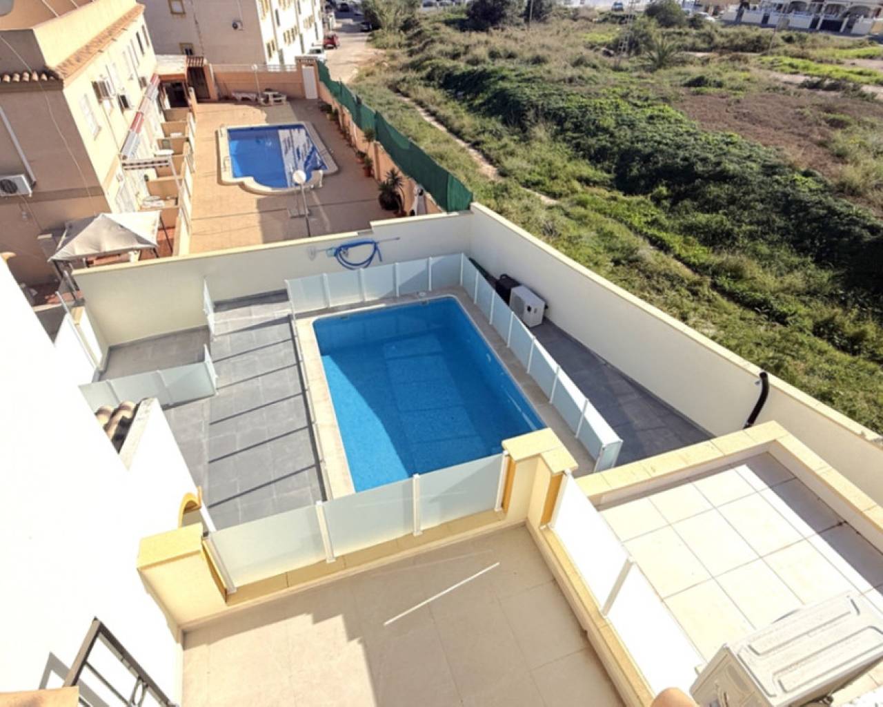 Discover this beautifully fully renovated corner house in La Zenia, ideally located just around the corner from the famous La Zenia Boulevard. Enjoy modern Mediterranean living in a home that combines style, comfort, and exceptional outdoor space. Originally designed with 3 bedrooms and 2 bathrooms, the property has been intelligently reconfigured into a spacious 2-bedroom, 2-bathroom layout, offering larger rooms, improved flow, and a more open, contemporary feel throughout. Step outside to your own private oasis: a heated swimming pool, perfect for year-round enjoyment, surrounded by a sunny terrace ideal for relaxing, dining, or entertaining. As a corner house, the property benefits from extra privacy, additional light, and generous outdoor areas. Inside, every detail has been updated—modern finishes, high-quality materials, and thoughtful design choices make this home truly move-in ready. Whether you're seeking a permanent residence, a holiday retreat, or a high-yield rental investment, this renovated gem in the heart of La Zenia offers outstanding value and convenience.