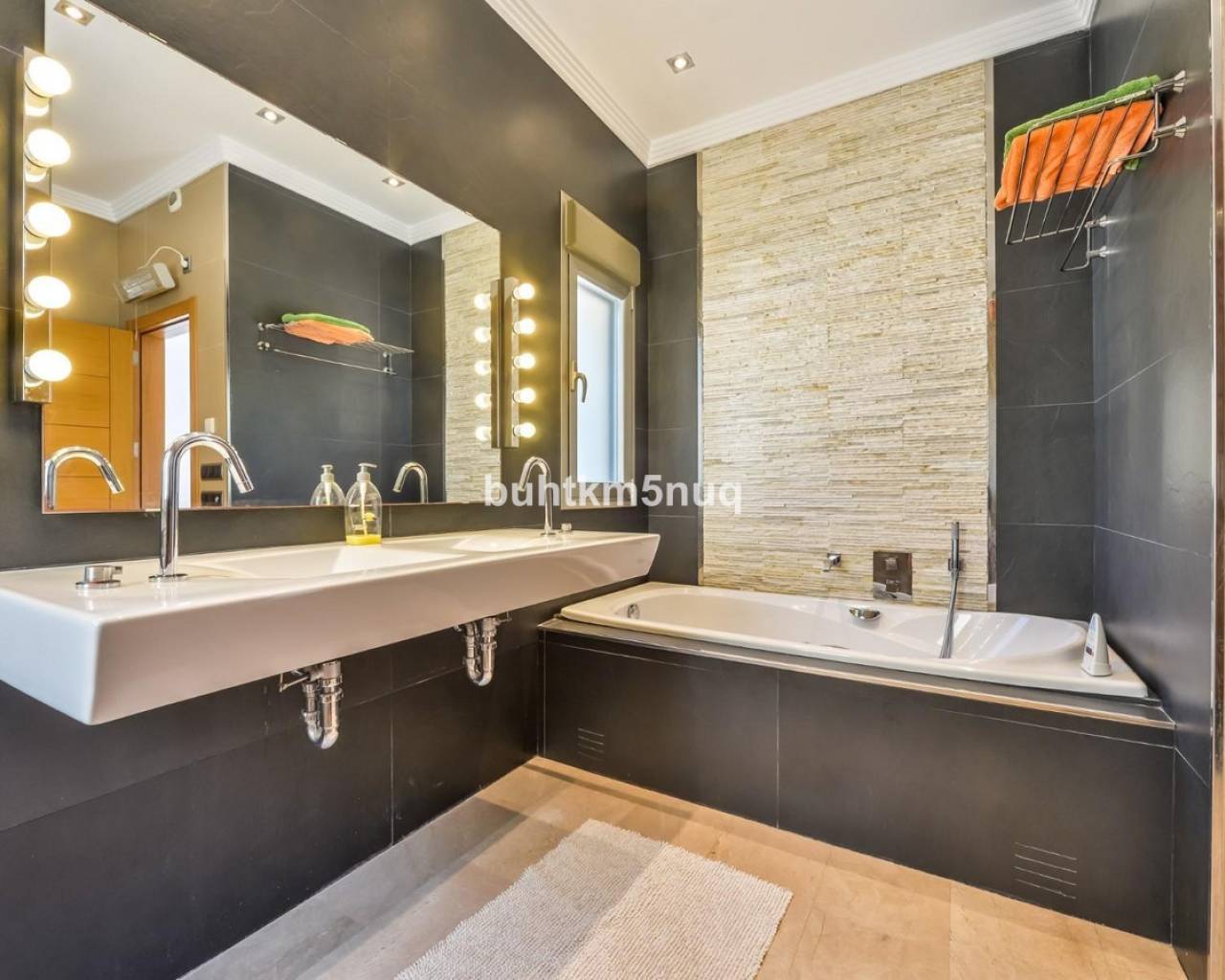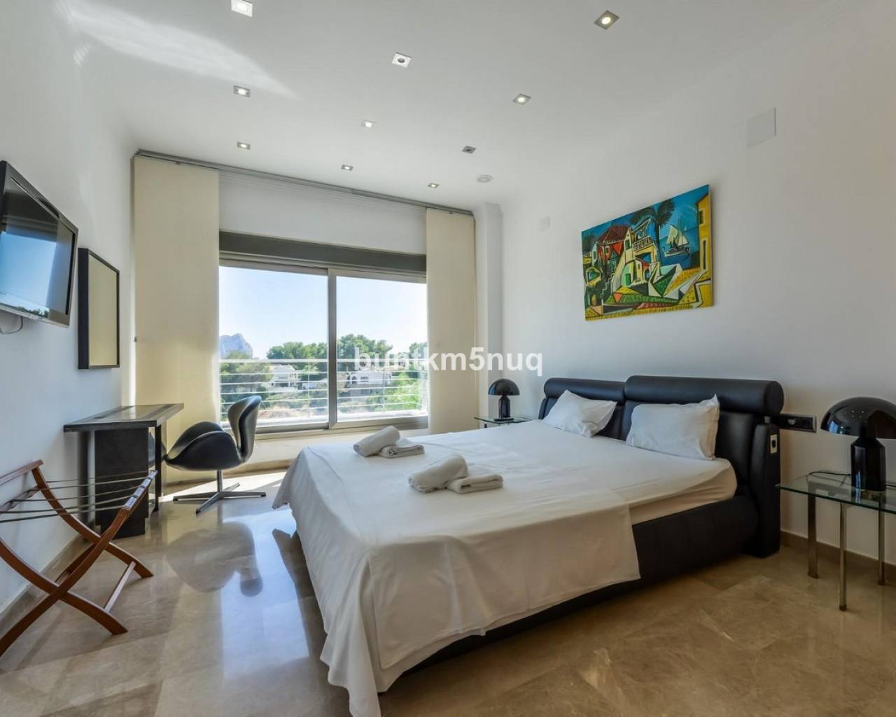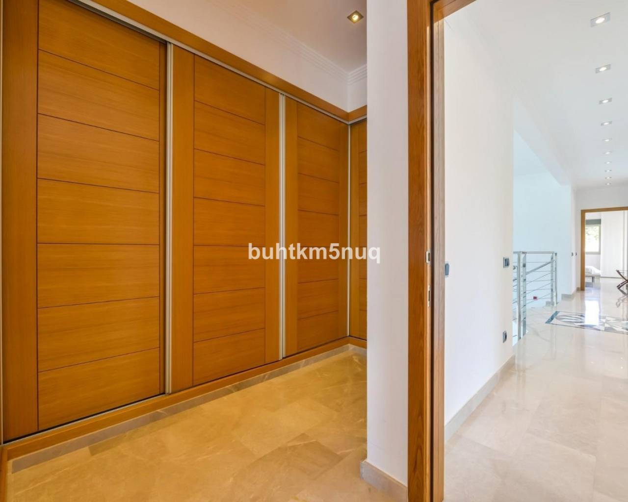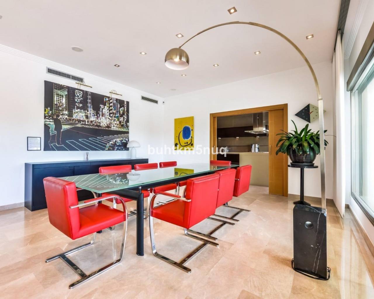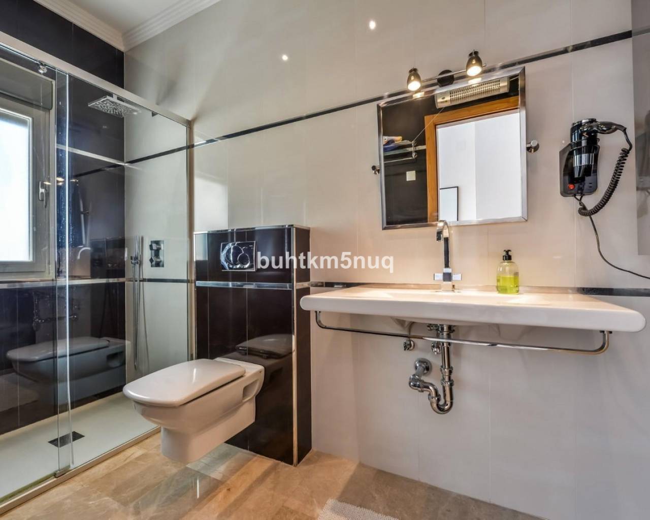 This amazing property of 585 sqm is divided over 3 floors, and built on a plot of 1843 sqm. The main living-area has a very impressive entrance, giving access to the livingroom, kitchen with storage-room, inside pool, fitness-room and guest-toilet. 2 staircases lead to the sleeping-area, having 4 big bedrooms each with its bathroom ensuite and an office. The guest-apartment at the groundfloor has a living-room with an inviting bar, a large kitchen, a bedroom and a bathroom. Electric shutters. Gas central floor-heating. AC room-units. Carport for 3 cars, and private parking for 3 more cars. Pool with overflow.
