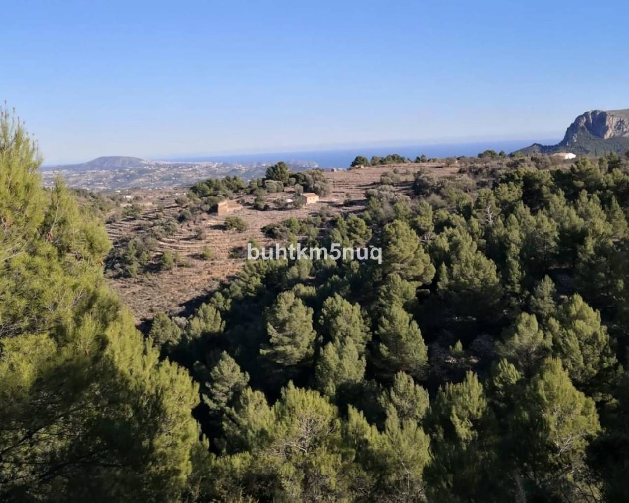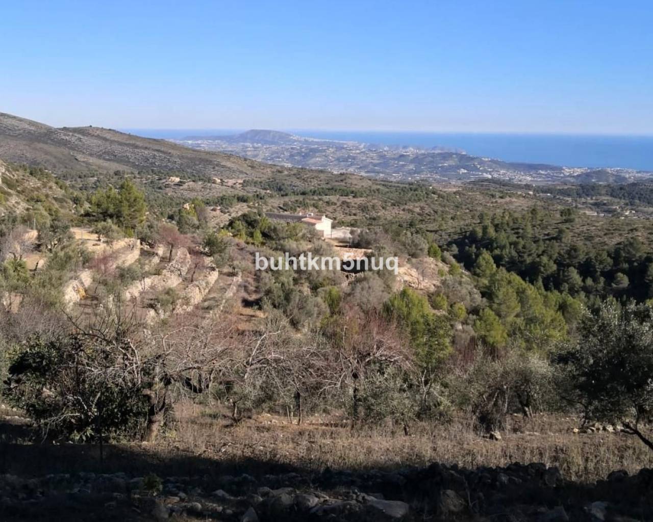 Fantastically located plot with views of the Mediterranean Sea, the coastline, the valley and the Bernia. With clear blue sky views of Ibiza!! Totally private and unoverlooked.On the plot there is a small building with room with fireplace and bathroom. This can be extended to for example a guesthouse. Possibility to construct 400m2 : House + amenities, such as pool, recreational and lounge areas, stables etc. Quiet location but just 5 minutes from several restaurants and 20 minutes from Jalon with terraces, bodegas, supermarkets, walking and cycling routes, etc. The plot has 255 m. lateral sea view.
