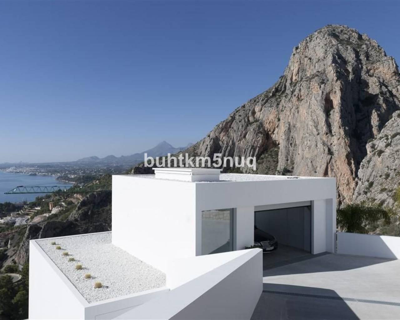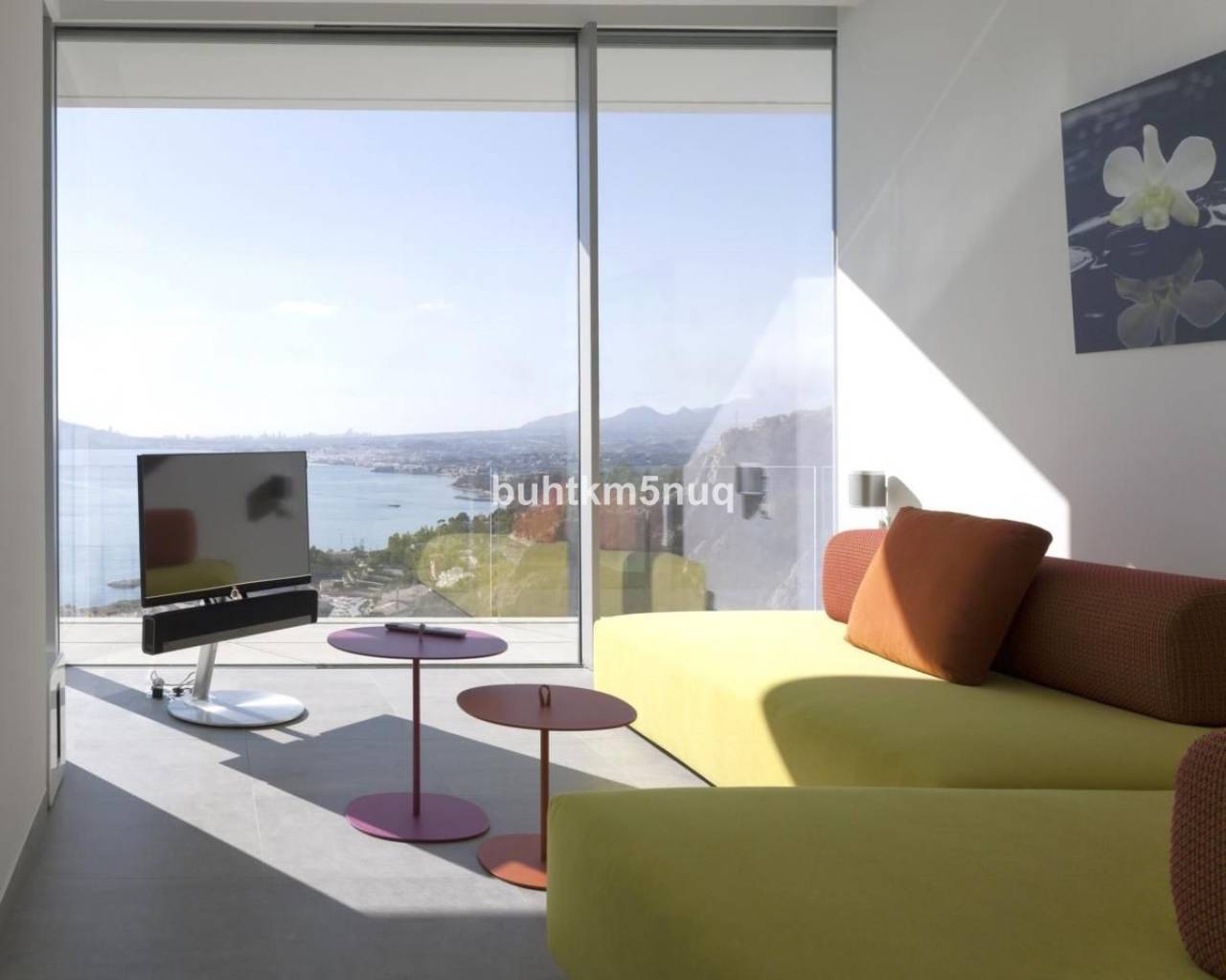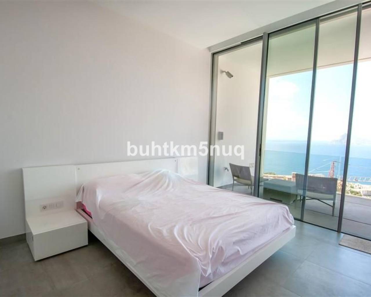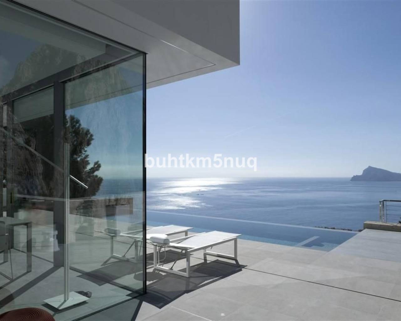 The property is spread over three stylish living levels, all connected by an elegant staircase with a private lift.~~On the top floor, you'll find a spacious entrance hall with direct access from the generous garage.~One level below are two large bedrooms, each with its own en-suite bathroom, as well as a separate TV lounge that can easily be converted into a third bedroom.~~The main living level welcomes you with an open, light-filled living space and a fully equipped designer kitchen with a cooking island. This floor also includes a convenient utility/storage room, a guest toilet, and a tastefully furnished office space — ideal for working from home while enjoying sea views.~~The living area opens onto a spacious sun terrace with a heated saltwater infinity pool (12 x 3.5 m), which appears to flow seamlessly into the Mediterranean horizon.~Beneath the pool is a large multifunctional basement — perfect for a gym, wellness area, or wine cellar.~~Top-tier features include:~Individually regulated underfloor heating in each room~~Integrated air conditioning~~Full home automation system~~Alarm system with video surveillance~~Central vacuum system~~High-quality materials and finishes built to the highest standards~~This hyper-equipped modern villa offers not only comfort and style but also an exceptional location and panoramic views that will inspire you every single day.~You still have the option to build an additional 200 m2 given the size of the plot.