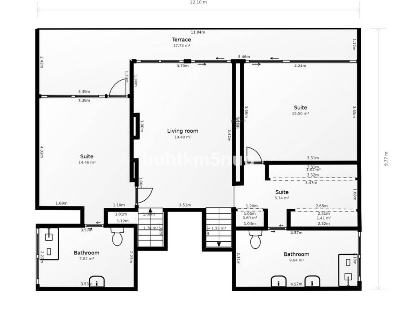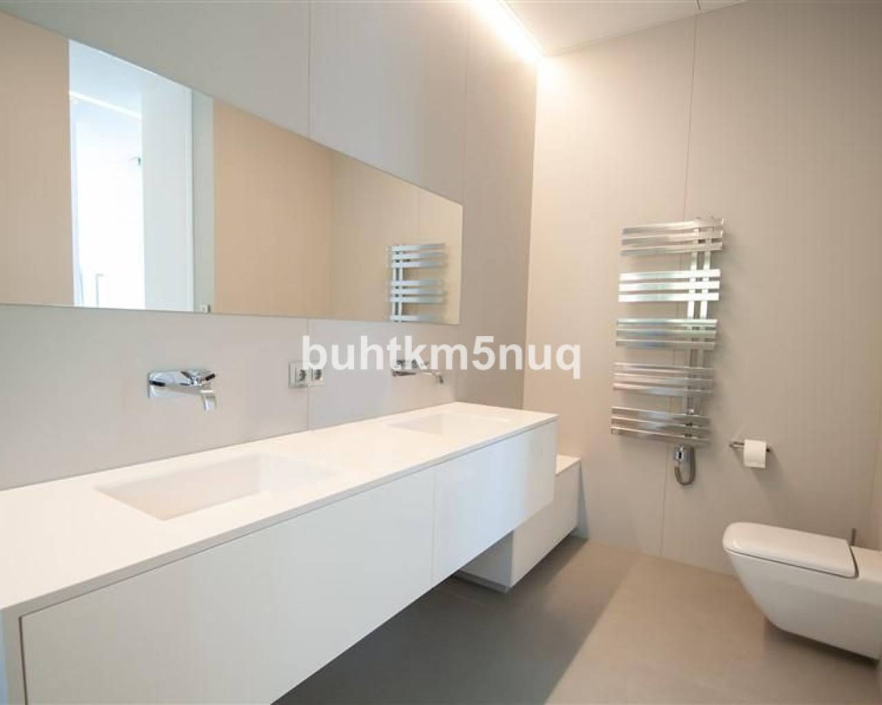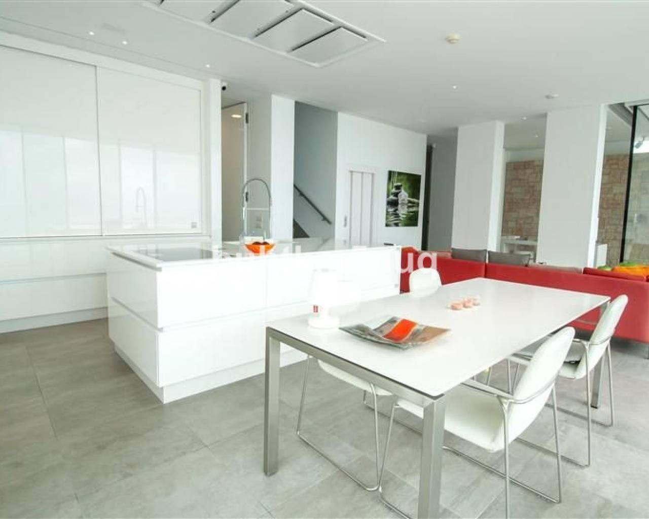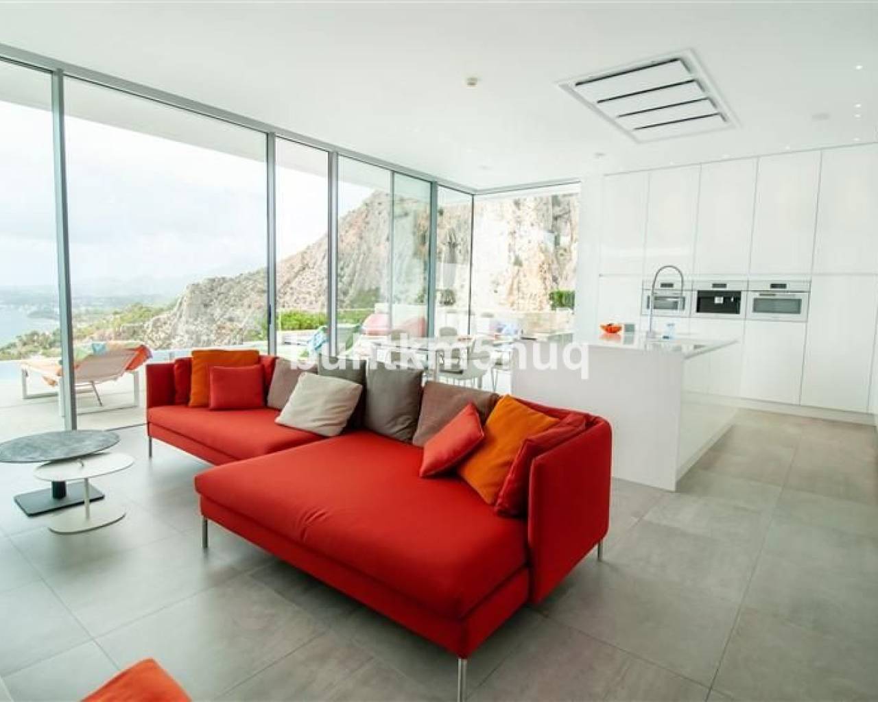 The property is spread over three stylish living levels, all connected by an elegant staircase with a private lift.~~On the top floor, you'll find a spacious entrance hall with direct access from the generous garage.~One level below are two large bedrooms, each with its own en-suite bathroom, as well as a separate TV lounge that can easily be converted into a third bedroom.~~The main living level welcomes you with an open, light-filled living space and a fully equipped designer kitchen with a cooking island. This floor also includes a convenient utility/storage room, a guest toilet, and a tastefully furnished office space — ideal for working from home while enjoying sea views.~~The living area opens onto a spacious sun terrace with a heated saltwater infinity pool (12 x 3.5 m), which appears to flow seamlessly into the Mediterranean horizon.~Beneath the pool is a large multifunctional basement — perfect for a gym, wellness area, or wine cellar.~~Top-tier features include:~Individually regulated underfloor heating in each room~~Integrated air conditioning~~Full home automation system~~Alarm system with video surveillance~~Central vacuum system~~High-quality materials and finishes built to the highest standards~~This hyper-equipped modern villa offers not only comfort and style but also an exceptional location and panoramic views that will inspire you every single day.~You still have the option to build an additional 200 m2 given the size of the plot.