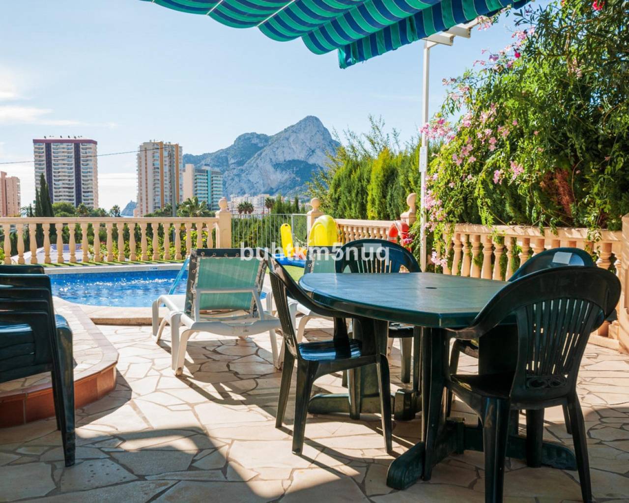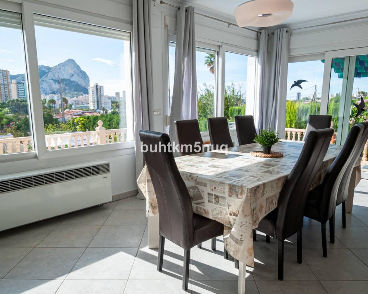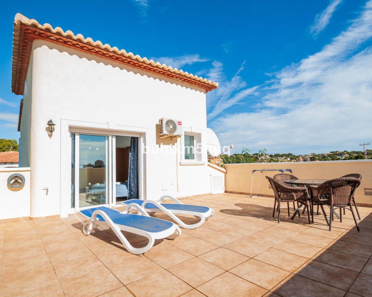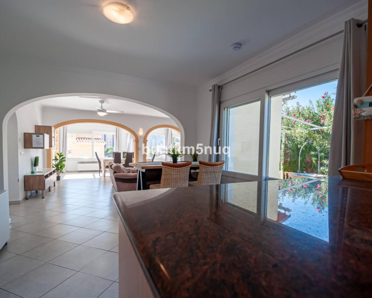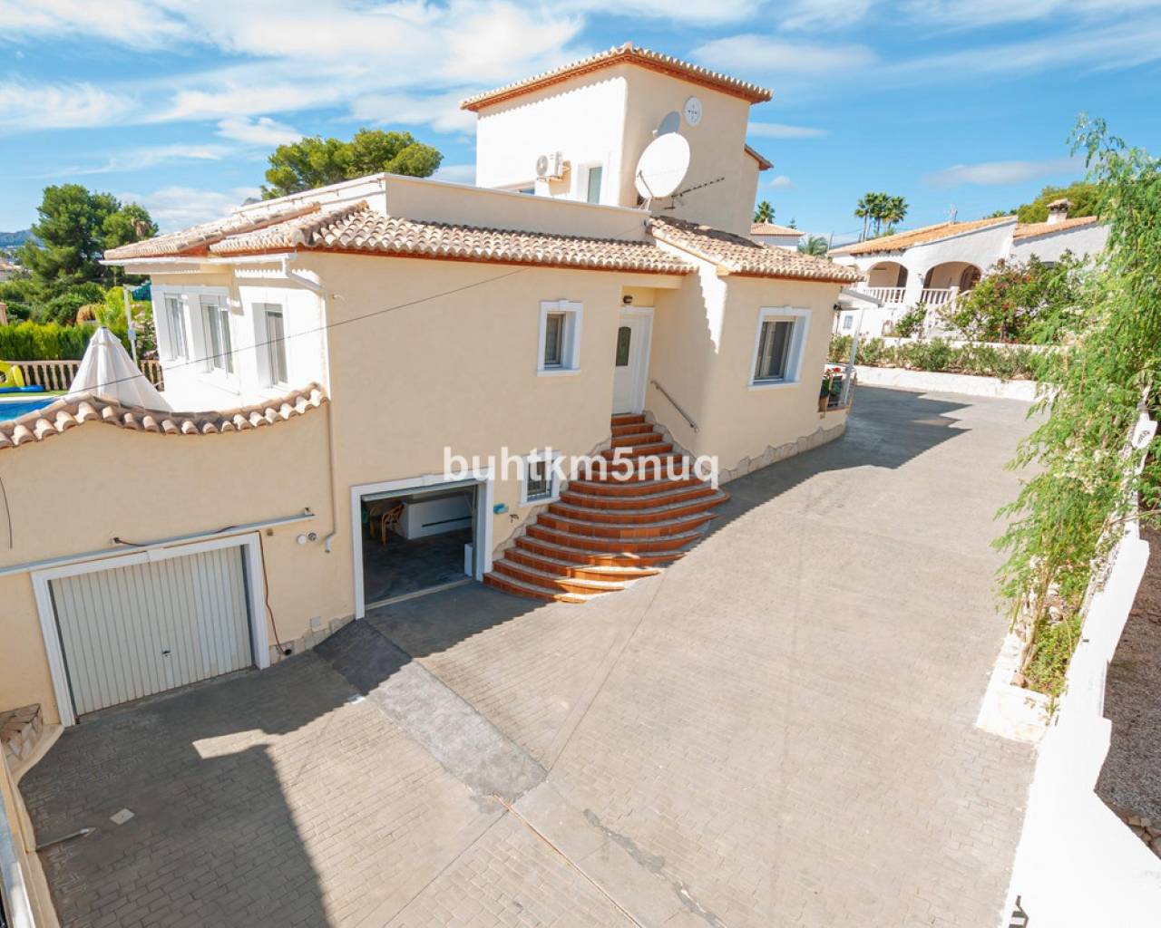 Discover this magnificent property located on a plot of 785 m2, perfect for those seeking comfort and spectacular views. The home features a spacious interior of 115 m2 smartly distributed over two floors. On the ground floor, you will find a cozy foyer leading to a bright living-dining room, as well as a modern open kitchen designed to maximize space. Additionally, it offers two comfortable bedrooms and an elegant family bathroom, complemented by two terraces where you can enjoy the outdoors.~~On the upper floor stands out the master bedroom equipped with its own ensuite bathroom and impressive private terrace; perfect for relaxing while taking in breathtaking views of the Mediterranean Sea, the iconic Peñón de Ifach rock formation, and nearby salt flats.~~The property also includes exceptional amenities such as centralized heating/cooling system (hot/cold), private pool (8x4 meters), ample landscaped areas ideal for outdoor activities or simply enjoying nature's surroundings. With enough capacity for several vehicles thanks to its double garages plus additional spaces outside,~it also has its own water well which ensures constant independent supply throughout the year.