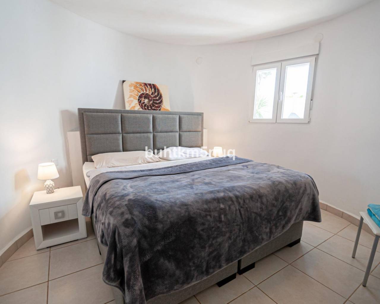 This modern renovated villa is located in the middle of beautiful Benissa-Moraira.~The villa offers three spacious apartments, each featuring two bedrooms and a private terrace. These modern living spaces come fully equipped with kitchens, cozy living rooms complete with fireplaces, and stylish bathrooms.~~All apartments are equipped with air conditioning and secure parking with a convenient carport. Indulge in the outdoor lifestyle with two swimming pools and a built-in barbecue area, perfect for entertaining guests.~~Surrounded by a beautifully landscaped garden, filled with palm trees, lemon trees, and various plants, this charming property offers a serene retreat for potential buyers."