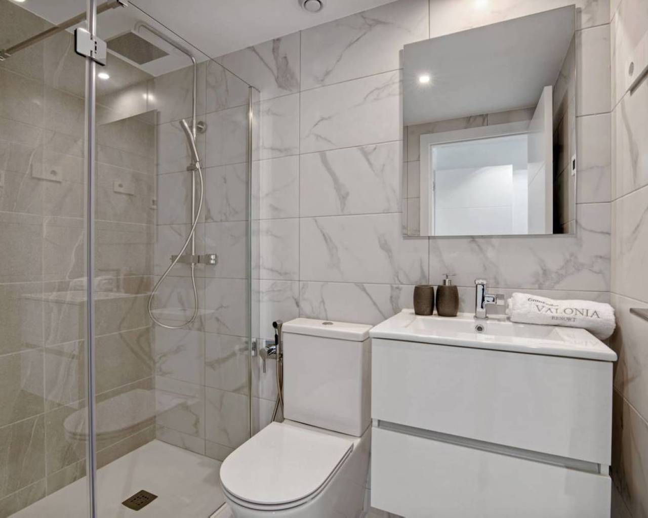 The Residences Apartments in a prime location in Punta Prima, just minutes from the sea. Valonia has a resort style development with community pool, green areas, gym, jacuzzi, playground as well as a padel court. There will also be charging point for electric vehicles. Choose between two or three bedrooms and two bathrooms, one of which is en-suite. There is an open-plan layout between the kitchen and living area. The living room and master bedroom both have access to the spacious and sunny balconies which have views over the surrounding area. Penthouses also have a large private roof terrace. AC in the apartment and a parking space and storage room in the underground parking garage are included. The Area Punta Prima is a tranquil oasis close to all amenities, located between Orihuela Costa and Torrevieja.  The beach promenade has stunning views over the Mediterranean Sea as well as Orihuela Costa and the Torrevieja Skyline, and is the ultimate place to enjoy the view, go for a walk or for a morning run.   A stroll up or down, in the middle of Punta Prima is the new restaurant area which offers various types of cuisine as well as bars, pharmacies and a supermarket.  The popular shopping centre La Zenia Boulevard is only ten minutes away by car, and offers a wide range of shops, restaurants and bowling. Drive ten minutes towads Torrevieja and you find the Habaneras shopping centre and the cinema. Alicante airport is 45 minutes away by car.