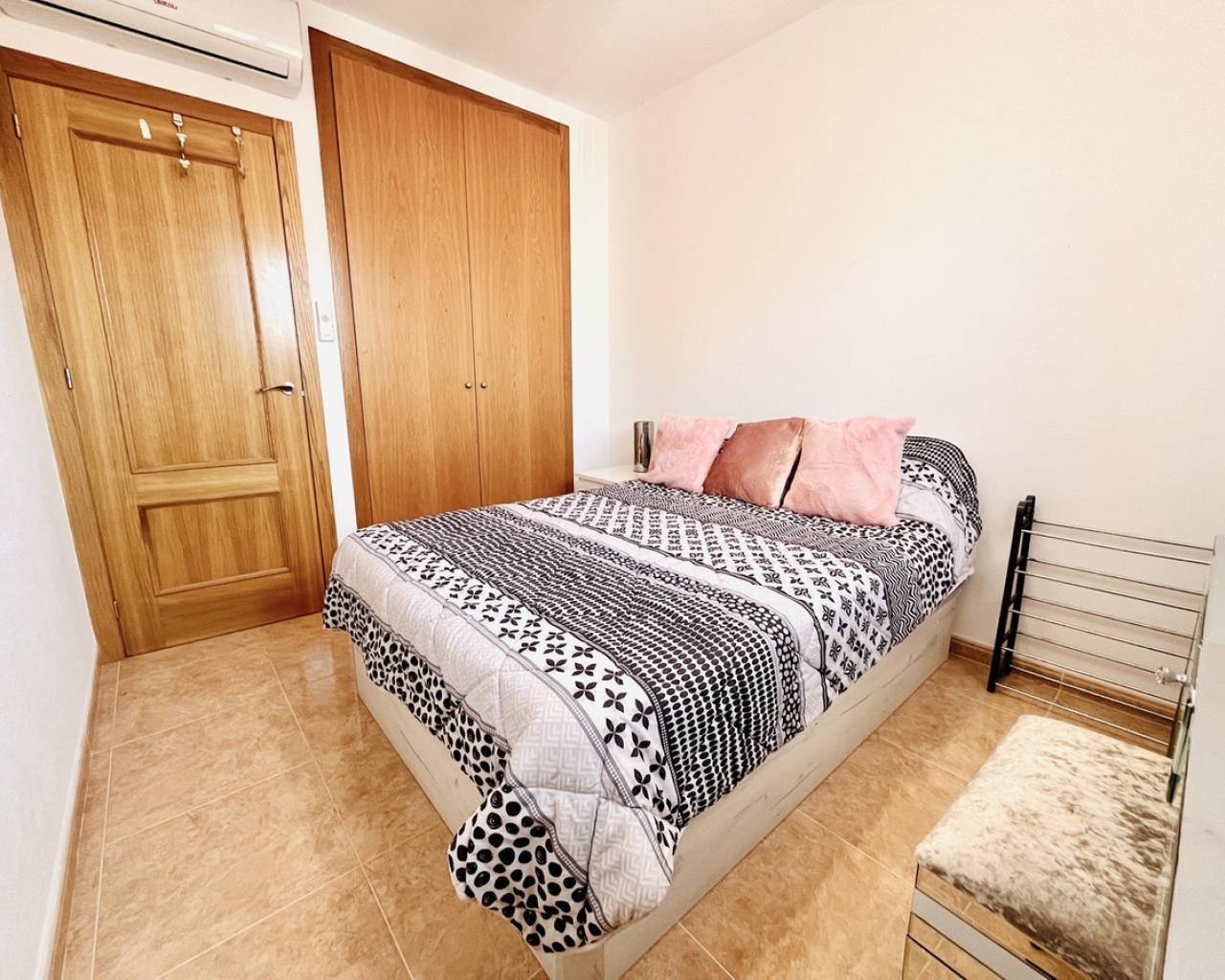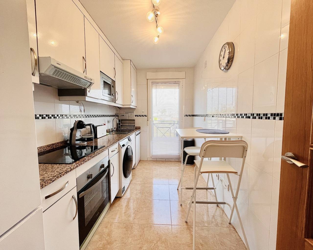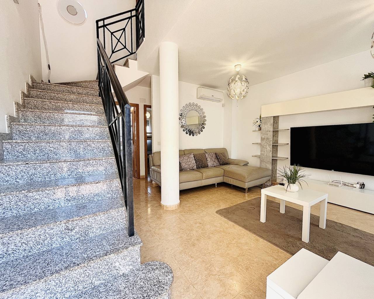 This beautifully presented 3-bedroom, 2-bathroom townhouse is situated in a peaceful community in the heart of Lomas de Cabo Roig. With its south-facing orientation, the property is bathed in natural sunlight throughout the day, creating a warm and inviting atmosphere. Upon entering, you're welcomed by a spacious living area that seamlessly connects to a fully equipped kitchen, perfect for both everyday living and entertaining guests. The home is sold fully furnished, allowing for a smooth and immediate transition. The master bedroom offers serene sea views, providing a tranquil retreat to unwind. Step out onto the private terrace to enjoy the coastal breeze and picturesque vistas. A standout feature of this townhouse is the expansive underbuild, mirroring the size of the main living area. This versatile space offers endless possibilities, whether you envision a home office, gym, or additional living quarters. Outdoor living is equally impressive, with both front and rear patios perfect for alfresco dining or soaking up the sun. The communal pool is just a few steps, offering a refreshing escape during the warmer months. Location-wise, you're just a 10-minute walk from local bars, shops, and restaurants, as well as the newly established commercial center in Lomas de Cabo Roig. The renowned La Zenia Boulevard is approximately 20 minutes on foot, providing a hub for shopping and entertainment. For beach enthusiasts, the pristine shores of the Orihuela Costa are merely a 5-minute drive away. This property presents an exceptional opportunity to embrace a relaxed Mediterranean lifestyle, whether as a permanent residence, holiday getaway, or investment.