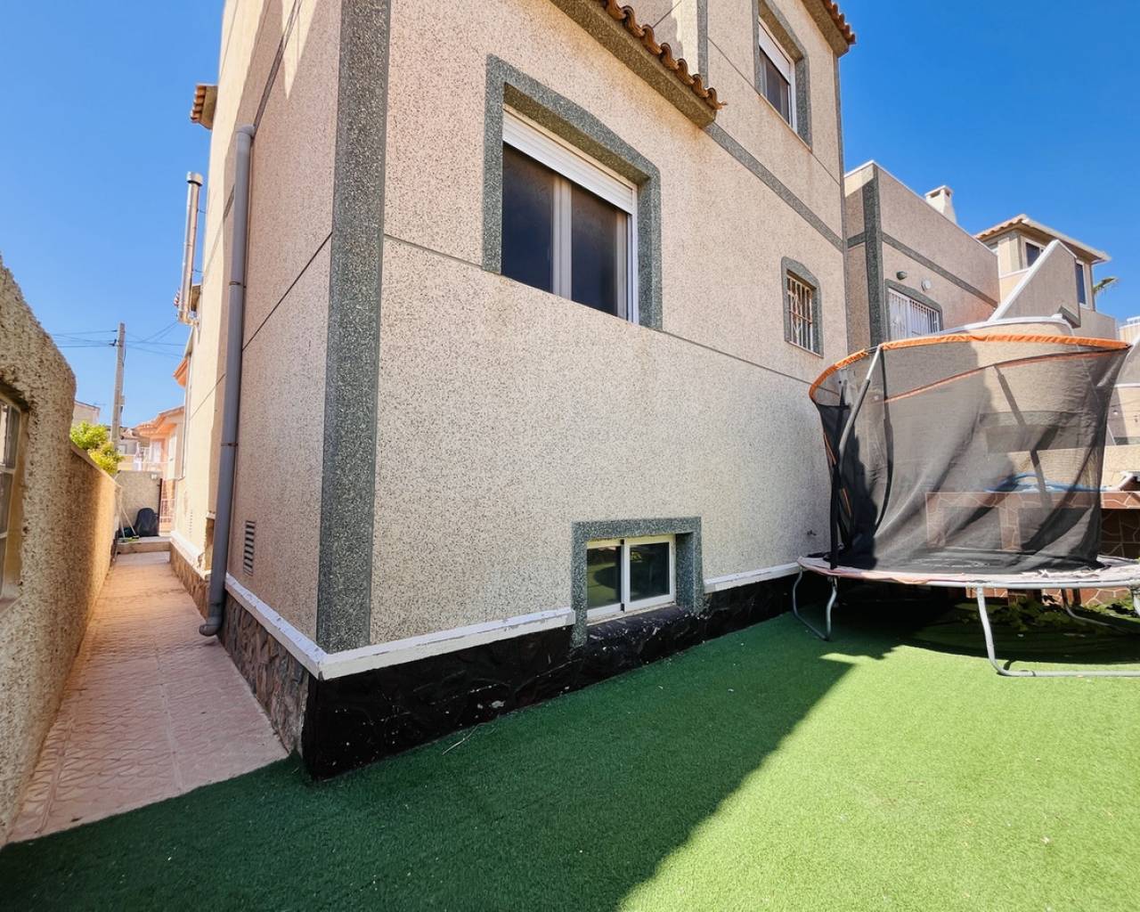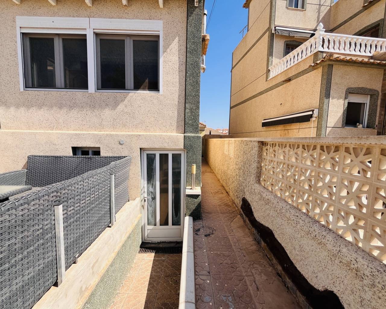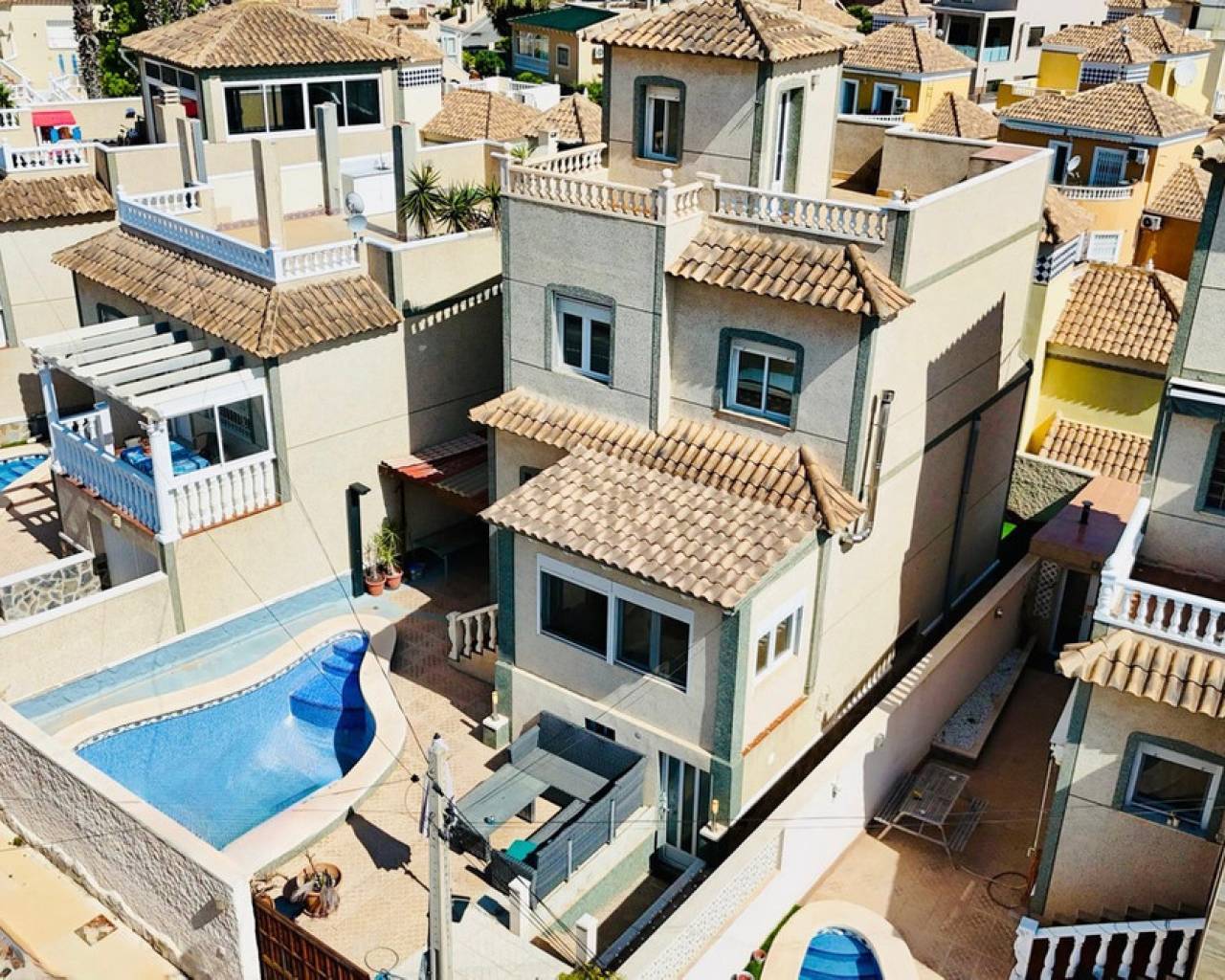 A fantastic opportunity to purchase this spacious and versatile 4-bedroom, 3-bathroom detached villa, perfectly located in the popular residential area of San Miguel de Salinas. Spread across four levels, the property boasts a bright and generous living room, a separate kitchen, and multiple outdoor spaces to enjoy the Mediterranean lifestyle. One of the standout features is the fully self-contained 1-bedroom apartment in the underbuild, complete with its own private access from the front garden, ideal for visiting family, guests, or a potential rental income. The villa also benefits from a large private solarium offering beautiful panoramic sea views — the perfect space for sunbathing, relaxing, or entertaining with friends. Set within easy walking distance to a great selection of local bars, restaurants, and services, and just a short stroll to the famous Villamartin Plaza, golf course, and a 10-minute drive to several blue Flag beaches. An ideal property for anyone looking for a holiday retreat, a spacious family home, or an investment with excellent rental potential in a sought-after and tranquil setting.