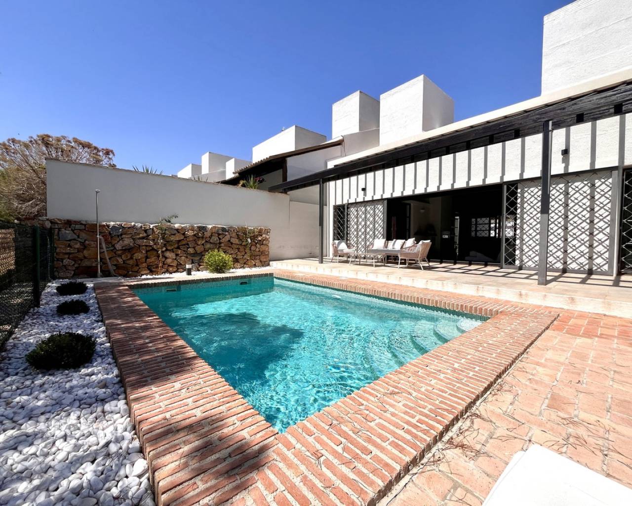 Stunning 2-Bedroom, 2-Bathroom Townhouset set on the front line of the golf course offers a rare opportunity to enjoy peace, privacy, and panoramic green views in the sought-after La Peraleja Golf Resort. The home features elegant wooden beam ceilings, eurotermina throughout, and a cozy chimney – blending rustic charm with modern living. The spacious layout includes a bright open-plan living and dining area, a fully fitted kitchen, and two generously sized bedrooms with built-in wardrobes. Electric radiators provide comfort year-round. Outside, enjoy both front and back private gardens and your very own private swimming pool — perfect for enjoying the warm Spanish sun and entertaining guests. The resort itself boasts 24-hour gated security, newly installed CCTV throughout, and a relaxed, exclusive atmosphere. The 18-hole golf course is currently under full renovation and set to be completed by the end of 2025, with a new restaurant also in development, adding future value and lifestyle appeal. Conveniently located just a 5-minute drive from the charming town of Sucina, where you'll find shops, restaurants, and everyday amenities, this property offers a perfect blend of countryside calm and modern convenience. Whether you're looking for a permanent home, holiday retreat, or a smart investment, this property ticks all the boxes for comfortable and secure Mediterranean living.