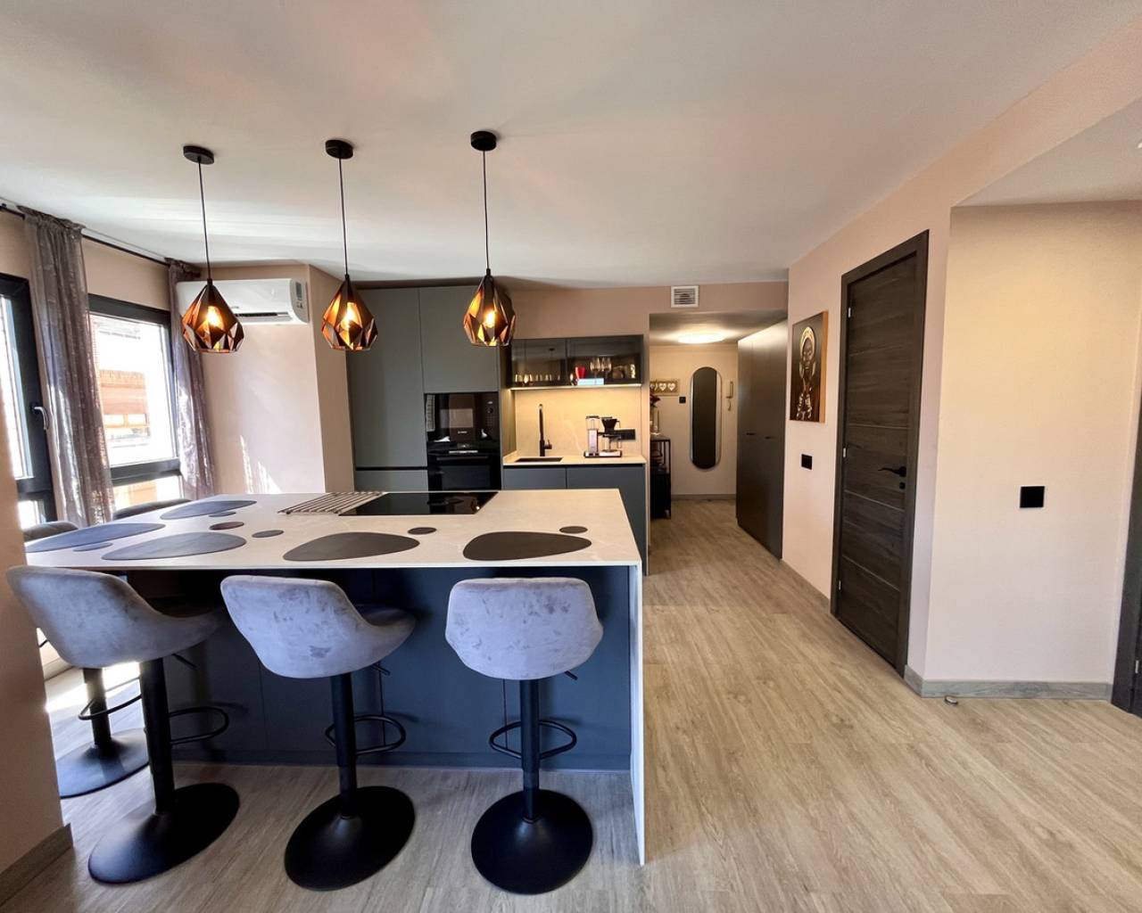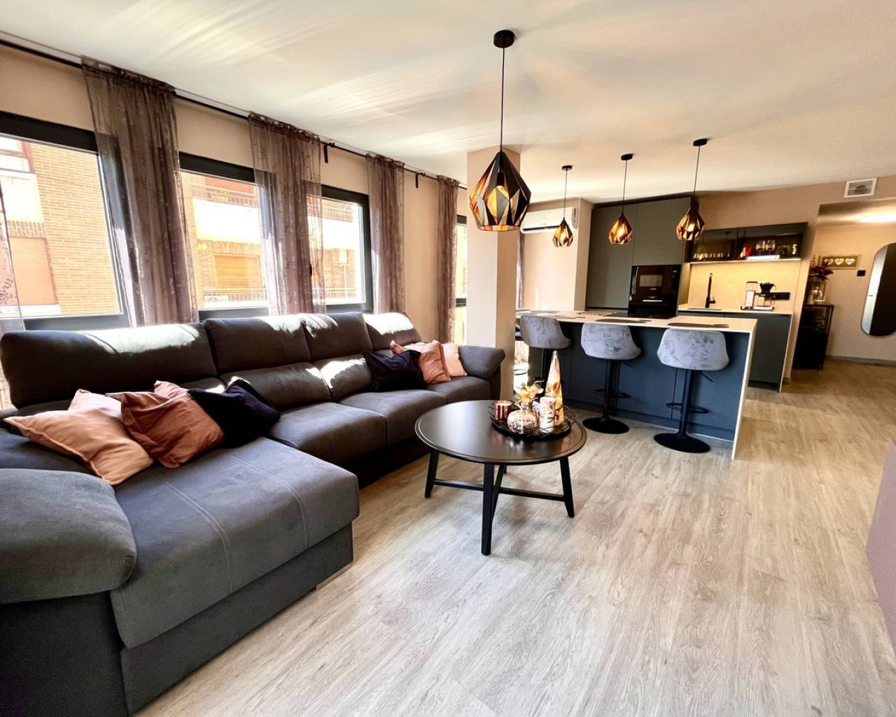 This beautifully refurbished 4-bedroom, 2-bathroom apartment located in the heart of Almoradí. Fully renovated to a high standard, the apartment features a contemporary open-plan kitchen with a central island, waterproof vinyl laminate flooring throughout, and ducted air conditioning. Both bathrooms have underfloor heating, with the master en-suite offering a spacious double rainfall shower. Ready to move straight into, this home is ideally situated within walking distance of all local amenities — including shops, bars, restaurants, schools, and more. Almoradí's vibrant main square is just a short stroll away, and the beaches of Guardamar, including Playa Moncayo, are just a 20-minute drive. A wheelchair-friendly, it offers the perfect combination of comfort, accessibility, and modern living. This is a rare opportunity to own a spacious, turnkey apartment in one of the most well-connected towns in the Vega Baja region.