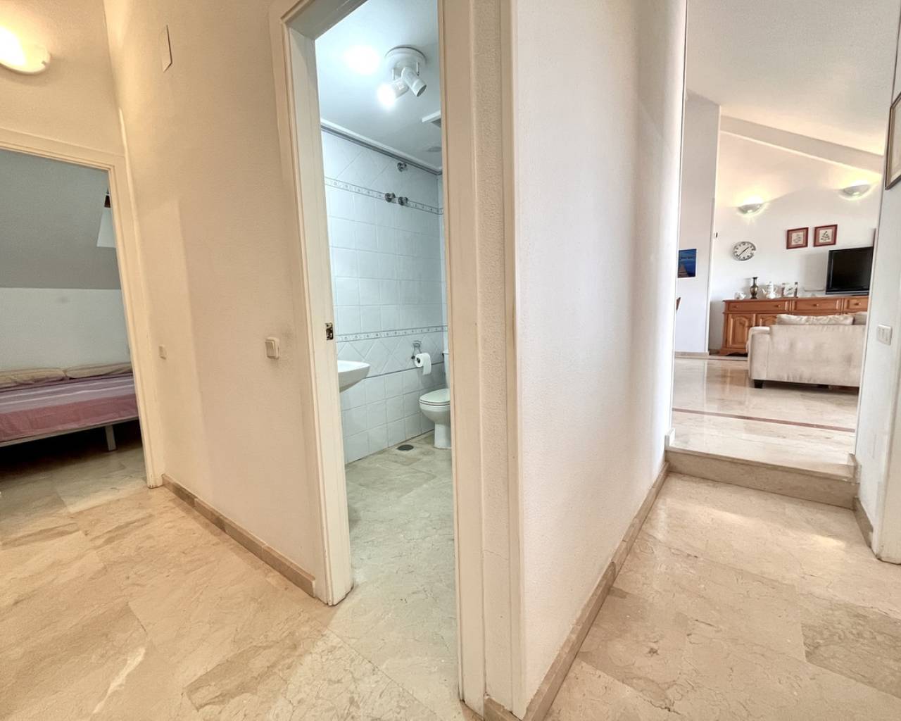 Step into this immaculate 3 bedroom, 2 bathroom penthouse, boasting unbeatable panoramic sea views over the stunning Dehesa de Campoamor and the glistening Mediterranean Sea. Sold fully furnished and ready to move in, this elegant home offers the perfect blend of comfort, style, and coastal charm. Each bedroom features built-in wardrobes, A/C in every room and the spacious open-plan living area flows effortlessly onto a private terrace, perfect for soaking up the Spanish sun and enjoying the tranquil surroundings. The penthouse is part of a well-maintained community with fantastic shared amenities including a large communal pool and tennis courts. Additional features include a private garage space and a separate storage room, providing both convenience and security. Located in a peaceful area, you're just 900 meters from the beautiful beaches of Campoamor. Food lovers will appreciate being only a 5-minute walk to the renowned Spanish restaurant Las Villas, famous for its delicious paella and traditional cuisine. The vibrant Cabo Roig strip, with its lively selection of bars, restaurants, shops, and entertainment, is just a 5-minute drive away, giving you easy access to the best of the Costa Blanca lifestyle. This exceptional penthouse truly offers the best of both worlds – serenity and accessibility. Don't miss the opportunity to own your own slice of paradise on the Mediterranean coast!