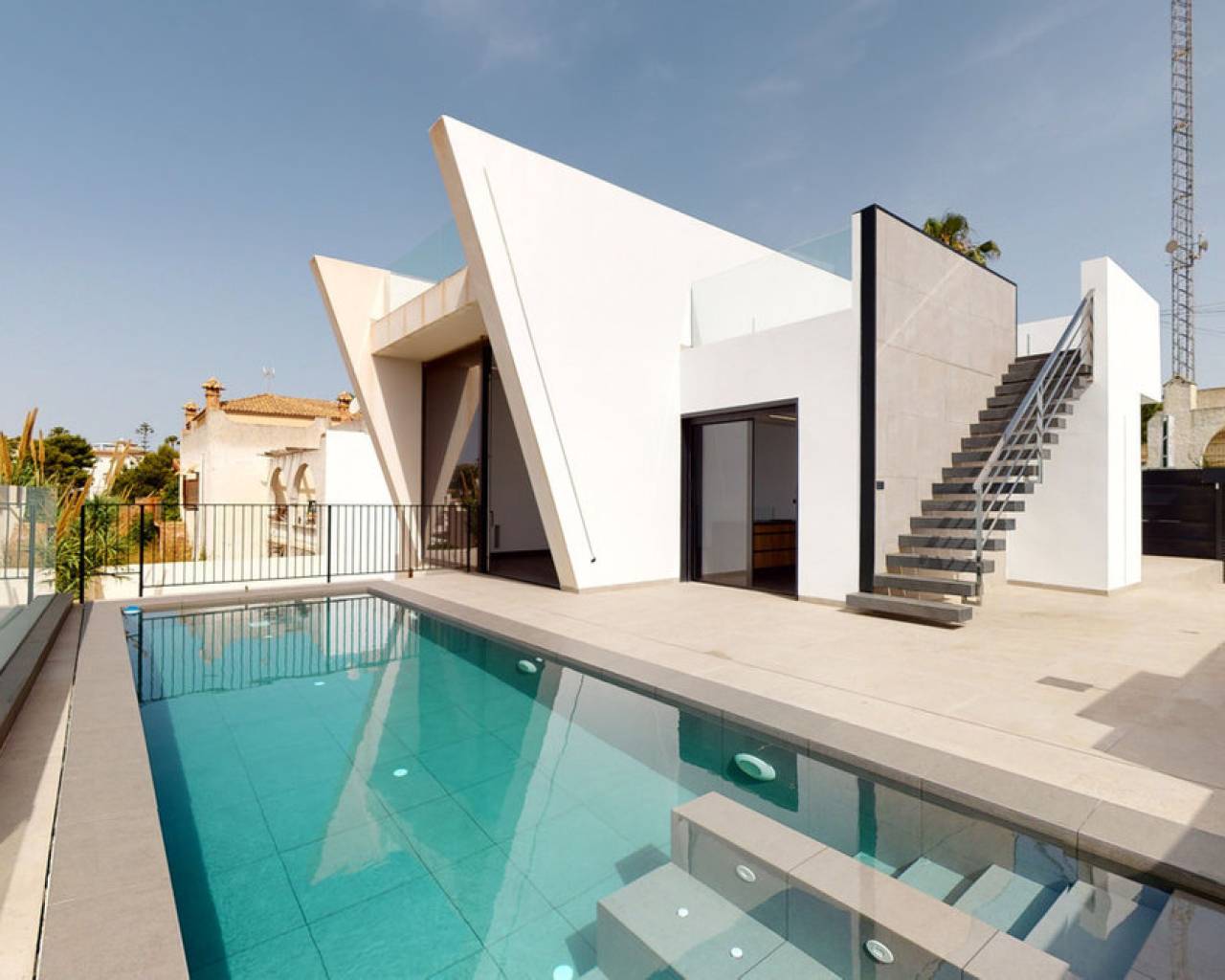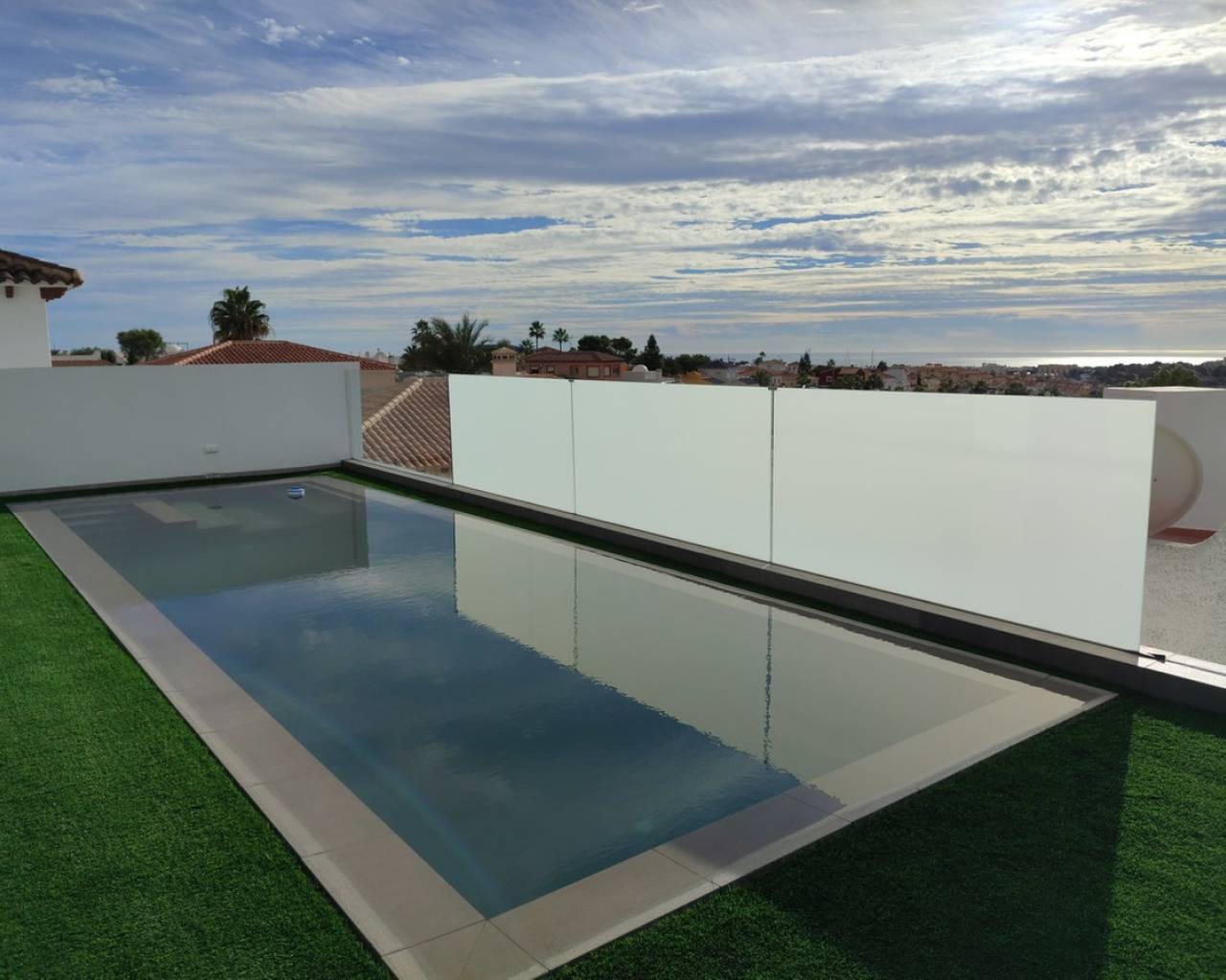 Stunning New-Build Villa in Los Balcones This exceptional new-build villa in Los Balcones combines style, comfort, and privacy, offering 128 m² of living space on a 475 m² private plot with a beautifully landscaped garden, large sun terraces, and a private pool, perfect for enjoying the Mediterranean lifestyle. The property features 3 spacious bedrooms with en-suite bathrooms, three with walk-in wardrobes and one with a built-in wardrobe, while two of the bedrooms open directly onto a generous private balcony with open views. Inside, the villa is finished to the highest standard, including a state-of-the-art Airzone system for individual climate control in each room. A major highlight is the 220 m² private gated garage, providing secure parking and ample storage. Located in a desirable residential area close to shops, restaurants, supermarkets, health centers, and just a short drive from Torrevieja's beaches, this villa is ideal as a permanent home, a luxury holiday retreat, or a high-end rental investment.