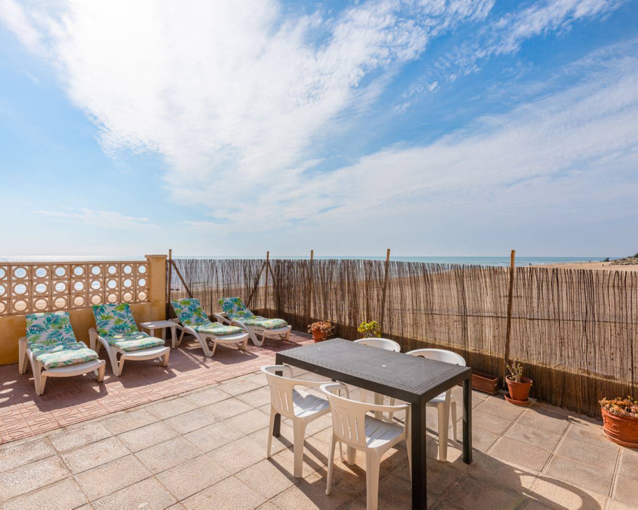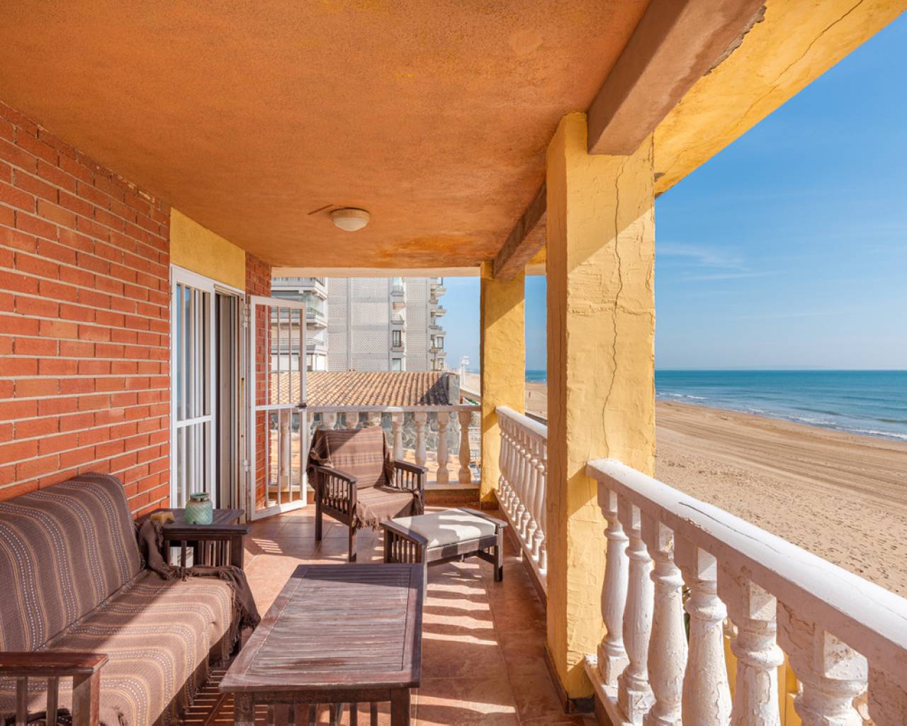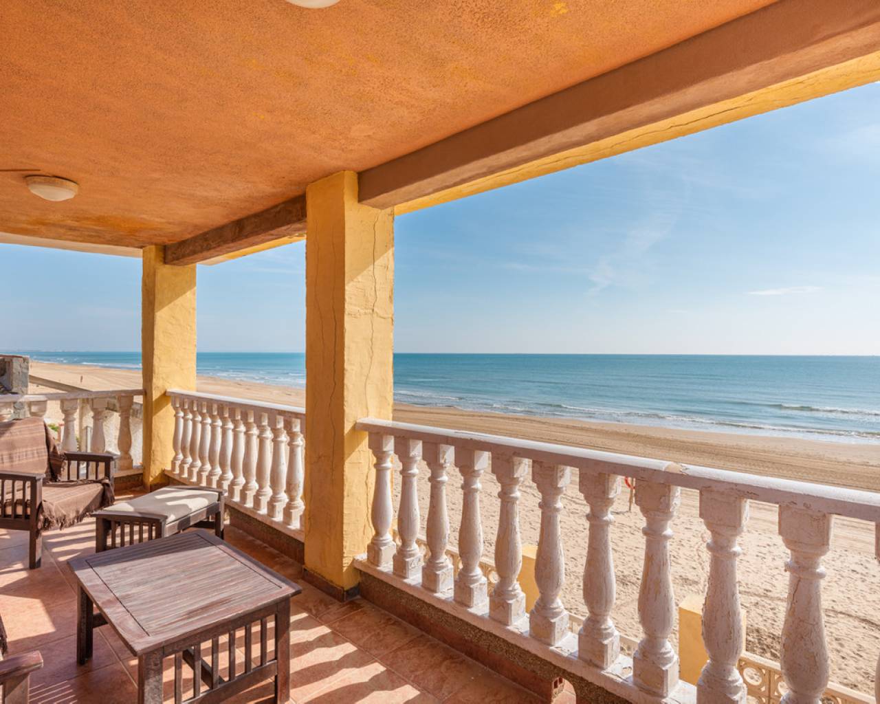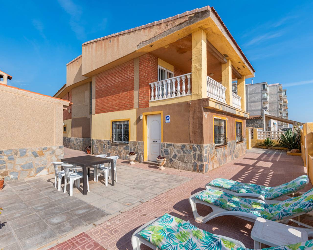 Unique opportunity 7 bedrooms villa on the beach. The villa is built on a 467 sqm plot and has a living size of 266 sqm set over two floors. The villa consist of seven bedrooms, three bathrooms one of them en-suite, open-plan kitchen, living/dining room, cover terrace, garage, garden with private direct access to the beach and a BBQ area. The villa is in condition to enter directly to live but is also a great opportunity to renovate it and have a luxury modern property in one of the best location on the Costa Blanca coast. When you access the villa you will find the living/dinning room, further on you have the open-plan kitchen which give you direct access to the other side of the garden. From the living room you will take the stairs to the first floor where you can find, two bedrooms (one of them with an en suite barthroom) with direct access to the cover terrace that has stunning sea views. Down the corredor you will find five more bedrooms and another bathroom. In the garage, with space for more than one vehicle, you will also find one more bathroom and a storage room. The villa comes fully furnished and it is equipped double glazed windows and mosquito nets. Outdoor area Here you will find a tiled garden with a BBQ area. From the garden you have private direct access to the beach. Area Guardamar is a cozy and popular place on the Costa Blanca, with a wonderful beach of 11 km of fine sand, dunes, and a beautiful park that stretches for kilometers through the town. You will also find shops, supermarkets, restaurants, coffee shops, bars, pharmacies, banks, medical and dental services, and everything you may need. As well as marina, tennis courts, soccer field, gyms and others. It is located very close to the La Marquesa golf course and the water park of Rojales, as well as only 10 km from Torrevieja, which offers a wide leisure program for all ages, shopping centers and more. Beaches The magnificent beach of "Torrelamata" in La Mata is the next to Guardamar, so the extension of wonderful beaches seems endless. Climate Guardamar is an ideal place to live, and lovely to spend the summer. Summers are always sunny and warm, while winters are mild, and the area has an average temperature of 20 degrees. Guardamar is located between the salt pans of Santa Pola, and those of Torrevieja that have an air purifying effect and help to give the area a salubrious and particularly favorable environment. The climate has an especially positive effect on people with asthma, allergies, rheumatism and skin diseases. According to medical science, the area belongs to one of the healthiest places in the world thanks to the salt lakes. Shopping In Guardamar you will find a large number of shops of all kinds and supermarkets. Also in Torrevieja, which is about 10 minutes by car, is the Habaneras and Carrefour shopping center, as well as a shopping street with a variety of shops. 15 kilometers away is the large shopping center Zenia Boulevard, where you will find a variety of shops such as Zara, Massimo Dutti, H & M, Stradivarius, Oysho, Mango, Primark, Pull & Bear, Decathlon, Guess, Kiko, Druni, Rituals , Swarowski, Leroy Merlin and many more. Golf At 7 km, in Ciudad Quesada you will find the well known golf course "La Marquesa Golf & Country Club". There are a number of nearby golf courses, such as Las Colinas Golf & Country Club, La Finca Golf, Golf Las Ramblas Golf Villamartin, Lo Romero Golf, Vistabella Golf, Real Club Golf Campoamor and Golf Greenlands that are within a radius of 20 kilometers. Yachting and water sports Within a radius of 20 kilometers there are several nautical and marine clubs. In Torrevieja you will find three, while there is one in Guardamar del Segura and two in Santa Pola. Here you will find sailing schools, windsurfing and diving schools, to name a few. Several places in the area rent boards for SUP (stand up paddle-boarding), and several beaches offer water activities such as fly-boarding, banana boats, jet skis and more. Hospitals and health care In Torrevieja there is a modern public hospital that enjoys excellent reputation, and also the Hospital Quirón, which is a private hospital and is also located in Torrevieja. For health, the Mar Menor Lagoon is also ideal, which is about 40 minutes away by car. It is one of the largest salt water lagoons in Europe with a maximum depth of approximately 7 meters. The high salinity of the water provides a microclimate that is very healthy, especially for people with heart problems, rheumatism, arthritis or lung diseases. The saline mud bath is also famous for relieving skin diseases such as psoriasis, and is recommended by many specialists. How to get Guardamar is approximately 30 minutes by car from Alicante airport, and about 55 minutes from Murcia airport. From Guardamar you can easily reach the main cities in the area through the A-7 motorway or the N-332 highway, such as Elche, Alicante, Valencia, Murcia and Cartagena, to name a few.