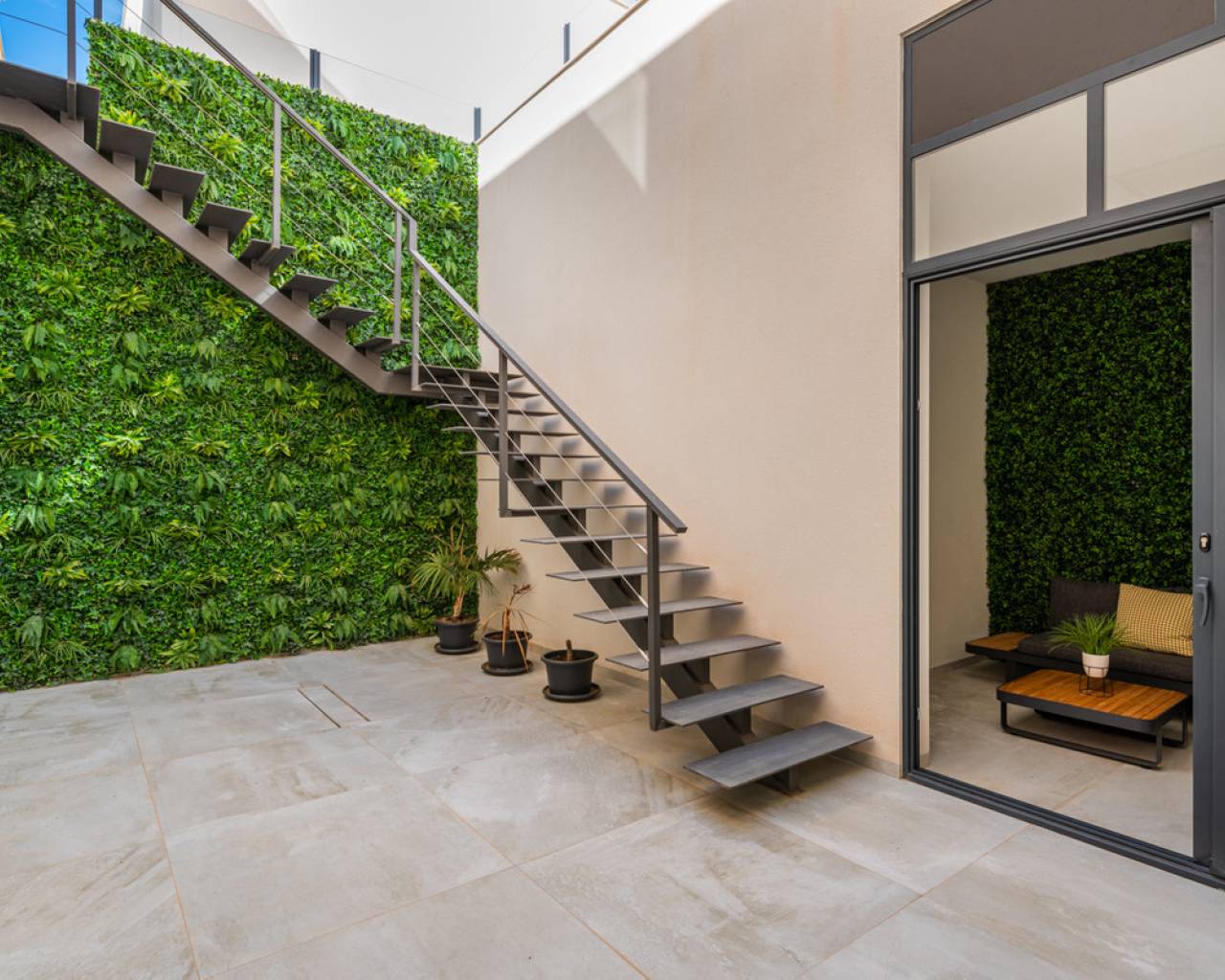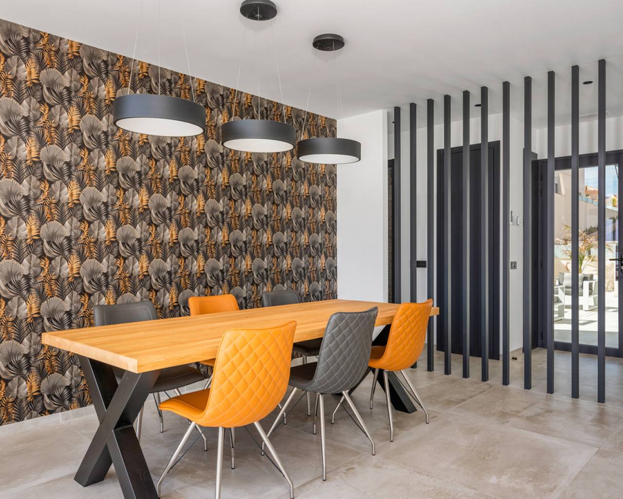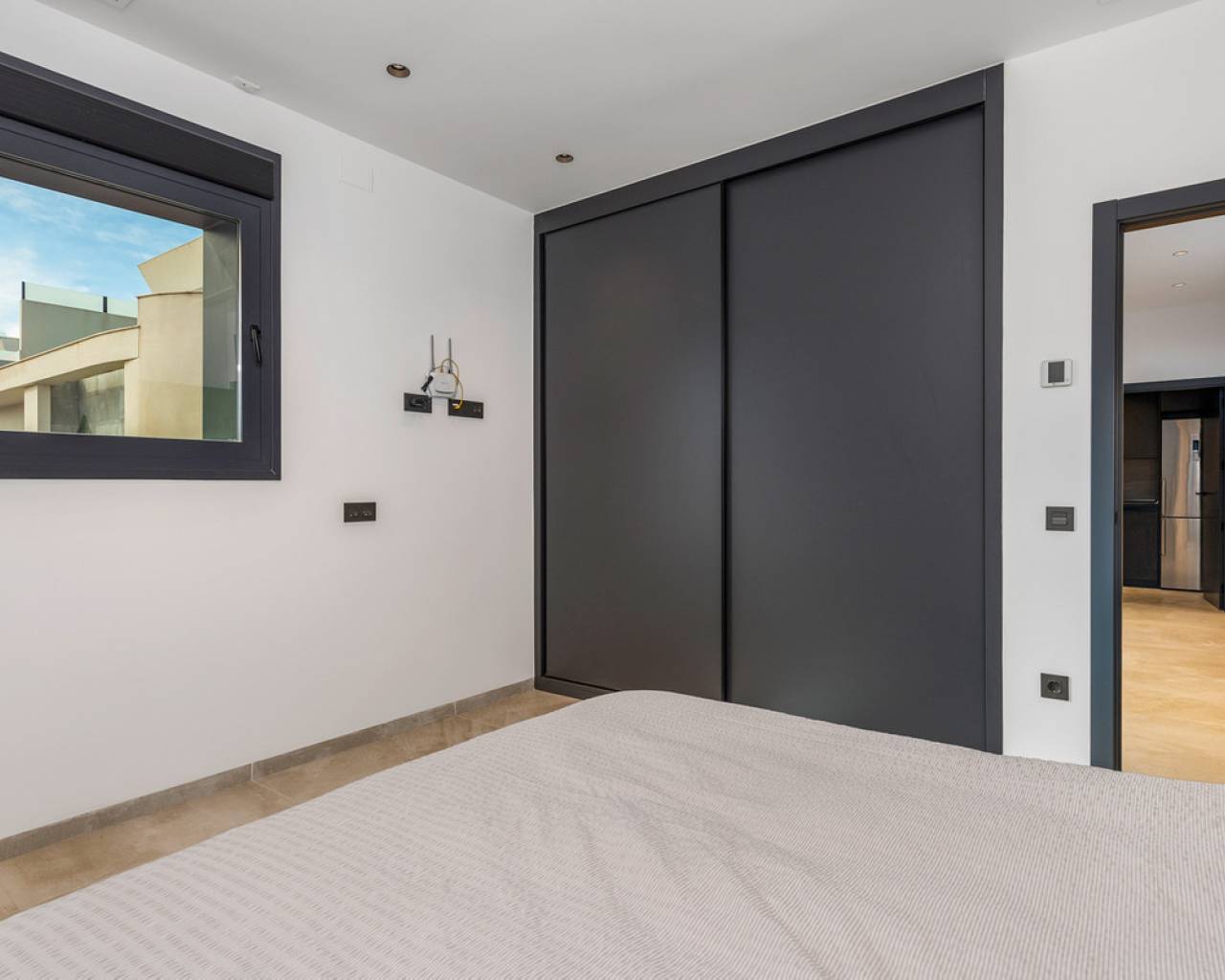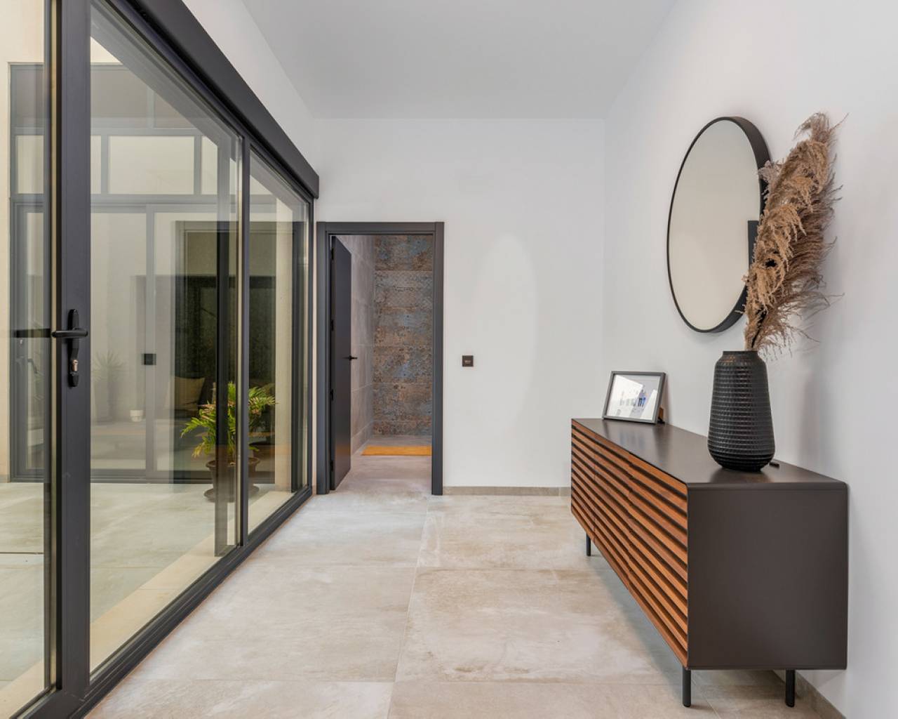 Luxury 5 bedroom / 6 bathroom villa with views in Ciudad Quesada. Beautiful luxury villa with a total living area of 333 m2 divided on two levels. It consists of a total of 5 double bedrooms, all of them with en-suite bathrooms, an additional bathroom and a guest toilet. The main floor consists of two bedrooms with en-suite bathrooms, a guest toilet, and a lovely open plan kitchen, living room and dining room. In the living area you have large sliding doors that opens up completely and gives a great indoor / outdoor living feature. The lower level consists of three bedrooms with en-suite bathrooms, a kitchen and utility room, a large living room, a bathroom, two storage rooms. The rooms in this level have access to a lovely patio. From the living room on this level you have direct access to the garage and techical room. The villa is equipped with central air condition (hot/cold), underfloor heating in the bathrooms, double glazes windows and security door. Outdoor areaThe villa is set on a lovely corner plot of 462 m2. The pool area is east facing, giving you amazing views over the surrounding area and to the sea. Around the pool you have a beautiful tiled area with space for several outdoor seating areas and sun beds. From the pool area you have external stairs leading you to the large roof terrace. Here you have one part that is tiled and the other part with artificial grass, both of them with a lot of space for outdoor entertainment and with amazing views. At the entrance to the house you have another lovely tiled garden area that faces west. This area is perfect to enjoy the afternoon / evening sun. At the lower level you can find a large tiled patio with an artificial vertical garden. This patio can be access from the garden through external stairs, and also from the living room and 2 of the bedrooms in the lower level.
