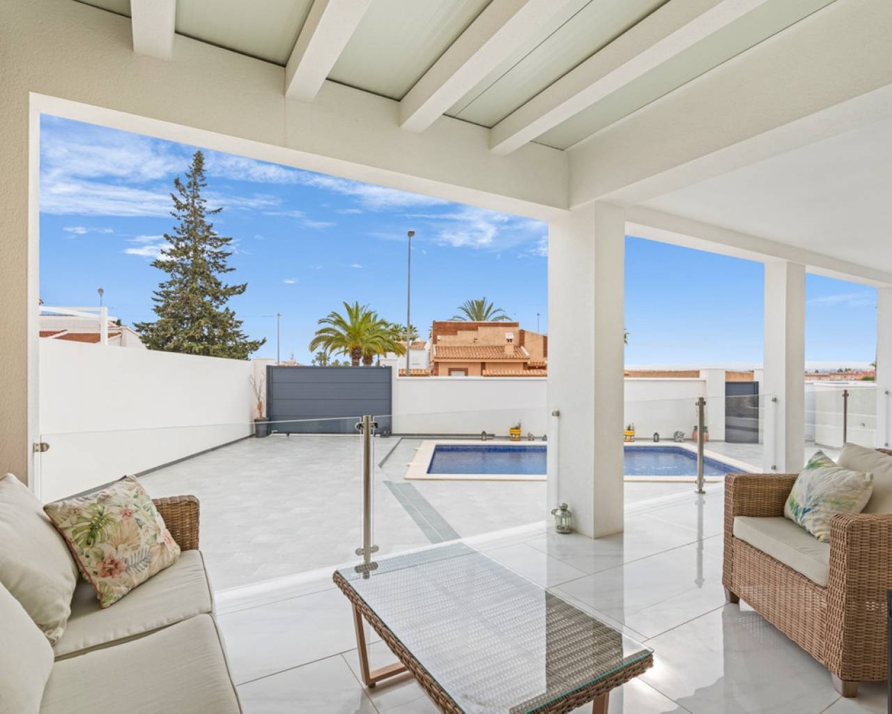 Located in one of the most exclusive and tranquil areas of Ciudad Quesada, this modern villa with contemporary design is the ideal home for those seeking luxury, comfort, and an excellent quality of life. With a total of 160 m² built on a 500 m² plot, this property offers the perfect combination of spacious areas, high-end finishes, and a privileged environment, all in a well-connected location with easy access to the region's main attractions. This stunning villa features 3 spacious and bright bedrooms on the upper floor, each with an en-suite bathroom and large windows that allow you to enjoy the beauty of the natural surroundings. Two of the bedrooms have direct access to a private terrace, offering privacy and comfort. Additionally, there is a guest toilet on the first floor for the convenience of residents and their visitors. The independent-style kitchen is equipped with high-end appliances and a central island. The open, fluid design integrates perfectly with the house, creating an ideal space to socialize and enjoy time with family or friends. From the living room, panoramic views unfold before you, providing a relaxing and light-filled atmosphere. The garden houses a private pool, where you can enjoy the warm Mediterranean climate in total privacy. The outdoor area is perfectly equipped with a terrace designed to help you relax and unwind in the chillout zone, or to dine al fresco, along with a landscaped area ideal for those looking to enjoy the outdoors without leaving home. The panoramic views from the property towards the coast and surrounding natural environment are simply breathtaking. The exterior storage room, discreetly located on one side of the property, is a standalone space that blends seamlessly with the design of the house, offering an excellent solution for additional storage. To ensure maximum comfort year-round, the villa is equipped with air conditioning in all rooms. Additionally, the property has private parking within the plot, where you can park your vehicles safely and conveniently. The property is south-facing, ensuring excellent natural light and a pleasant temperature throughout the day. This orientation also optimizes the views, providing an ideal setting to enjoy sunny afternoons and mild Mediterranean evenings. The villa is just a 15-minute drive from the best beaches in Guardamar. Only 5 minutes from the property, you'll find a wide variety of shops, supermarkets, and restaurants, ensuring you have everything you need for your day-to-day life without having to travel far. Additionally, golf lovers will be pleased to know that the nearest golf courses are only a 10-minute drive away, making this villa the perfect place to enjoy the sport. This property has been designed to offer you a comfortable, relaxed, and exclusive lifestyle, combining luxury, functionality, and an enviable location. Whether as a permanent residence or a second home, this villa provides everything you need to make the most of the Mediterranean climate and the life on the Costa Blanca. Don't miss the opportunity to visit it. Contact us today for more information or to schedule a viewing and discover your new home on the Costa Blanca!