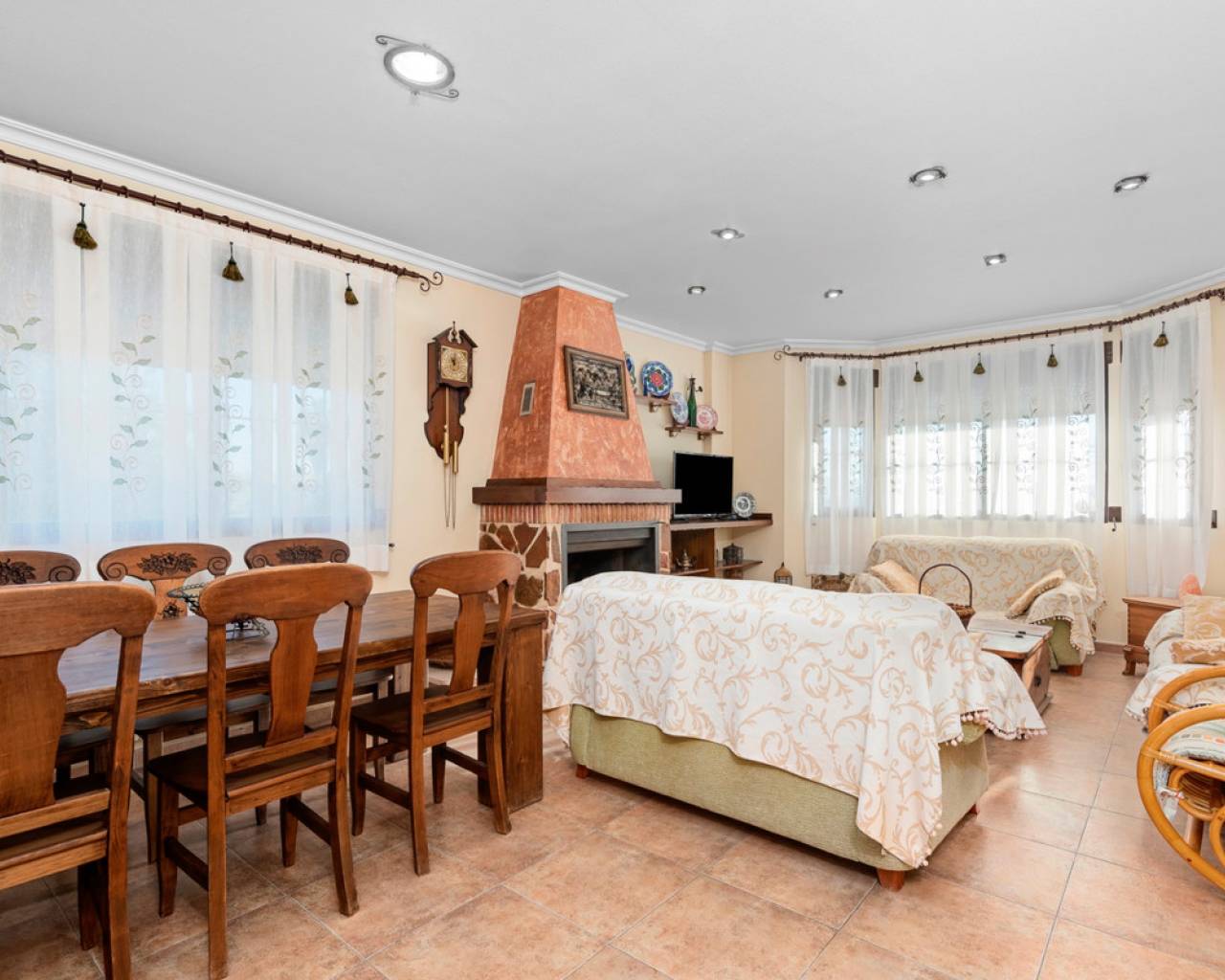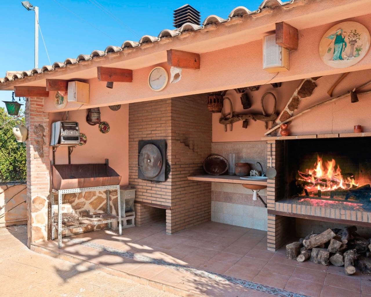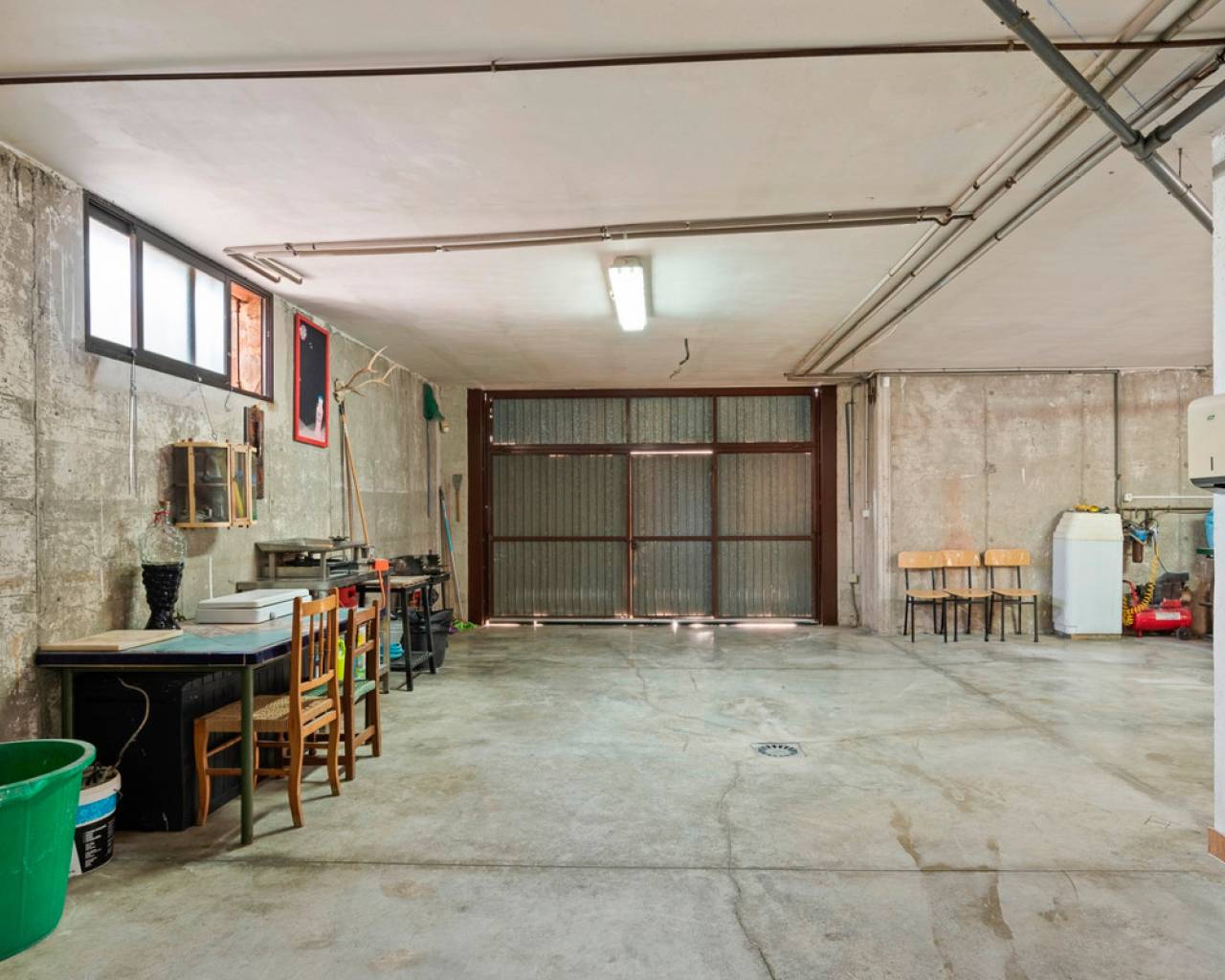 Spacious country house with 300m2 built are on a 1717m2 plot. The property features 3 bedrooms, 3 bathrooms, an office space and a ample lower level with parking and a big recreation room. The main floor, beginning with a welcoming foyer that opens into the living room, features a bright and inviting atmosphere. The open-concept design flows into the living/dining area, equipped with a fireplace, and a well-equipped kitchen, which also provides access to a covered terrace—ideal for outdoor relaxation. The primary bedroom offers a private retreat with an en-suite bathroom and a walk-in closet. Two additional bedrooms share a conveniently located bathroom in the hallway. A dedicated office space provides a quiet area for work or study. Completing this level is a laundry room for added functionality. The bottom floor features a spacious garage with ample room for multiple vehicles and additional storage. Adjacent to the garage, a hallway leads to a large recreation room, perfect for entertainment or leisure activities. A separate storage area provides extra space for organization. This floor also includes a bathroom, adding convenience for guests or recreational use. The property features ducted air condition, built-in-wardrobes, indoor and on plot parking, a BBQ area and frutal trees on the plot.