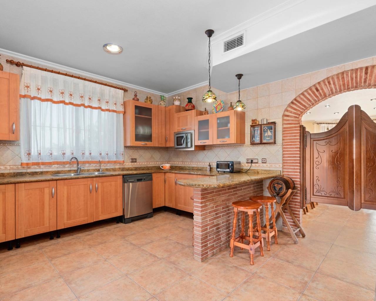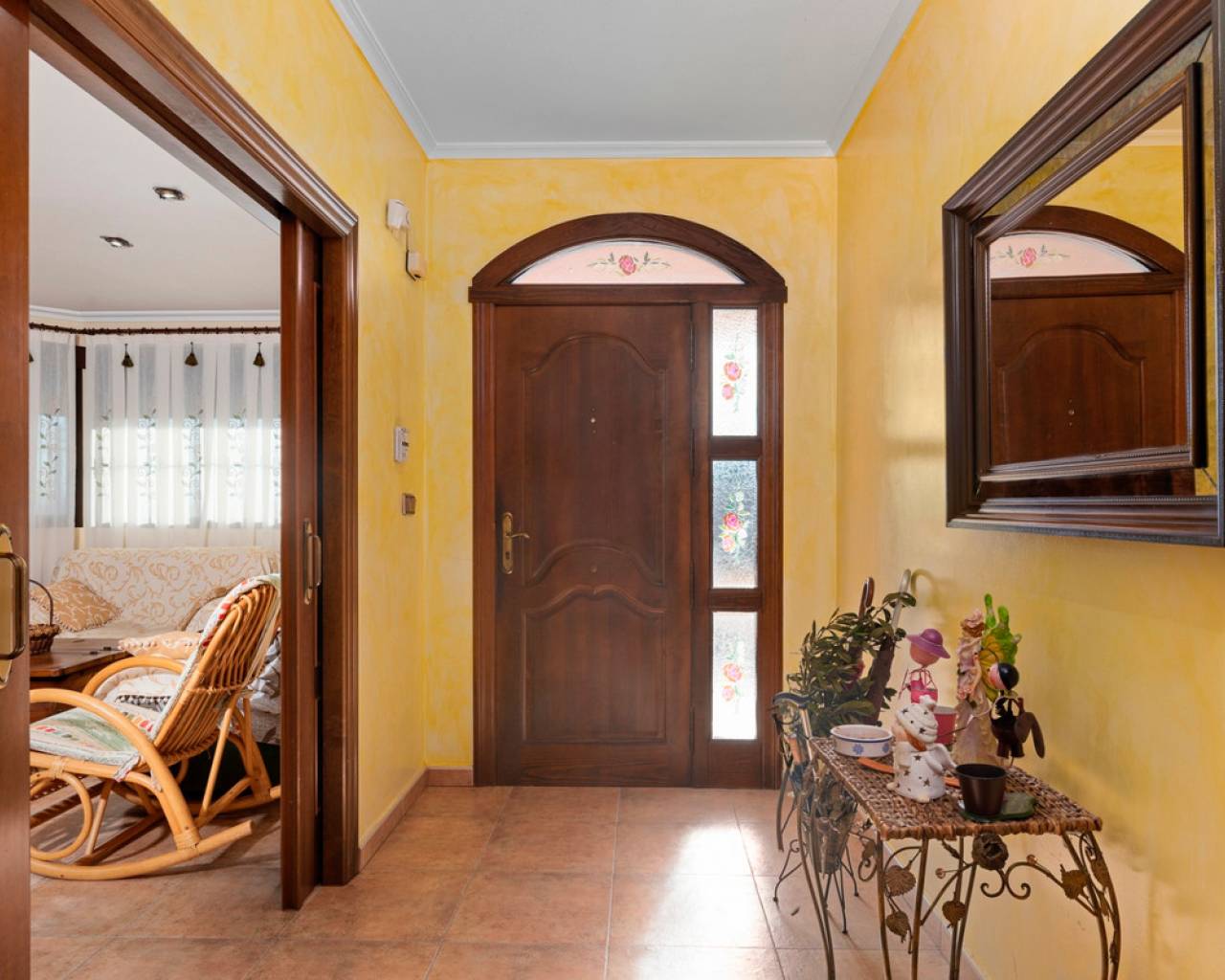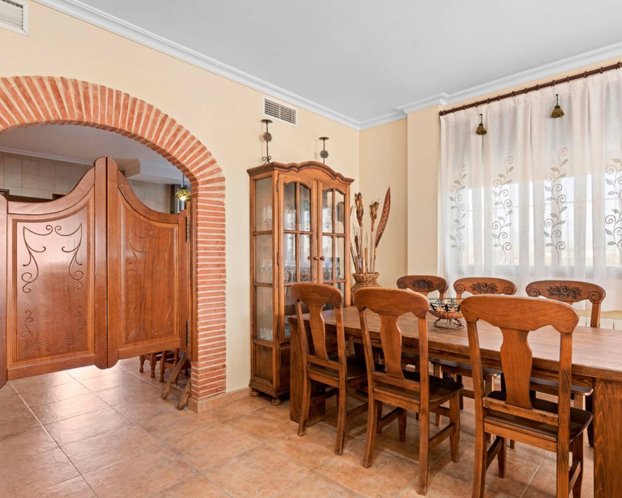 Spacious country house with 300m2 built are on a 1717m2 plot. The property features 3 bedrooms, 3 bathrooms, an office space and a ample lower level with parking and a big recreation room. The main floor, beginning with a welcoming foyer that opens into the living room, features a bright and inviting atmosphere. The open-concept design flows into the living/dining area, equipped with a fireplace, and a well-equipped kitchen, which also provides access to a covered terrace—ideal for outdoor relaxation. The primary bedroom offers a private retreat with an en-suite bathroom and a walk-in closet. Two additional bedrooms share a conveniently located bathroom in the hallway. A dedicated office space provides a quiet area for work or study. Completing this level is a laundry room for added functionality. The bottom floor features a spacious garage with ample room for multiple vehicles and additional storage. Adjacent to the garage, a hallway leads to a large recreation room, perfect for entertainment or leisure activities. A separate storage area provides extra space for organization. This floor also includes a bathroom, adding convenience for guests or recreational use. The property features ducted air condition, built-in-wardrobes, indoor and on plot parking, a BBQ area and frutal trees on the plot.