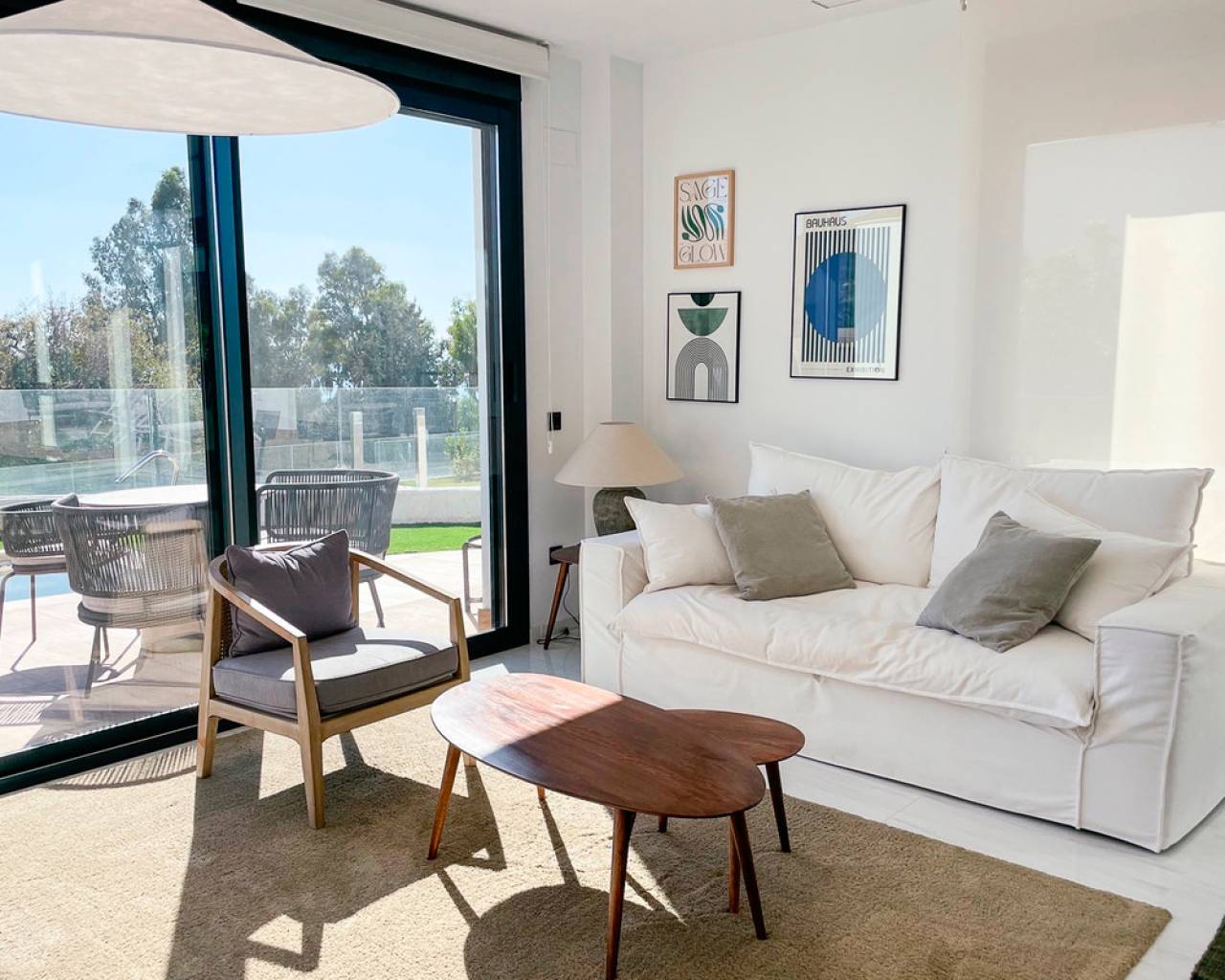This 124m² apartment, built in 2022, is located in a gated community on the beachfront, offering a peaceful and comfortable lifestyle on the Costa Blanca. The property features 3 spacious bedrooms and 3 full bathrooms, designed with high-quality materials and a modern finish. A 48m² terrace provides spectacular sea views and overlooks the lush green areas of the complex, creating an ideal space for relaxation or outdoor dining. The apartment is fully furnished and equipped for comfort, including air conditioning, ceiling fans, and built-in wardrobes. The layout is functional, ensuring plenty of natural light and efficient use of space. The community offers excellent facilities such as a designer communal pool, tropical gardens, and green spaces. Additionally, the property includes a private pool and a private garden for added exclusivity. For convenience, the apartment comes with a private double garage and a storage room. Security is ensured with an alarm system and controlled access to the community. With an east-facing orientation, this home provides breathtaking sunrise views over the sea and a serene environment to enjoy coastal living. Located in Villajoyosa, a growing destination on the Costa Blanca, this apartment is an excellent choice for those looking for a stylish and private home by the sea.