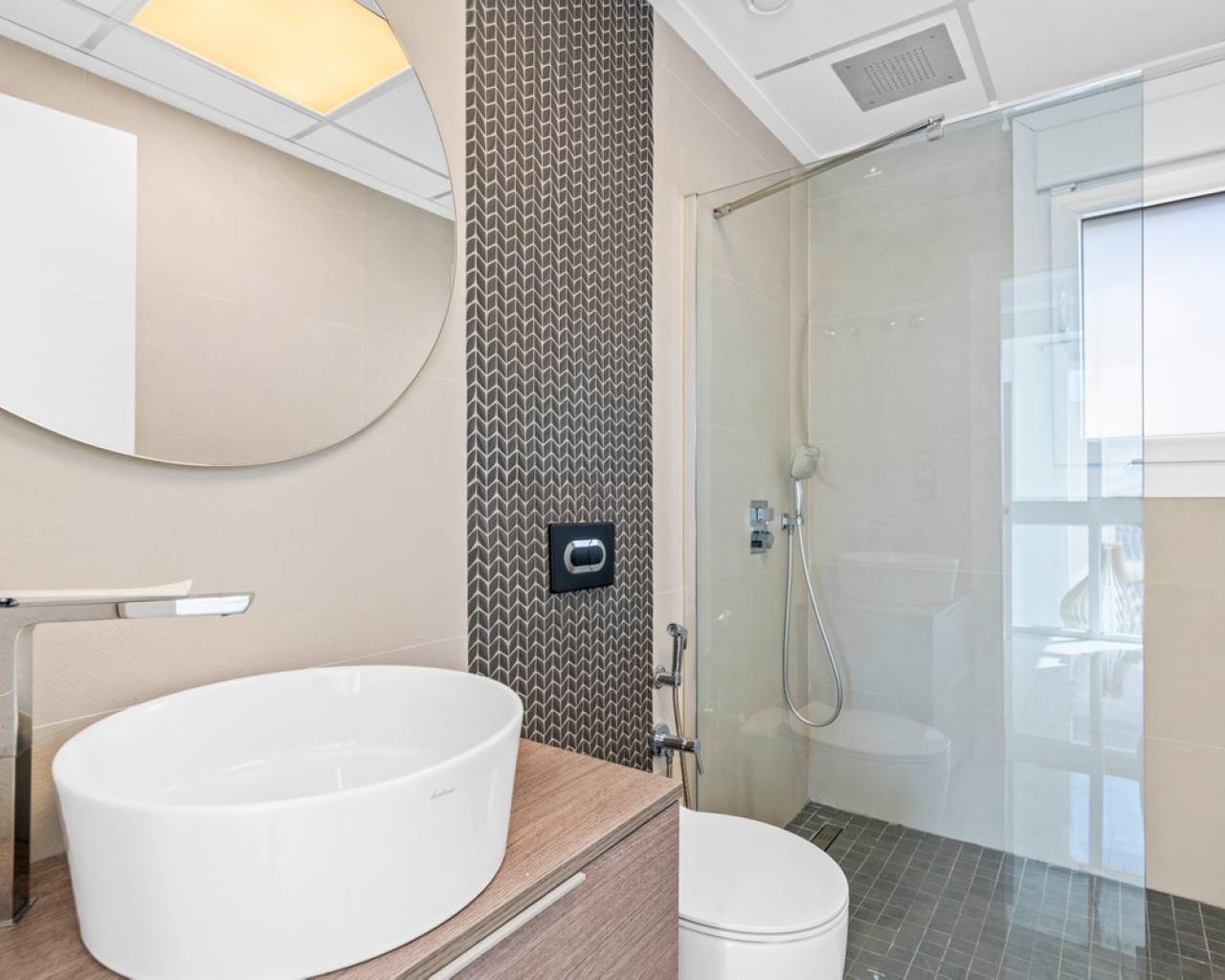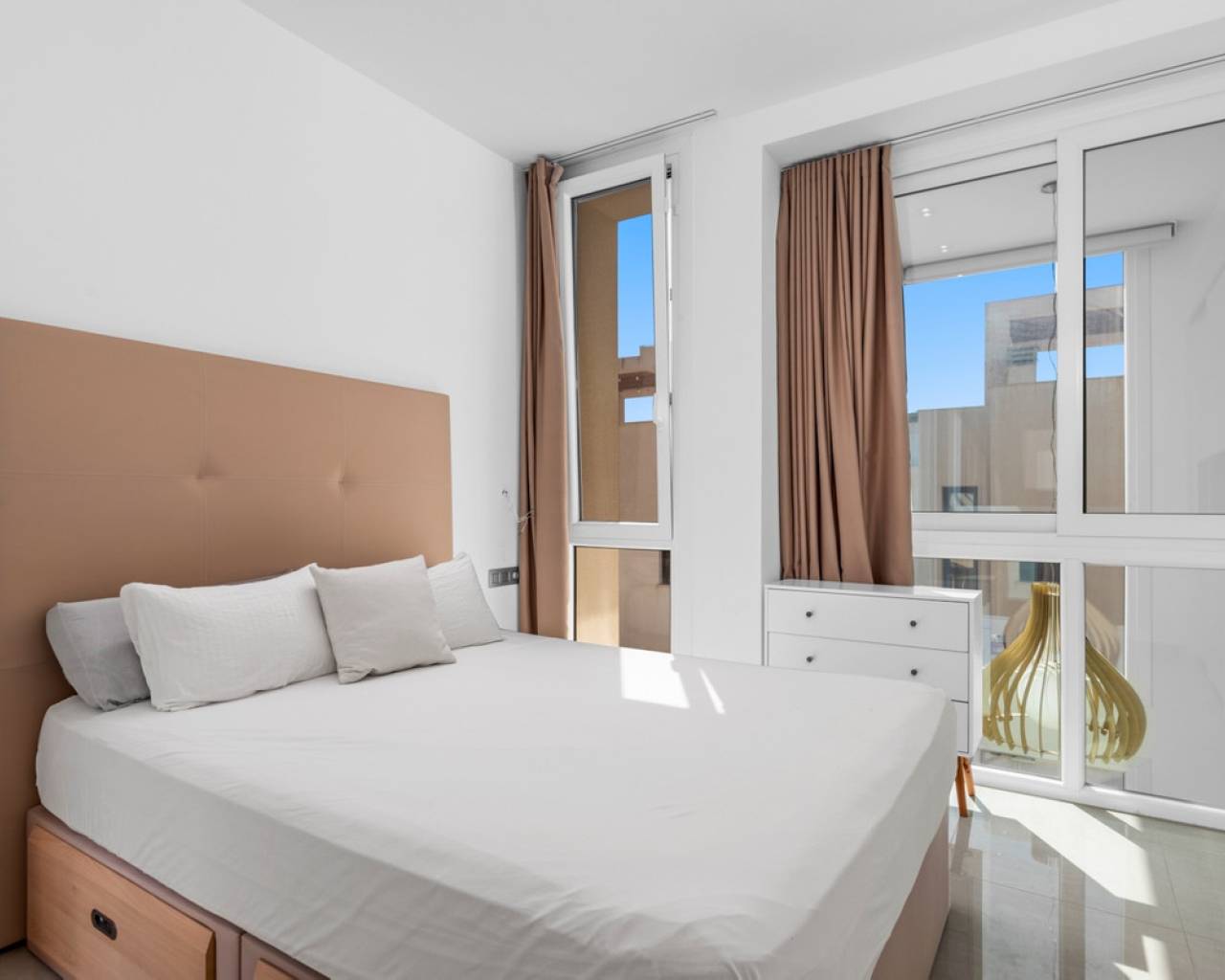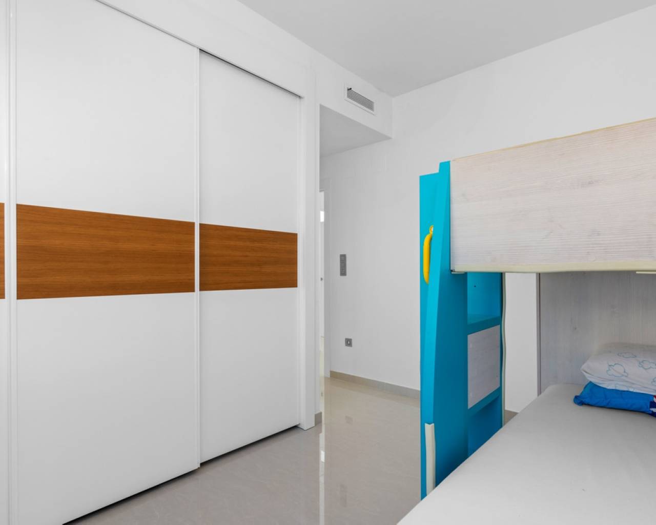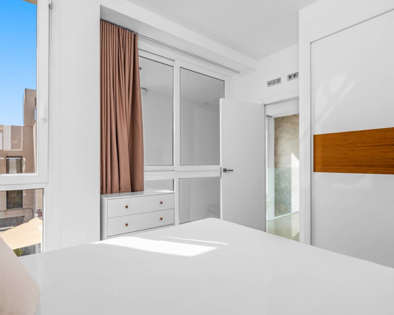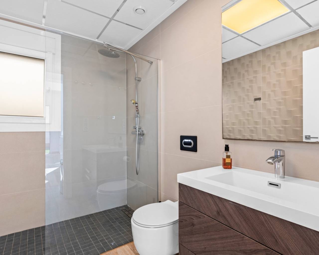 Located in a residential complex of 50 independent homes, this property offers a functional layout and comfortable living spaces. Built in 2018, it has a total area of 101 m² on a 182 m² plot, with three bedrooms and three bathrooms. The ground floor includes a living room with an integrated kitchen, a full bathroom, a bedroom, and a laundry area equipped with an 8 kg washer and dryer. The first floor features two additional bedrooms, one with an en-suite bathroom and access to a private terrace. The upper floor has a solarium with space for an outdoor kitchen and a jacuzzi installation. The outdoor area includes a private saltwater pool with an automatic cover, an artificial grass garden, and a designated parking space within the plot. The home is equipped with an aerothermal heating and cooling system, two automatic awnings, and a solar sail for shade. Additional features include built-in kitchen appliances, a Bosch Wi-Fi super-automatic coffee machine, automatic blinds, mosquito screens on windows and doors, glass shower enclosures, an interior and exterior security system, and a safe. The property is located in a quiet area with good access to nearby urban centers. For more information or to schedule a visit, please contact us.