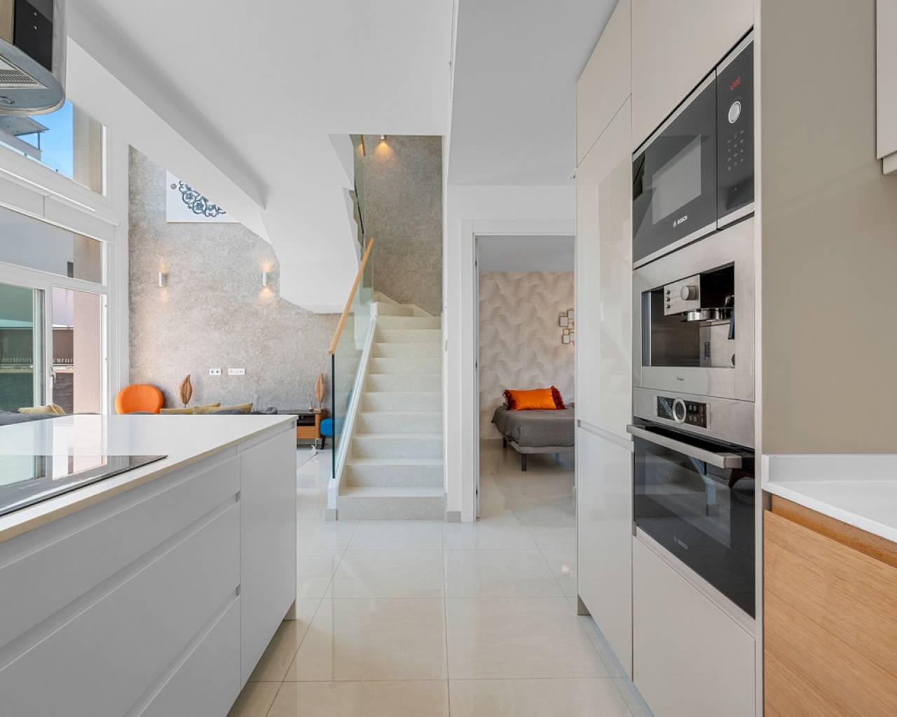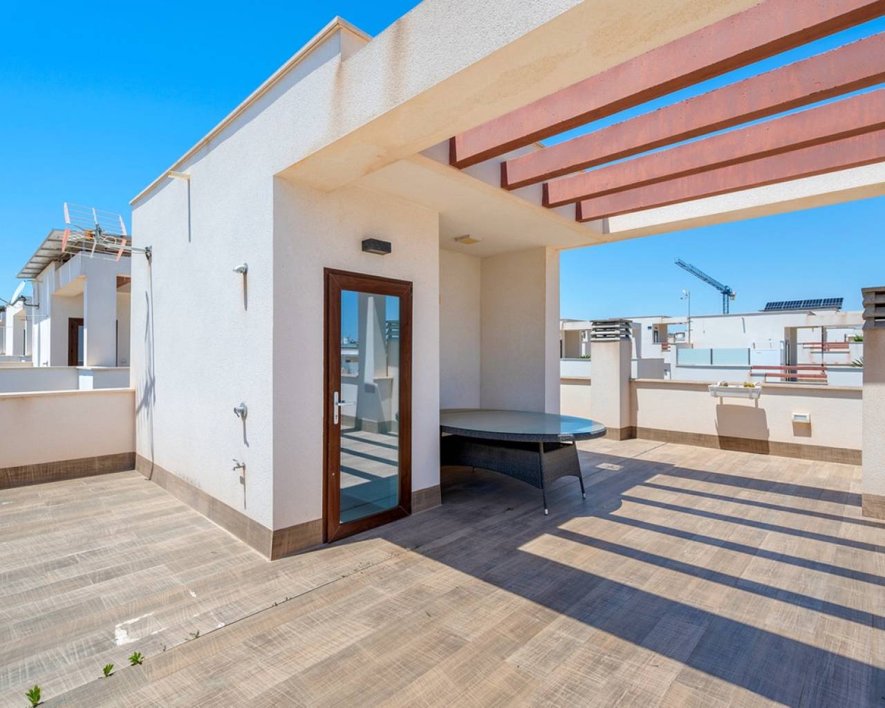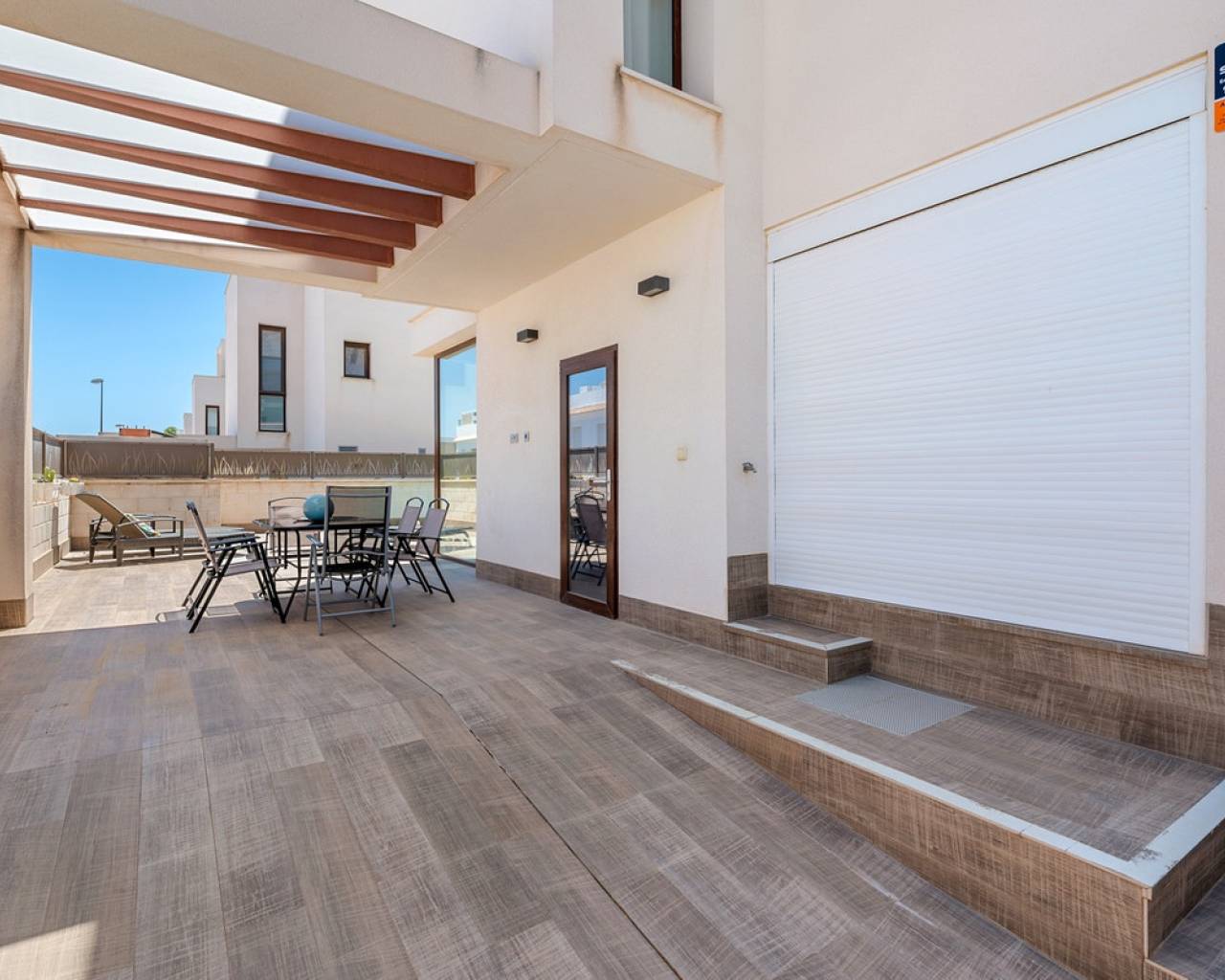 Located in a quiet residential area of Ciudad Quesada, this property, built in 2018, offers a functional layout and well-utilized indoor and outdoor spaces. It has a built area of 101 m² on a 184 m² plot, with three bedrooms, three bathrooms, a basement and a rooftop terrace. The main floor features a living room, dining area, and an open-plan kitchen with a central island. This level also includes one bedroom with a built-in wardrobe, a full bathroom, laundry area, and direct access to the garden and private pool. Upstairs, there are two additional bedrooms. The main bedroom has an en-suite bathroom and access to a private terrace. The second bedroom is next to another full bathroom. A hall connects both rooms. The basement is currently used as a recreational space with a billiard area and provides additional room for various uses. The private rooftop terrace includes a fully installed and functional outdoor kitchen with direct access from inside the house, making it a comfortable area for year-round use. Outside, the property features a 3.30 x 6.50 meter private pool, artificial grass garden, and private on-plot parking. Being a corner unit, the house enjoys more natural light and greater independence from neighboring homes. The property is sold fully furnished, with air conditioning, built-in wardrobes, automatic blinds, mosquito screens, a security system, and a fully equipped kitchen. It is suitable for both permanent residence and holiday use, and is close to services and main access routes.