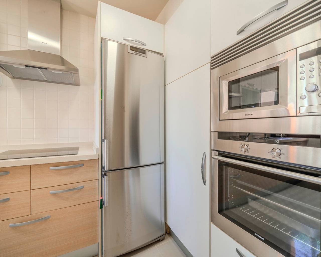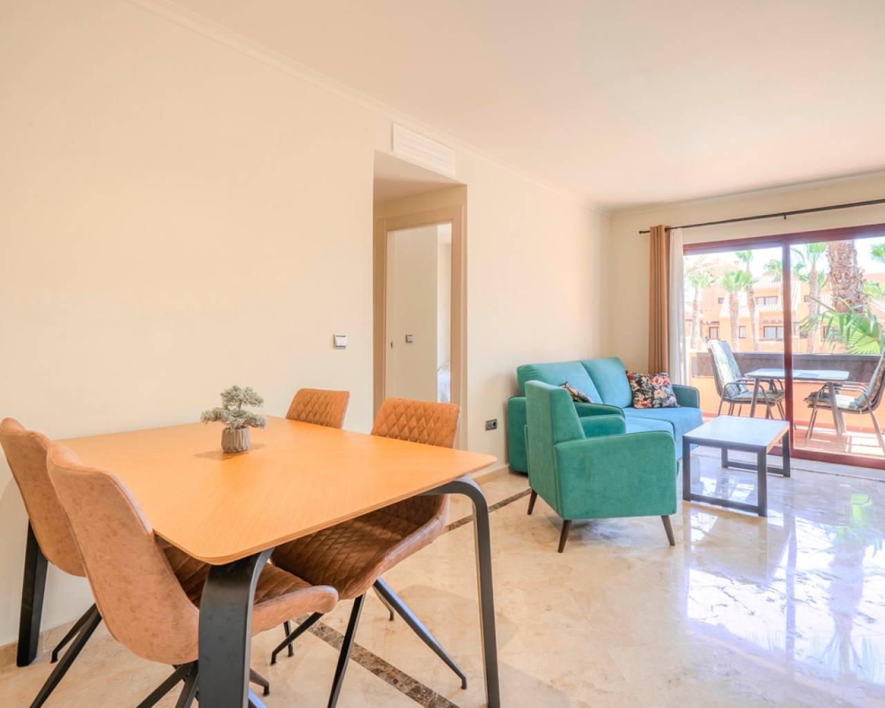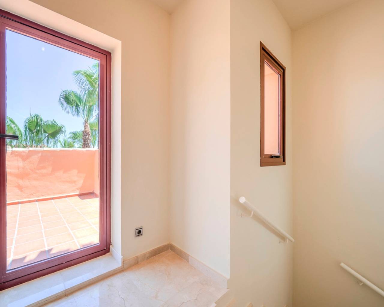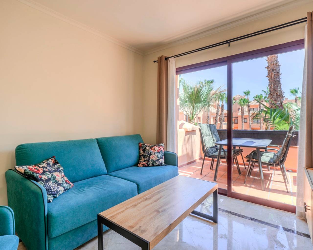 This exclusive 3-bedroom penthouse duplex is located in the prestigious Nueva Ribera Beach Club urbanization, right on the front line of the best beach in Mar Menor. With a built area of 97.78 m² spread over two floors, this property offers the perfect combination of comfort, style, and a privileged location. On the main floor, there is a bright and spacious living-dining room with access to a balcony overlooking the communal pool, a fully equipped independent kitchen, a full bathroom, a secondary bedroom, and a master bedroom with access to another balcony facing the landscaped communal pool area. The upper floor features an additional bedroom, a full bathroom, a convenient storage room, and a large private solarium terrace, ideal for relaxing outdoors and enjoying the Mediterranean climate year-round. The property includes a garage space and storage room in the price. It stands out for its excellent quality finishes: armored front door, white lacquered interior doors, and high-quality built-in wardrobes. The gated urbanization offers extensive green areas, a communal swimming pool, and 24-hour security surveillance, all within a peaceful and secure environment just steps from the sea, allowing you to enjoy sun, beach, and a unique lifestyle on the Mar Menor.