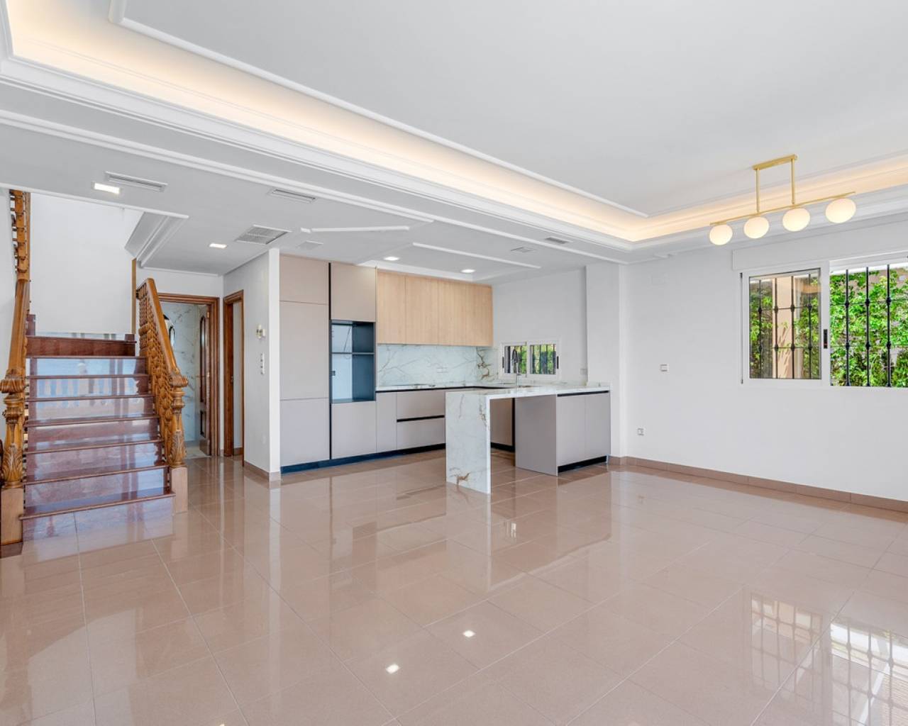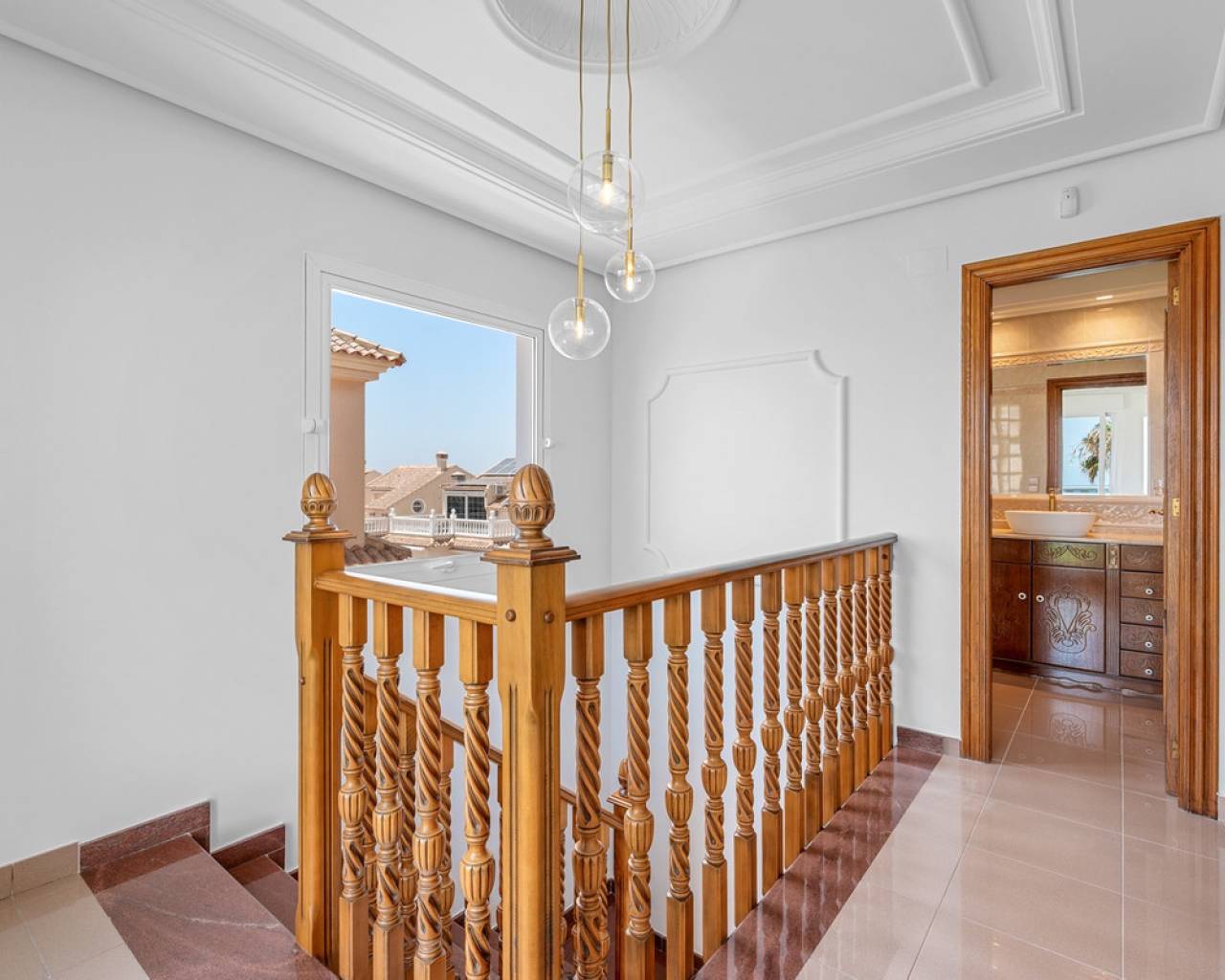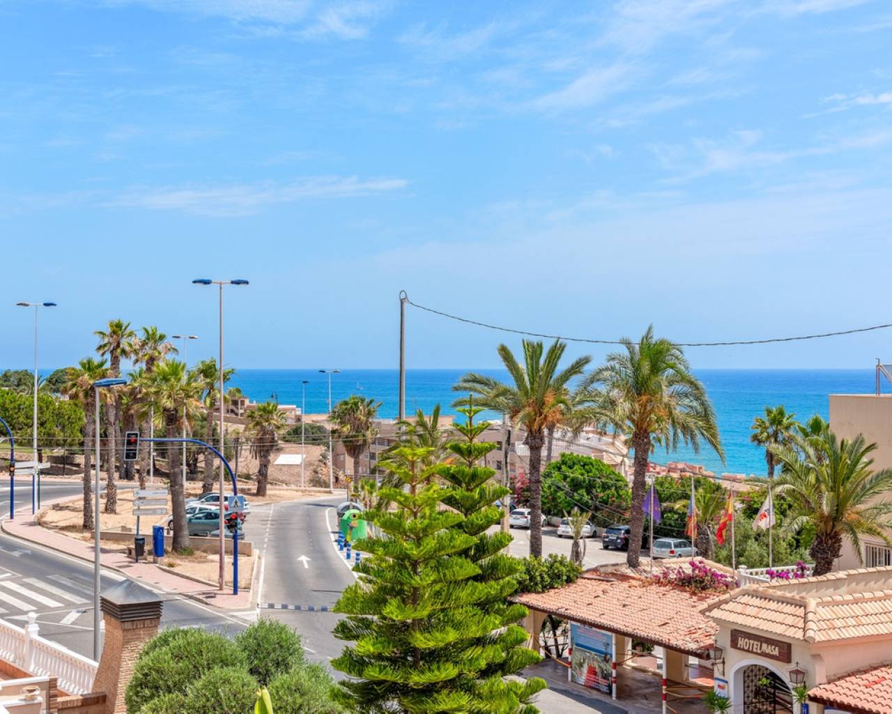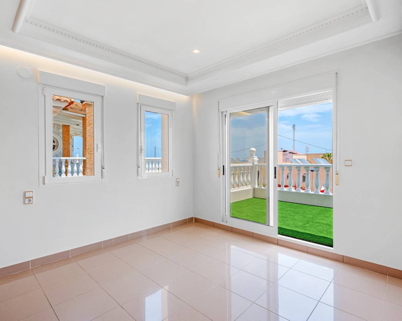 This elegant detached villa of 290 m², located in the prestigious Residencial El Faro in Torrevieja, has been recently renovated and combines modern design, functionality, and a privileged location with open sea views. The house is spread over three floors. The lower level includes a double private garage with direct access to the home, a spacious recreation room ideal for a home cinema or games area, a wine cellar, an additional bedroom, a full bathroom, a technical room with a diesel tank, and various storage areas. This floor provides direct access to the outdoor space featuring a private pool, artificial grass, and a large patio – perfect for enjoying the Mediterranean climate. The main floor features a fully equipped independent kitchen, a bright living-dining room with a fireplace, a bedroom with a built-in wardrobe, and a full bathroom. The living room opens to a spacious terrace with sea views and several outdoor patio areas ideal for relaxing or entertaining. The upper floor has two additional bedrooms, both with access to a large balcony overlooking the sea, and a full bathroom. All rooms are spacious and bright with built-in wardrobes. Additional features include air conditioning, fireplace, laundry room, covered terrace, diesel heating system, storage room, and extra parking on the plot. The property is located in a gated community offering privacy and security. A unique opportunity for those seeking a move-in-ready home with sea views in one of the most desirable residential areas of Torrevieja.