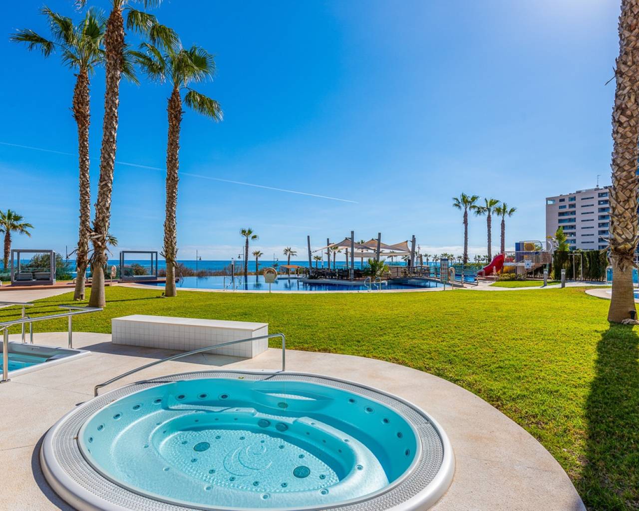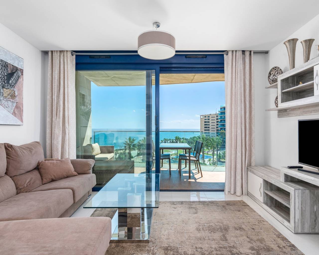 Welcome to this exclusive two-bedroom, two-bathroom apartment in the prestigious Sea Senses residential complex, located on the very first line of the coast with unmatched views of the Costa Blanca. Built with modern design and exceptional quality, this home combines luxury, comfort, and a unique seaside lifestyle. As you enter, you are greeted by a bright and spacious open-plan living and dining area, where floor-to-ceiling sliding doors open to a large terrace with panoramic sea views — the perfect spot to enjoy morning coffee, alfresco dining, or unforgettable Mediterranean sunsets. The kitchen is fully equipped with modern appliances and connects seamlessly to the living space, ensuring convenience for both daily living and entertaining. Two generously sized bedrooms, including a master suite with its own bathroom and direct access to the terrace, provide comfort and privacy for family or guests. Living in Sea Senses means enjoying a truly resort-style experience every day. Residents have access to multiple swimming pools — including infinity pools overlooking the sea — as well as Jacuzzis, saunas, gym, and private relaxation areas. For families, there are safe play zones designed for children. Secure underground parking and a private storage room add to the practicality and value of this exceptional property. With its unbeatable frontline beach location, breathtaking sea views, and world-class amenities, this apartment offers a rare opportunity to own a piece of paradise on the Costa Blanca.
