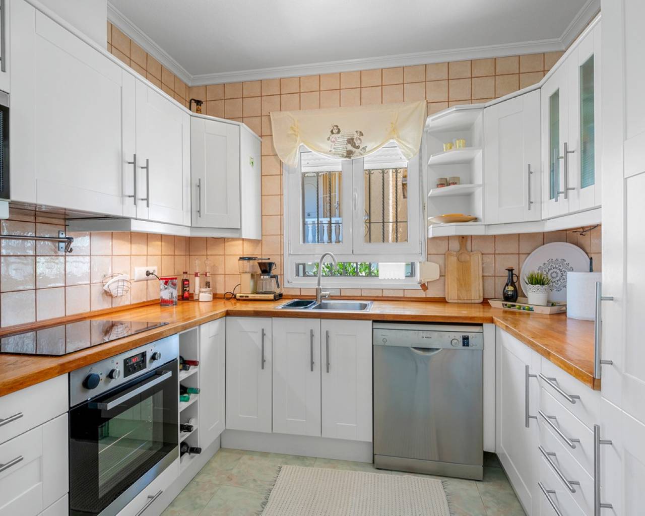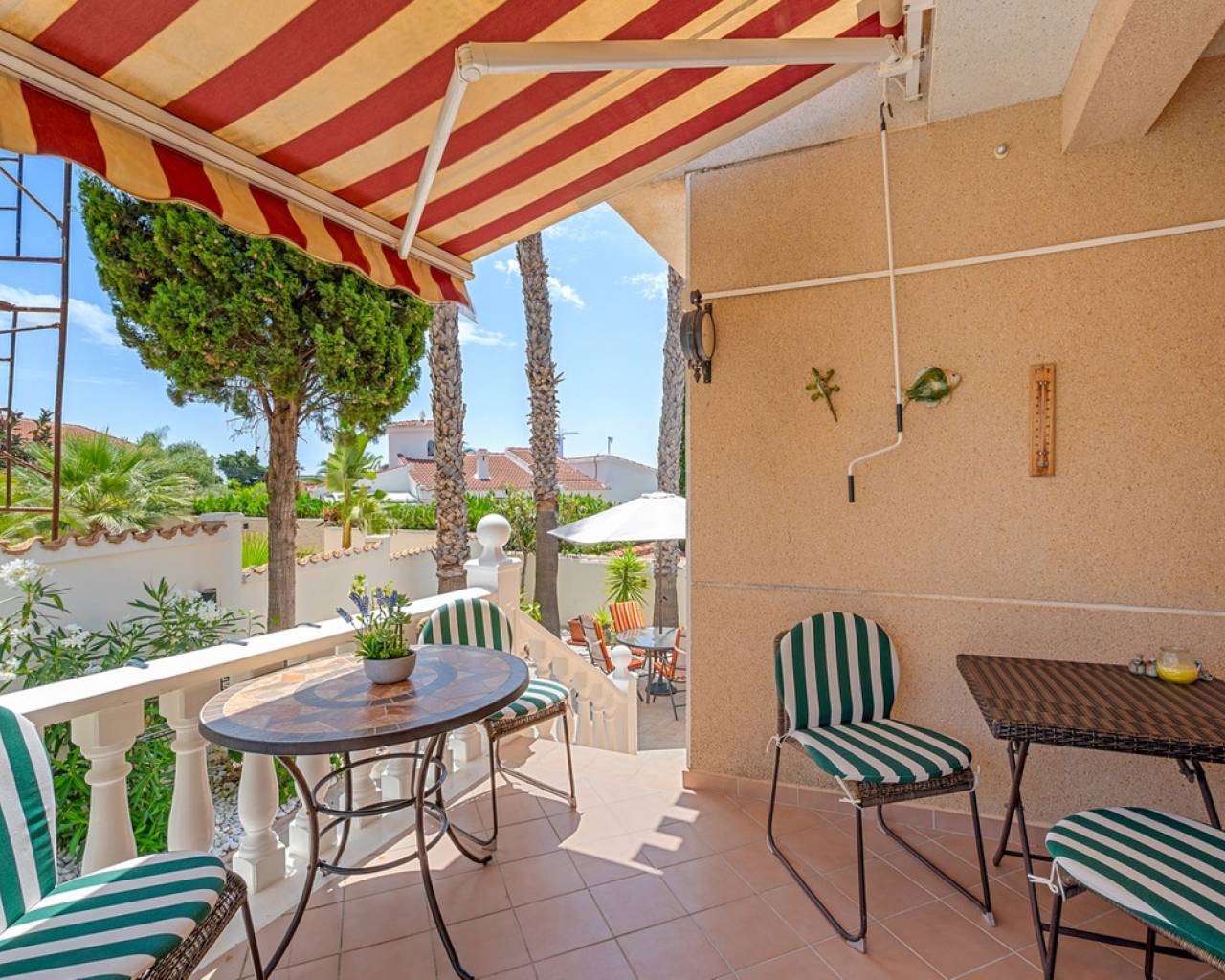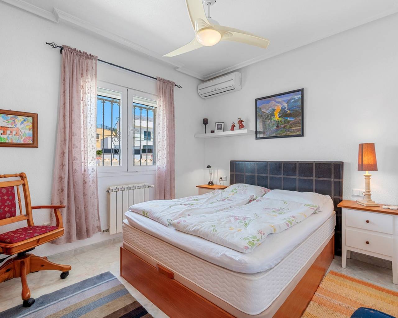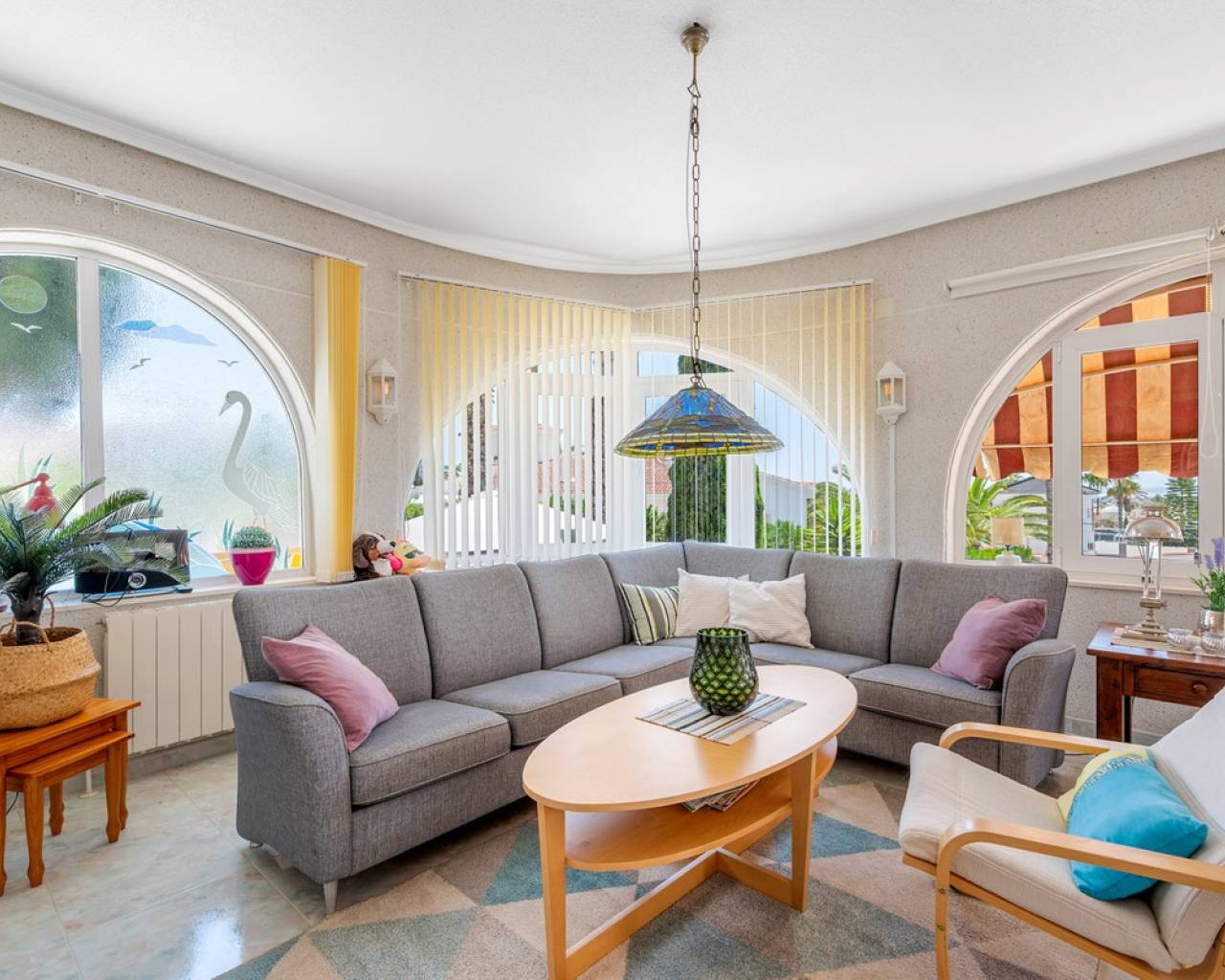 Charming Mediterranean style villa with 3 bedrooms located close to the center of Ciudad Quesada. The villa has a total living area of 238 m2 divided on two levels; the main floor and a guest apartment in the lower floor. The main floor consists of two double bedrooms and two bathrooms, where one of them is en-suite to the master bedroom. Furthermore this floor consists of an entrance area, an open-plan kitchen, a dining and living area with fireplace, and a glazed terrace with an additional dining and living room. By the entrance to the villa there is a covered terrace and from the glazed terrace you have direct access to the pool area. On the lower level you can find a separate guest apartment that consists of a living room, a kitchen, a large bedroom and a bathroom. The villa is equipped with central heating (on gas), air condition, fireplace in the living room, alarm system and osmosis filter. Outdoor areaThe villa is set on a south facing plot of 500 m2. The garden is well maintained with tiles and plants. You can find a swimming pool (salt water), an outdoor shower, a carport, a BBQ area, a storage room and several outdoor seating areas. The garden has automatic irrigation system. The villa is located just a short walk from the Main Street in Ciudad Quesada where you can find a wide selection of amenities.