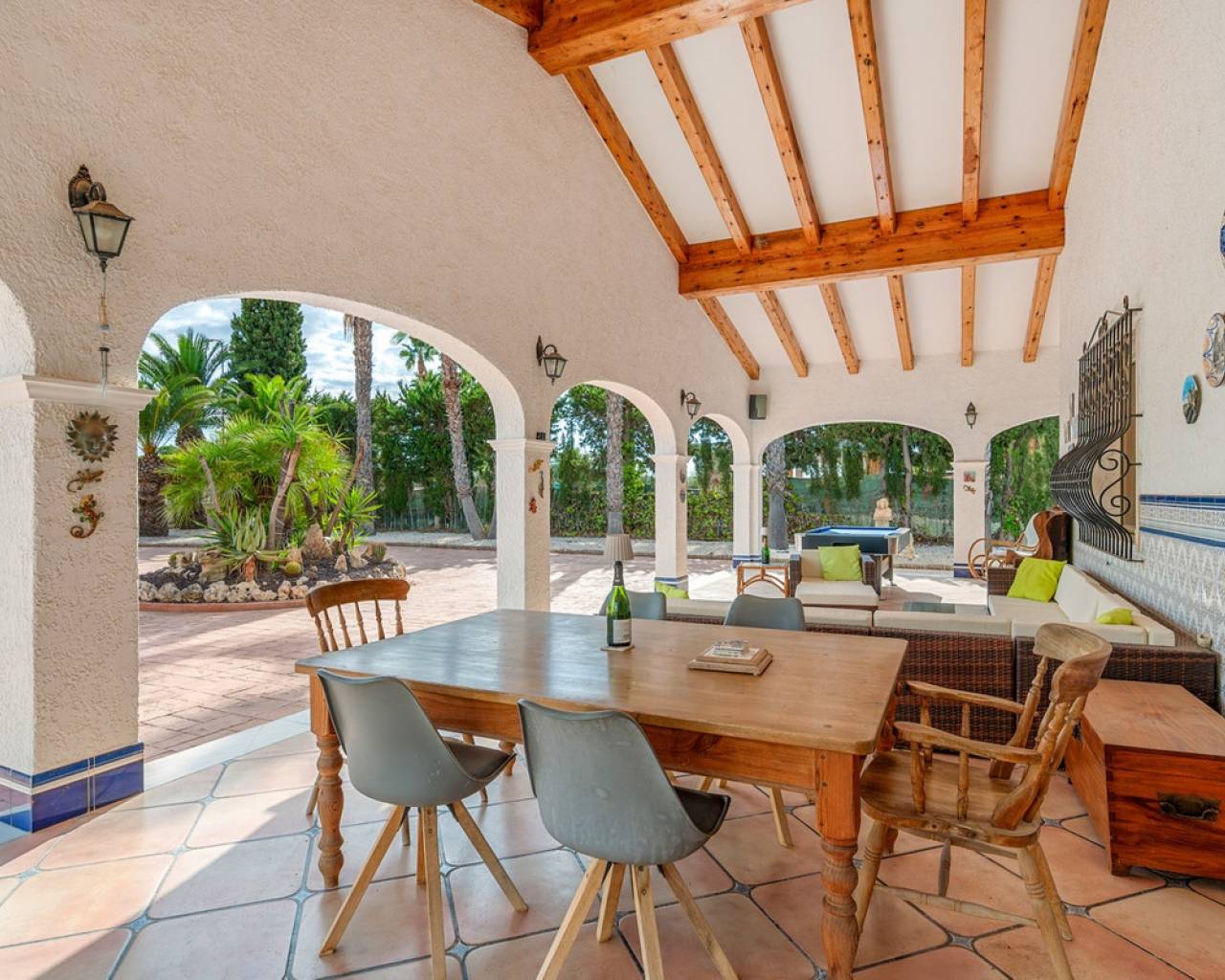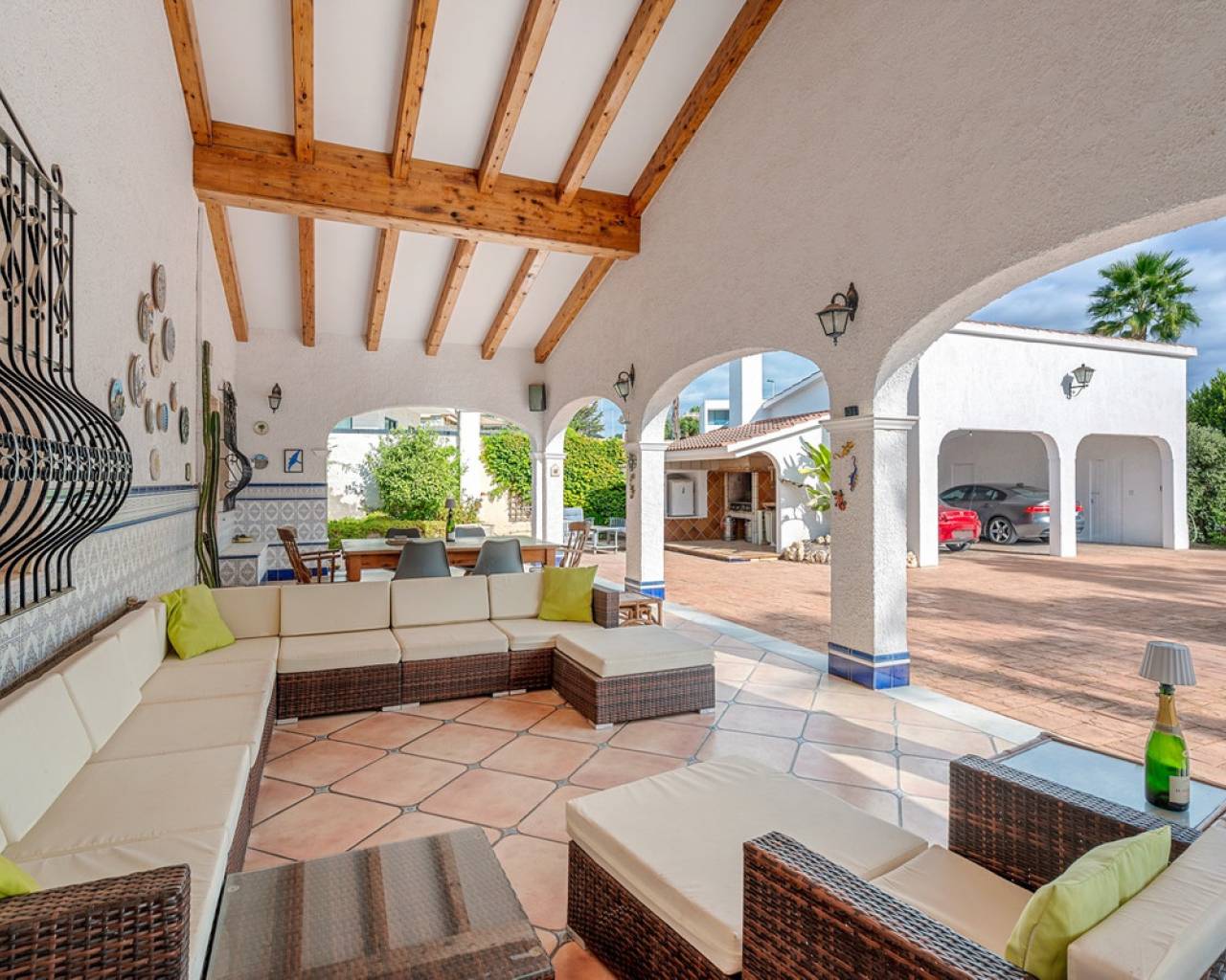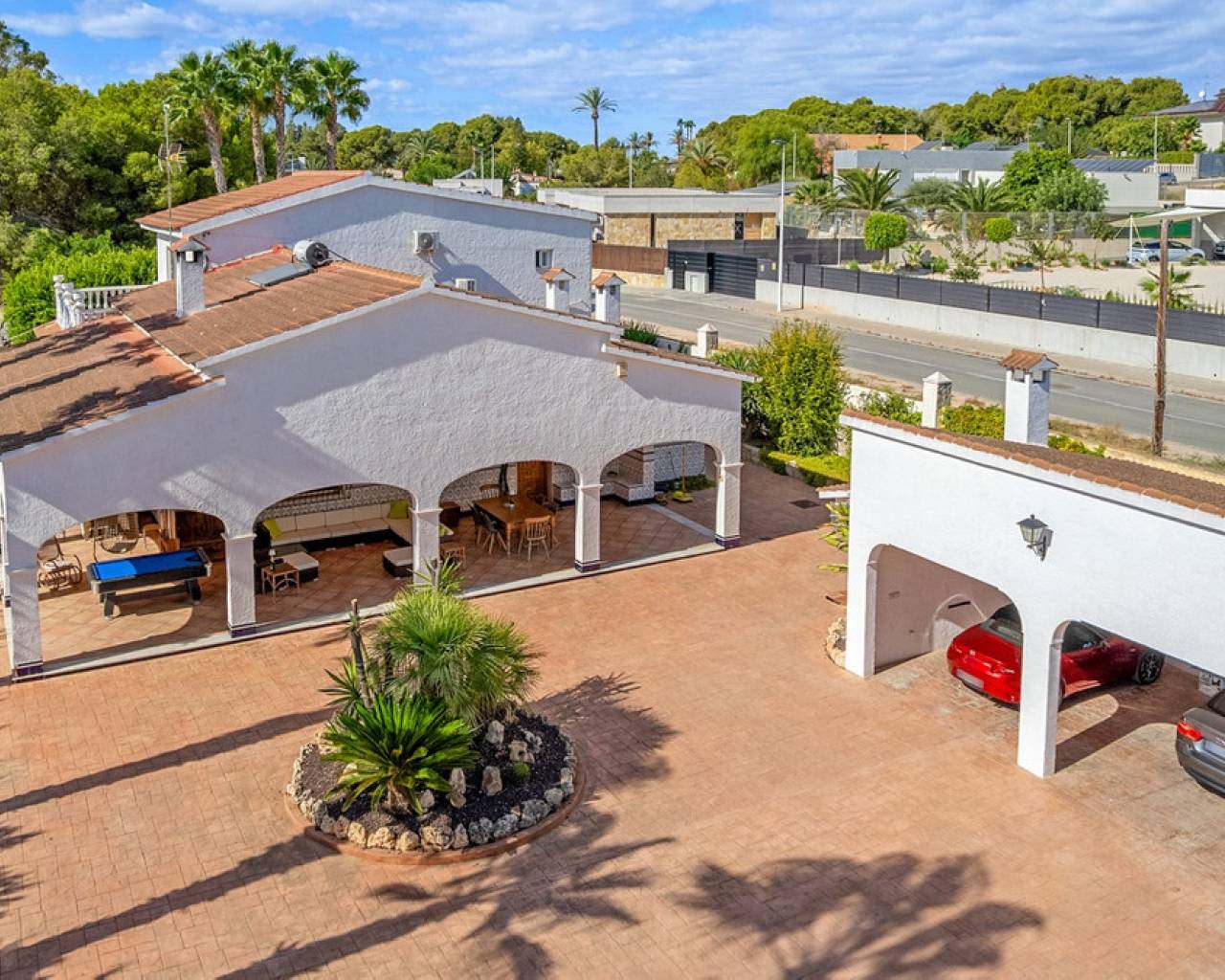 Between the sea and the city of Elche stands this spectacular Mediterranean-style villa, where every detail has been designed to enjoy a sunny, peaceful, yet vibrant lifestyle.On a 2,220 m² plot, the property offers the perfect balance of privacy, freedom, and relaxation. It features private parking for two cars, plus additional space for motorbikes or smaller vehicles, and large open areas where the little ones can run and play safely. Its spacious double-oriented porch invites you to relax at any time of the day — or become the favourite gathering spot for friends and family to enjoy a barbecue or paella by the outdoor kitchen.On the side, there is a guest house with a fully equipped bedroom and bathroom — perfect for visitors. Behind the main house, the private pool and its wide terrace become the heart of the home during the sunniest days. Inside, this home keeps its warm and welcoming soul. The fully equipped kitchen includes an underground wine cellar — ideal for wine lovers. The British-style living-dining room combines charm and comfort. On the same main floor, there are three spacious bedrooms and two full bathrooms (one of them en suite with direct access to the pool), while the office space offers the possibility to work from home or even convert it into an extra bedroom. Upstairs, calm takes the spotlight: imagine reading your favourite book in the reading lounge while listening to the crackle of the fireplace, or enjoying a game night in the living area next to the private terrace. On this same floor, you'll find the master bedroom, complete with a large dressing room and private bathroom. Located in a quiet yet well-connected area, this villa combines the best of every world: the salty air of the beach, the charm of a historic city like Elche, and the convenience of being just minutes from Alicante International Airport. A home with a true Mediterranean soul, no matter how you look at it.
