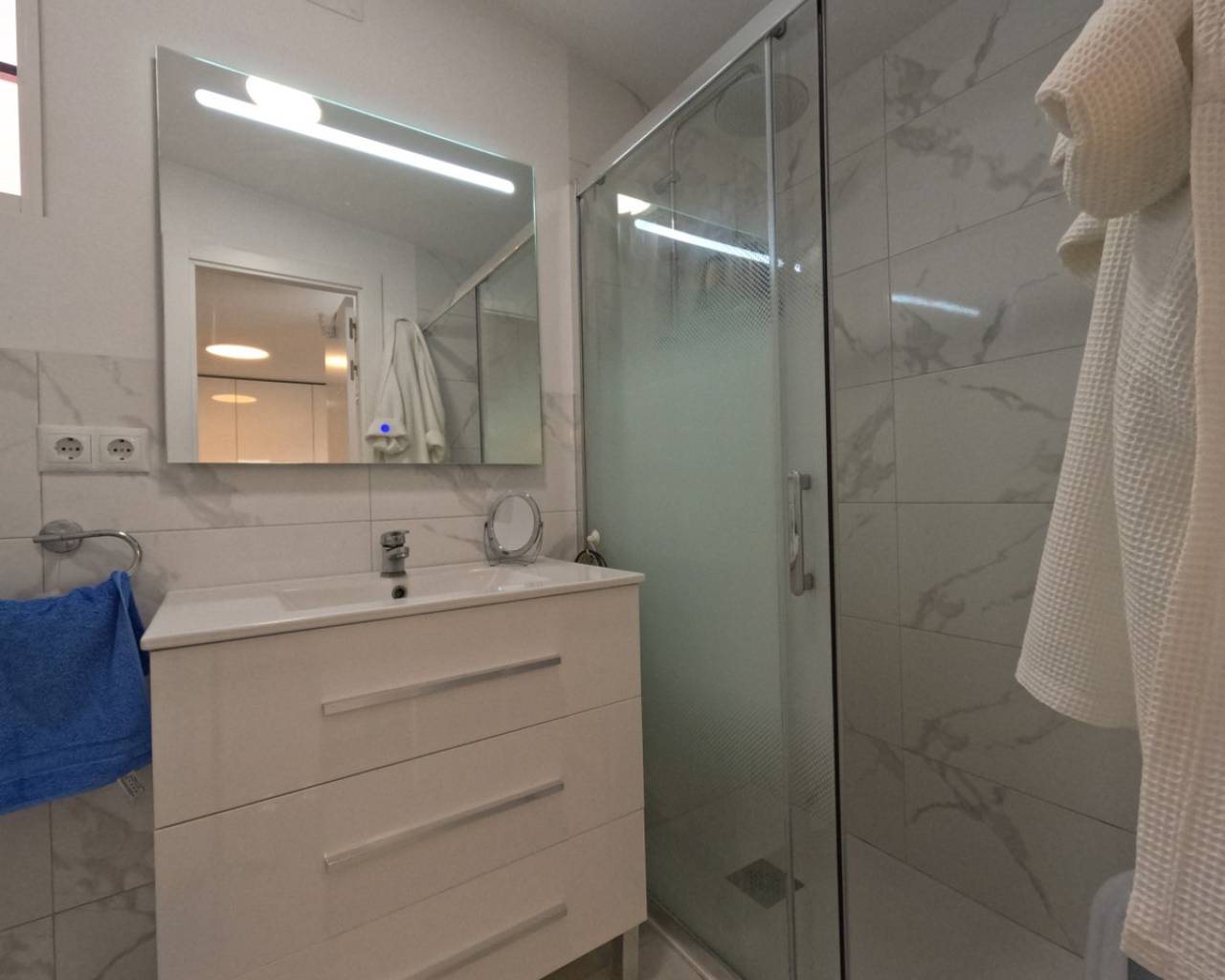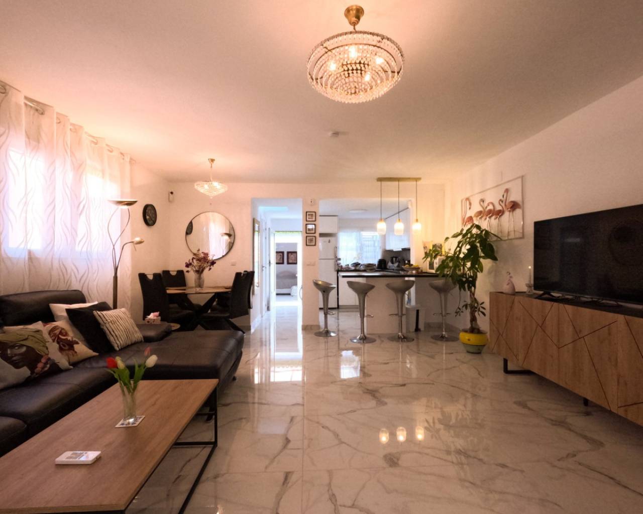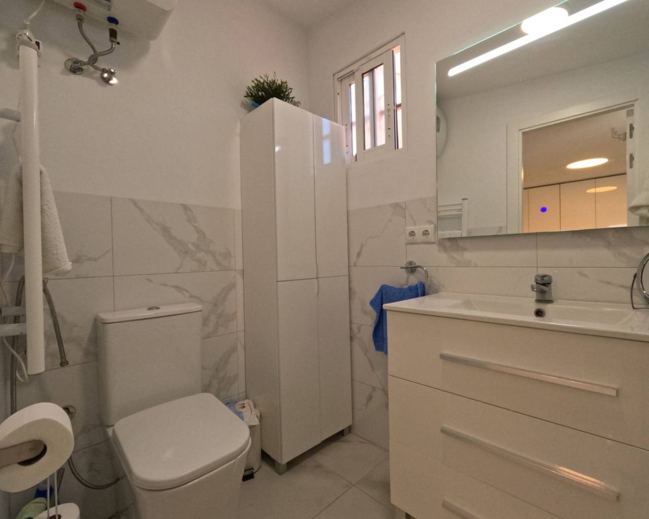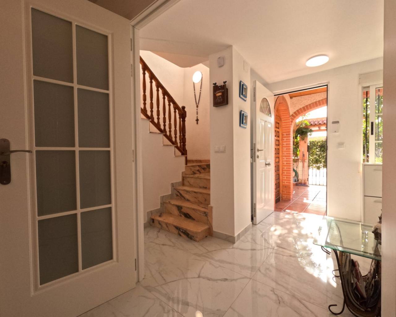 Discover this fantastic corner terraced house located in a quiet and pleasant residential area of Torrevieja, strategically positioned between Los Náufragos Beach and the famous Salt Lakes, just 350 m from the sea. A perfect setting to enjoy the Mediterranean lifestyle all year round. With 116 m² of built area, this corner property offers spacious, bright and well-distributed interiors — ideal as a permanent home, holiday retreat or investment. It features 4 bedrooms, making it perfect for large families, a home office, guest rooms or rental opportunities with excellent potential. The renovated ground floor includes a comfortable living room with underfloor heating, a functional open-plan kitchen with separate laundry area, one bedroom and a full bathroom. From this floor, there is direct access to the private solarium, a highly valued space for sunbathing, relaxing, or enjoying open views in a chill-out atmosphere. On the upper floor, you'll find the remaining bedrooms, all with good ventilation and natural light. The property also features a terrace, private corner garden (perfect for barbecues, kids' area or leisure), and a private garage space, a real asset in coastal areas. A standout feature is the installation of photovoltaic solar panels, providing significant energy savings and making the home more efficient and sustainable. Sold semi-furnished, ready to move into or customize. A unique opportunity that combines space, privacy, outdoor living, energy efficiency and a privileged location close to the sea.