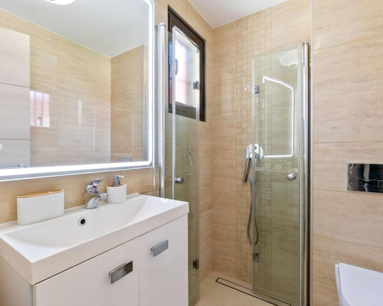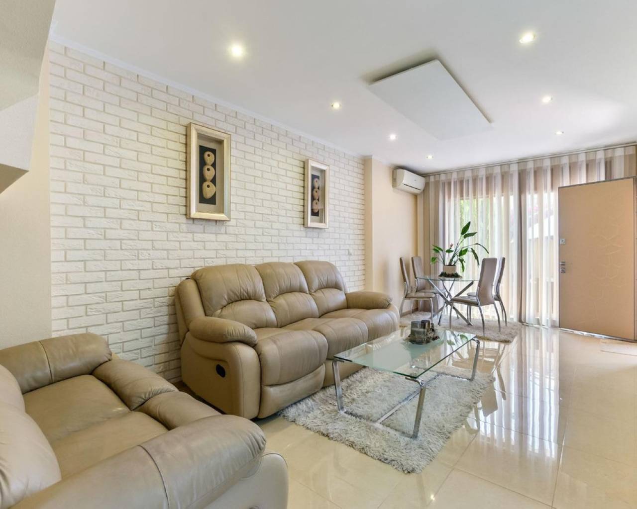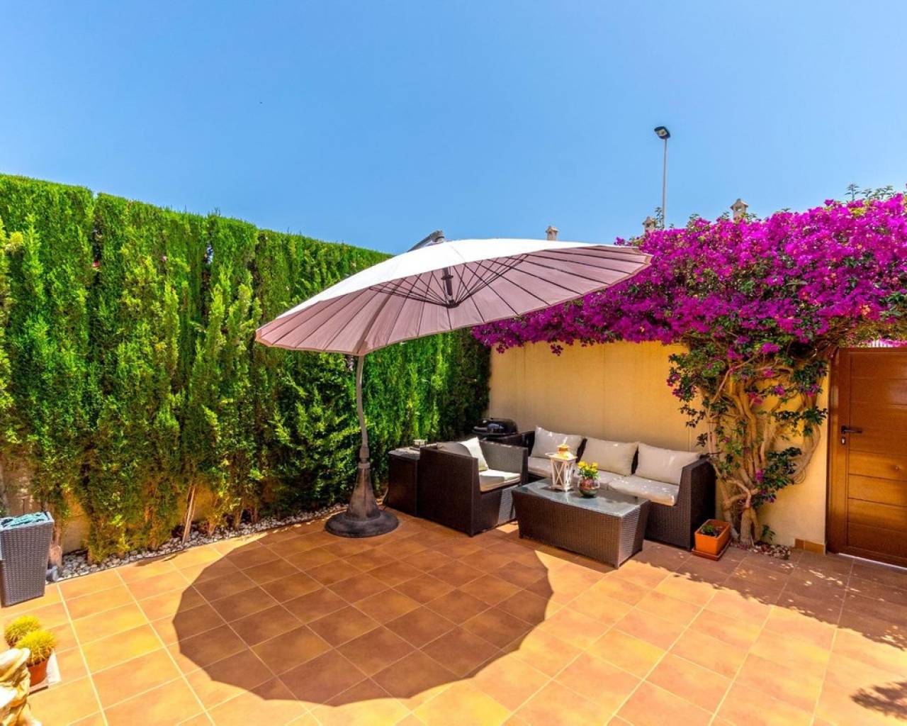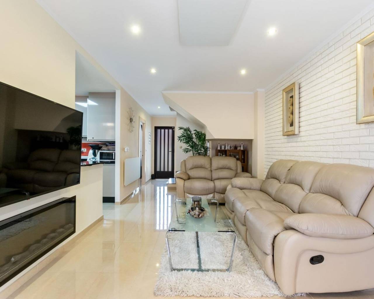 This stunning two-storey townhouse combines privacy, comfort, and contemporary design in a fully renovated home decorated with exceptional taste. It features three spacious bedrooms with fitted wardrobes and two modern bathrooms, offering a functional and elegant living space. The fully equipped kitchen connects seamlessly to a bright and stylish living room furnished with high-quality pieces, including two leather sofas. Enjoy exceptional outdoor areas: a 43 m² front terrace with rattan garden furniture, a private rear patio, an upper-floor balcony, and a 40 m² private solarium — ideal for relaxing and enjoying the Mediterranean climate all year round. The property is sold fully furnished and equipped, including three TVs (50"–65"), Bosch dishwasher, Ariston Wi-Fi water heater, Panasonic air conditioning, infrared heating in every room. It also includes an alarm system, surveillance cameras, reinforced anti-theft doors and windows (up to 120 kg), safety bars, Grohe taps, and garden lighting with automatic irrigation and awnings. Every detail has been meticulously renovated: floors, bathrooms, bedrooms, and outdoor areas. Sold exactly as shown in the photos, ready to move in. A unique home for those seeking quality, elegance, and peace in a prime location.