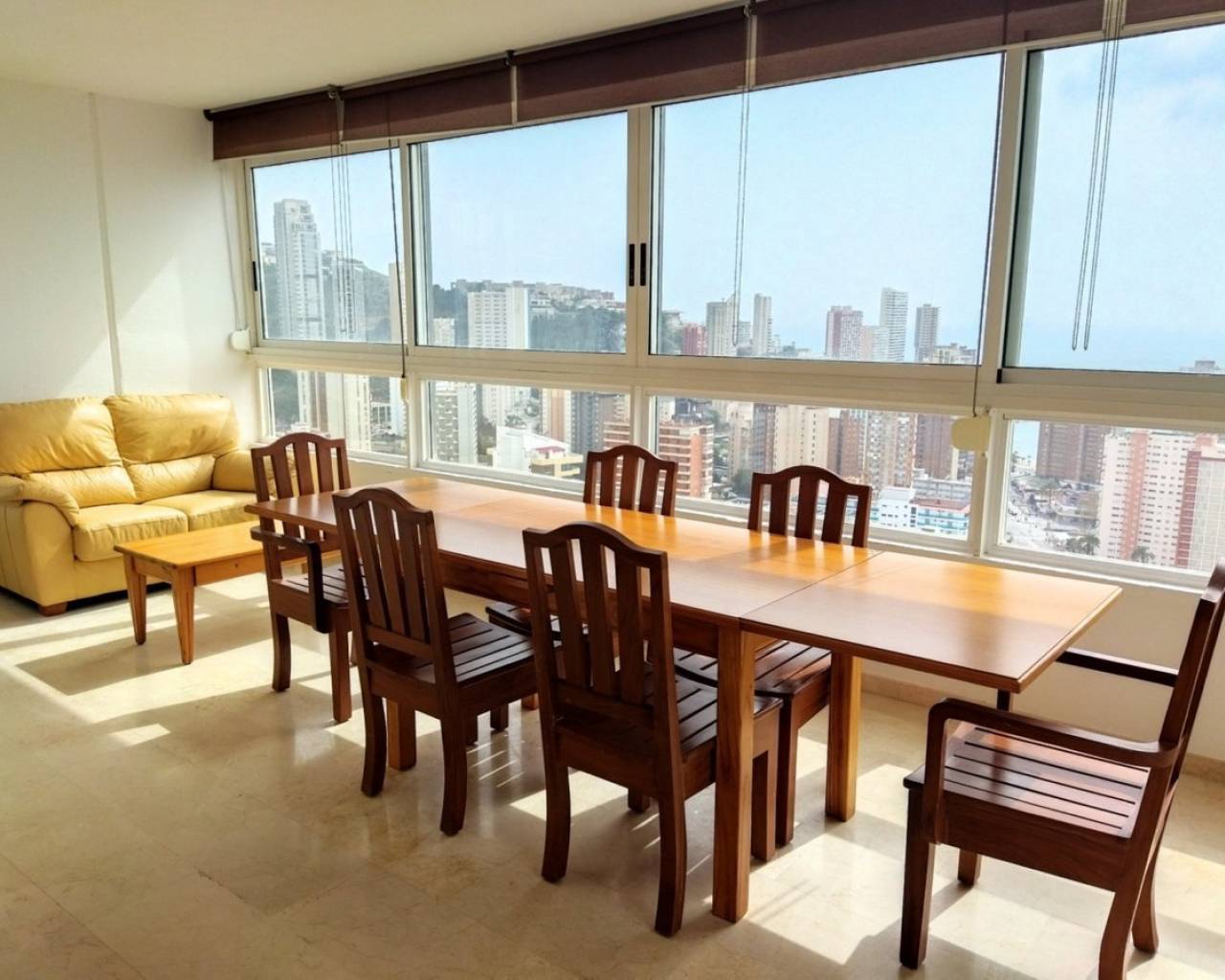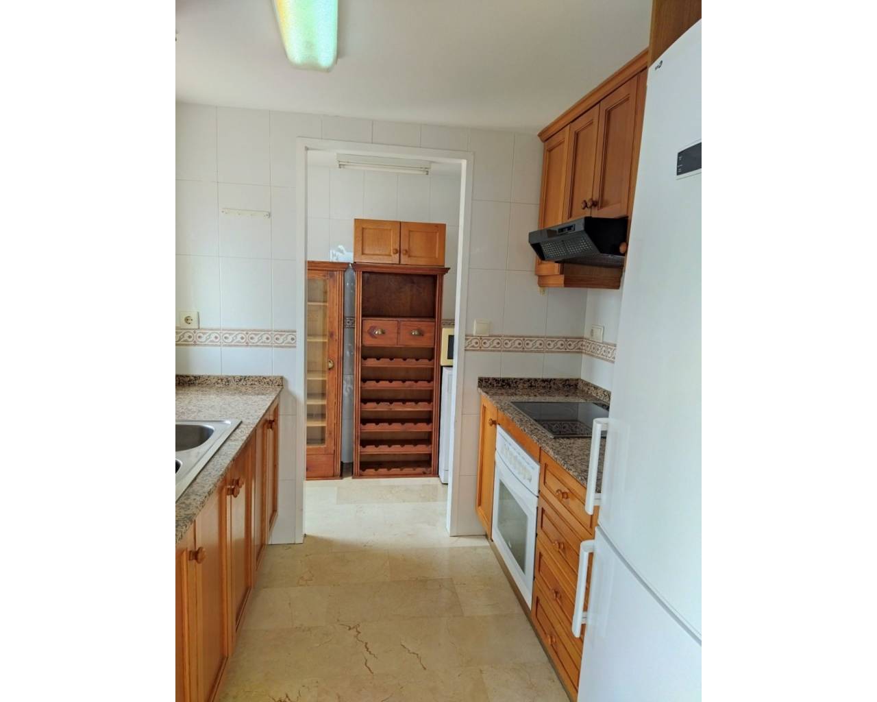 This spectacular 160 m² apartment offers an excellent location in the flat area of Rincón de Loix, one of the most desirable neighborhoods in Benidorm. Facing south, it enjoys natural light throughout the day. The property is in good condition and has marble finishes, providing a touch of elegance and quality. Outstanding features of the apartment: Spacious and bright spaces: The south orientation allows natural light to enter every corner, making this a warm and welcoming home. Bedrooms with built-in wardrobes: All bedrooms have practical built-in wardrobes that optimize space and provide order. Large living room with access to terrace: Perfect for enjoying moments of rest or outdoor meetings. Full and functional bathrooms Independent kitchen with gallery: Fully equipped and with a gallery ideal for additional storage or laundry area. Common areas and exclusive services: Communal pool and garden: Large green areas and pool to relax and enjoy the Mediterranean climate. Gym and sauna: For those who value well-being and health, the building has a gym and sauna, creating an experience of comfort and luxury at home. Solarium and sea views: From the solarium, you can enjoy clear views of the sea and the surroundings, ideal for relaxing or watching sunsets. Garage included: The property includes a parking space for greater comfort and security of residents. Surroundings and nearby services: Located in a central area, the apartment allows quick access to medical centers, schools and all kinds of essential services. The proximity to the sea and the exclusivity of the area make this property an exceptional opportunity for both permanent housing and investment. Sale price: €406000