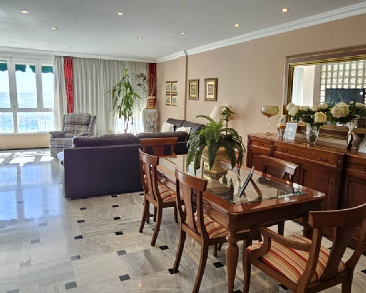Great home of almost 200 m2 in the heart of Benidorm. Corner house, ready to move into, corner, distributed as follows: 4 bedrooms, 3 doubles with built-in wardrobes and one single. 3 full bathrooms, one of them en suite in the large main room, large fully equipped independent kitchen and pantry-ironing area, and large living room with glazed terrace with frontal views of the sea. Hot and cold air conditioning throughout the house and electric blinds and awnings. Garage on property in basement. Unbeatable location to enjoy the best beaches in Benidorm and just a step away from any service you may need, supermarkets, shopping area and restaurants. Find out more and make an appointment to see your future home in Benidorm.