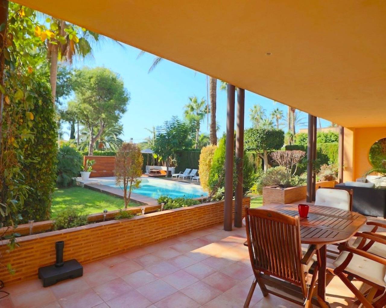This spectacular villa is located within the municipality of Benidorm, just 2 minutes by car from the center.~ ~ The urbanization is one of the most exclusive in the area and has private security as well as a communal area with a swimming pool. Although most of the villas in the area have a private pool.~ ~ The house is distributed over 3 floors, the main house being the ground and first floors, and the basement floor is a diaphanous area of approximately 200m2 with many possibilities and the garage area.~ ~ It has a living room with two rooms with access to the large terrace overlooking the garden and pool, a large kitchen also with access to the terrace and the laundry room where you also access the garage and basement. On the main floor there is also a separate dining room for 8-10 people.~ ~ Upstairs we find 4 bedrooms, all with access to the terraces, plenty of closet space and 2 full bathrooms, the master bedroom being ensuite. The master bedroom also has a full walk-in closet.~ ~ The plot is very spacious and has large garden areas, a private salt water pool with a Jacuzzi and a countercurrent swimming motor, as well as a lot of privacy.~ ~ For more information and visits, do not hesitate to contact us~