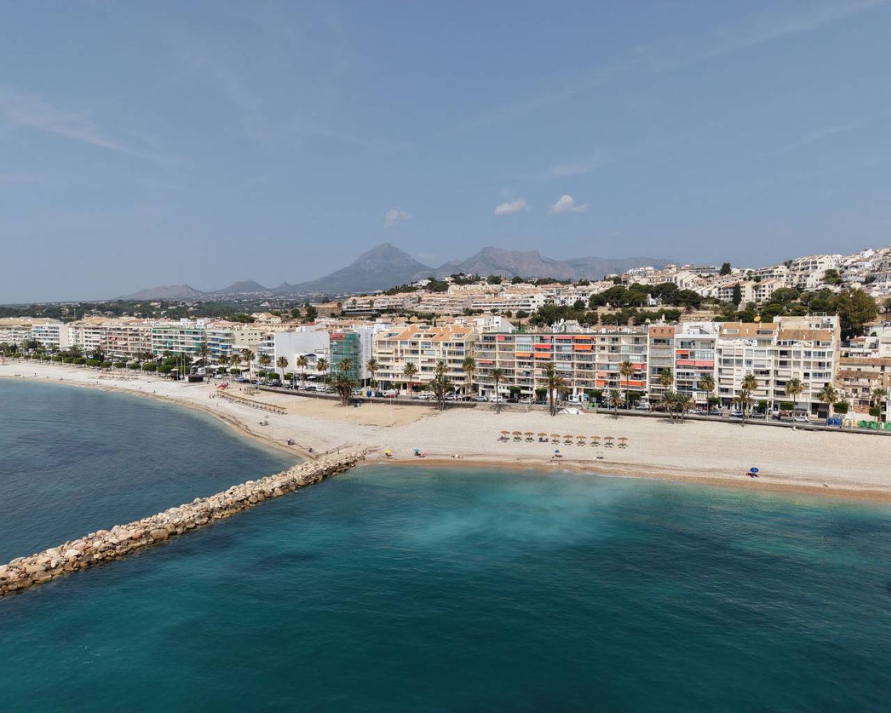 "Perfect location: just 10 meters from the sea. This modern second-floor apartment with an elevator is not just an apartment.. . it's a lifestyle. It has 3 spacious bedrooms, 2 full bathrooms (one with a shower and the other with a bathtub), a separate kitchen, a laundry room, and a living-dining room so spacious that you will want to invite all your friends. The terrace, with sea views, is that perfect corner for your quiet mornings or your nights with wine and good company. Ducted air conditioning, built-in wardrobes, elegant and warm granite flooring. Natural light fills the space. And yes, it includes a parking space. There is no pool, but the Mediterranean awaits you just a few steps away. Literally. Additionally, there are nice restaurants, supermarkets, and bus stops. Everything at hand. Sold with furniture. This apartment conveys something special. Energy, calm, light.. . The tourist license is not aloud in this community, so you will have a quite life here And that is often what really matters. Message me to schedule a visit."