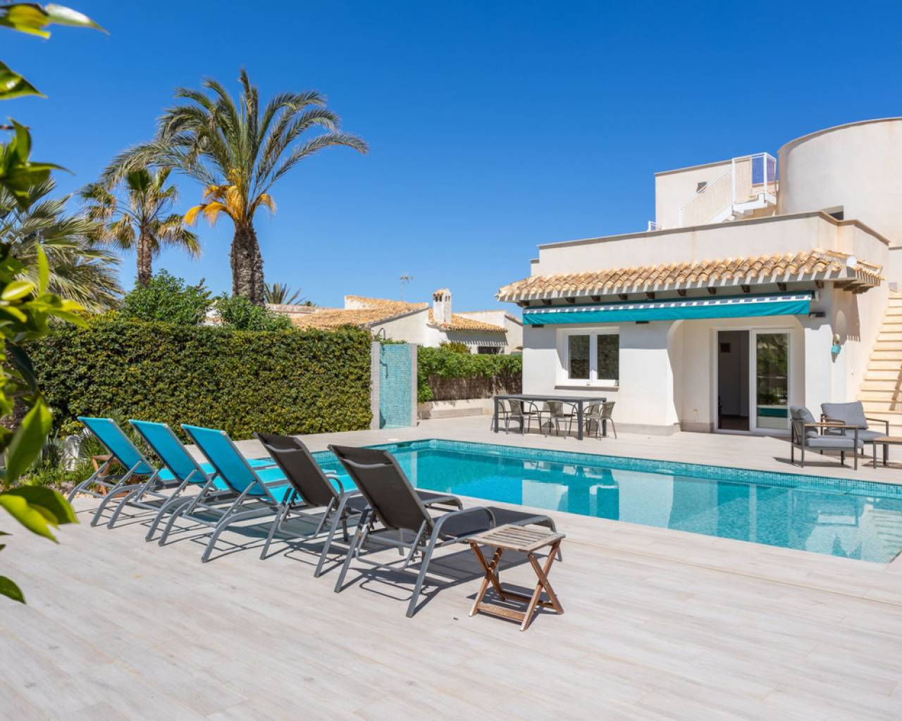 Elegant villa only 150 meters to the beach! Only 150 meters to the beach - elegant detached villa in Playa Flamenca with private pool and roof terrace Welcome to this stylish and well-planned villa with a fantastic location in the heart of sought-after Playa Flamenca on the southern Costa Blanca - and only 150 meters from being able to lie down directly on the beach! This detached villa offers three bedrooms and three bathrooms, a lovely light and open spaces that create a warm and inviting feel. There is space for both everyday life and holiday luxury - perfect for those looking for something out of the ordinary. The outdoor environment is something truly special: a private pool to cool off in, a five-hole mini golf course for playful moments, an outdoor kitchen and barbecue area for lovely al fresco dining, and parking on your own property. From the generous roof terrace you can enjoy a sweeping view and feel the sea breeze from the Mediterranean. The entrance floor contains an airy open-plan living room and kitchen, two bedrooms and two modern bathrooms. The kitchen is both functional and tasteful with plenty of storage space and work surfaces. The bedrooms have peaceful locations and pleasant light. On the upper floor there is a third bedroom with its own bathroom (en suite) and direct access to the large terrace - a perfect place for morning coffee or evening sunset. Here you live with the beach as your closest neighbor and at the same time you are close to amenities such as La Zenia Boulevard, restaurants and services. For the golf enthusiast there are several high-class golf courses just a short drive away, such as Villamartin Golf, Real Club de Golf Campoamor Resort and Las Ramblas Golf. A fantastic villa with a dream location – just 150 meters from the sand! Please contact us for more information or to book a viewing. We will of course conduct digital viewings if you are unable to be there in person.