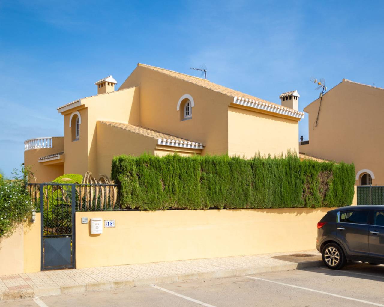 Villa with large plot, private pool and sunny terrace A warm welcome to this well-planned villa with a large plot and private pool located in the charming area of Playa Honda. Here you live close to beaches, the Mar Menor and the Mediterranean Sea. The area also has a good selection of shops, restaurants and cafes. For those interested in golf, there is a large selection of golf courses on the Costa Calida and southern Costa Blanca. You can get to the airport in Alicante in about 1 hour and 30 minutes by car. The villa has an inviting feel, a well-thought-out floor plan and a pleasant flow of light throughout. There are three bedrooms, two bathrooms, a living room and a kitchen. There is also a large sunny terrace and on the plot there is a swimming pool and plenty of space for sun loungers, a lounge group and outdoor furniture. The living room is spacious and there is plenty of space for both a sitting area and a dining area. The kitchen is well laid out with good work surfaces and good storage options. The three bedrooms have pleasant light and plenty of space for beds and bedside tables. Two of the bedrooms are furnished with double beds while the third is furnished with two single beds. The two bathrooms are large, one bathroom is equipped with a toilet, double sink with commode, shower and bathtub while the other is equipped with a toilet, sink and shower. Please contact us for more information or to book a viewing. We will of course conduct digital viewings if you are unable to be there in person.