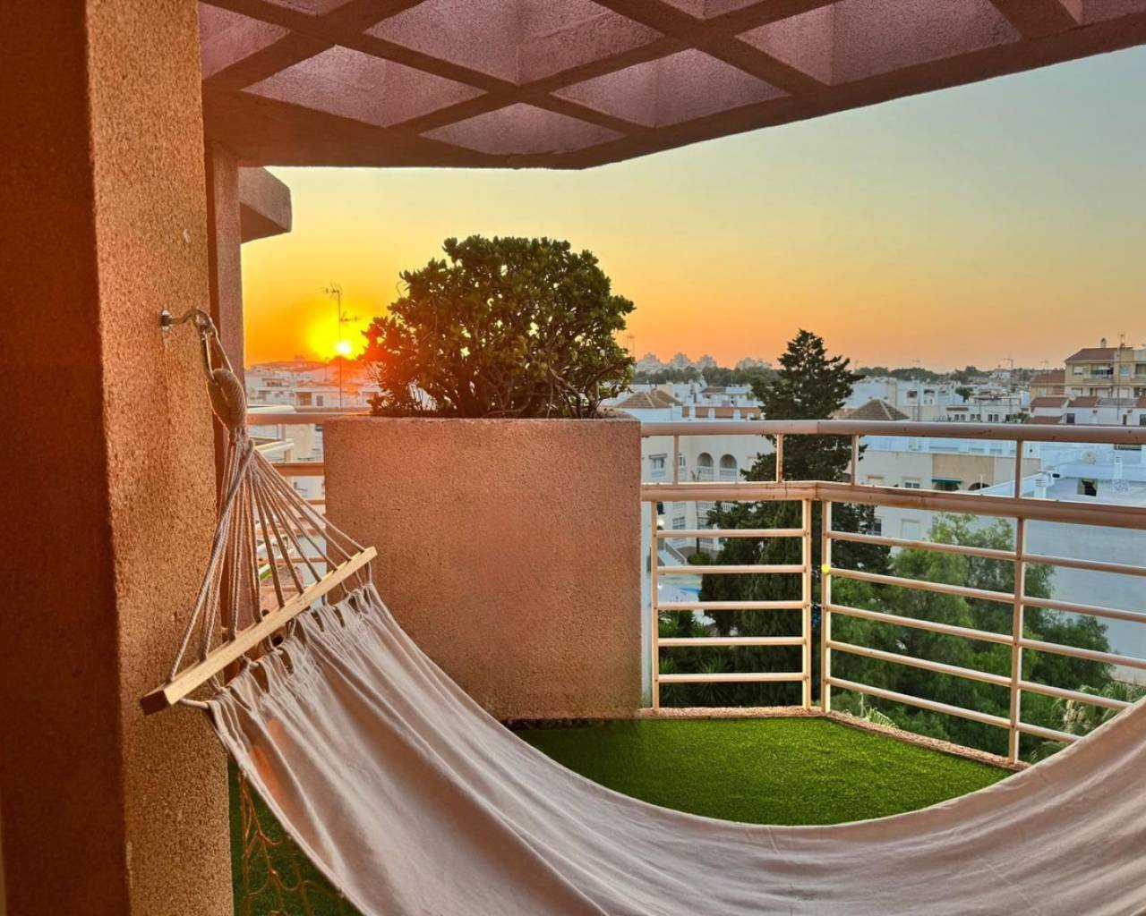 Bright penthouse on two levels – just 300 meters from the beach In one of Torrevieja's most attractive locations, just a stone's throw from the sparkling Mediterranean Sea and the lively Playa de Los Locos, you will find this stylish and well-planned penthouse on two levels - a home where both quality of life and location are at the center. The approximately 120 sq m home offers bright and airy living with a lovely feeling of space. There are two comfortable bedrooms with built-in wardrobes and two bathrooms, making the home ideal for a couple, family or someone who likes to have guests over. The social heart of the home is the open living room where you are greeted by generous spaces and a beautiful light. From here you have direct access to a sunny balcony, perfect for morning coffee or a moment in the afternoon sun. Upstairs, a private terrace awaits – your very own oasis with space for a lounge group, plants and dinners under the stars. The apartment is located on the fifth floor with an elevator and is equipped with air conditioning for both cooling and heating, providing a pleasant indoor climate all year round. Here you live with every conceivable service within easy walking distance: cafes, restaurants, shops, promenades and Torrevieja's vibrant city pulse. The nearby beach, Playa de Los Locos, is known for its clear waters, golden sand and relaxed atmosphere - a place where life can take its time. This is an accommodation that truly embodies the best of the Spanish east coast – sun, sea, comfort and a vibrant city life around the corner. Welcome home to a life in the sun. Please contact us for more information or to book a viewing. We will of course conduct digital viewings if you are unable to be there in person.