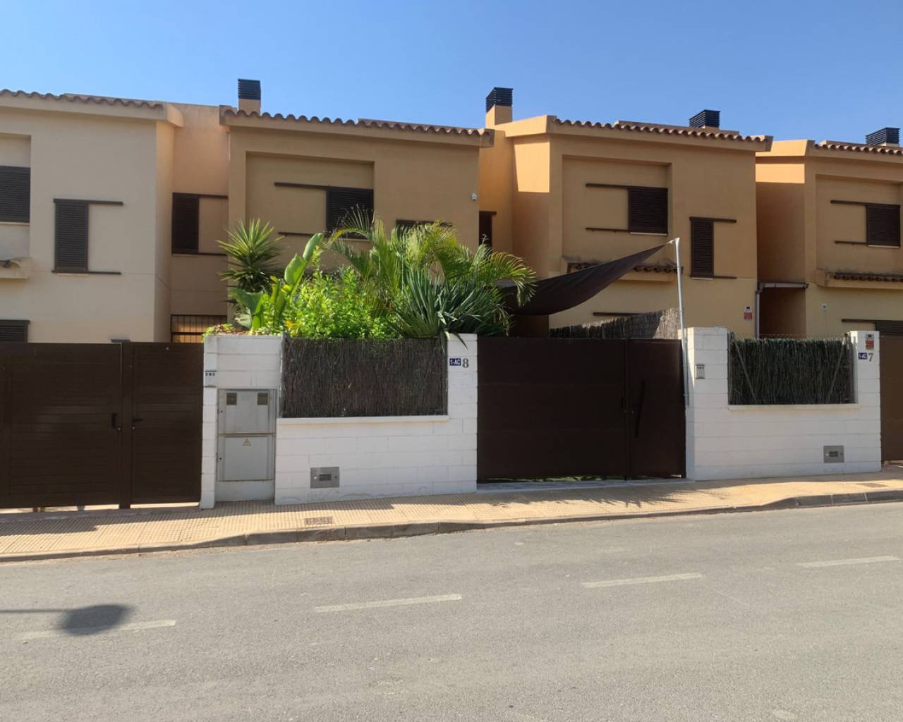 Terraced house with patios, terrace and shared pool A warm welcome to the pleasant area of Lomas de Cabo Roig on the southern Costa Blanca. Here you live a comfortable distance from nice beaches, well-maintained golf courses and a good range of shops and restaurants. The large La Zenia Boulevard shopping center is a short drive away. Torrevieja city can be reached in about 20 minutes by car. This terraced house is well planned and distributed over two floors, there are two bedrooms, two bathrooms, living room and kitchen. In addition to this, there are two patios on the ground level and a sunny terrace. In the common area there is a swimming pool. Parking options are available on the plot or on the street. The house has a consistently inviting feeling and is in good condition, the surfaces are lightly furnished and there is a consistently good flow of light. The living room and kitchen are in an open plan and there is plenty of space in the room for both a lounge area with a sofa and a dining area for four people. The kitchen has good storage options in upper and lower cupboards and good work surfaces. The two bedrooms are furnished with double beds and bedside tables, both bedrooms also have built-in wardrobes. Two fresh bathrooms equipped with toilet, sink and shower. The terrace has a sunny location and there is room for sun loungers or lounge furniture. The two patios on the ground floor are spacious and there is room for seating groups and deckchairs if desired. Welcome to contact us for more information or to book a viewing. We will of course carry out digital viewings if you are unable to be there.