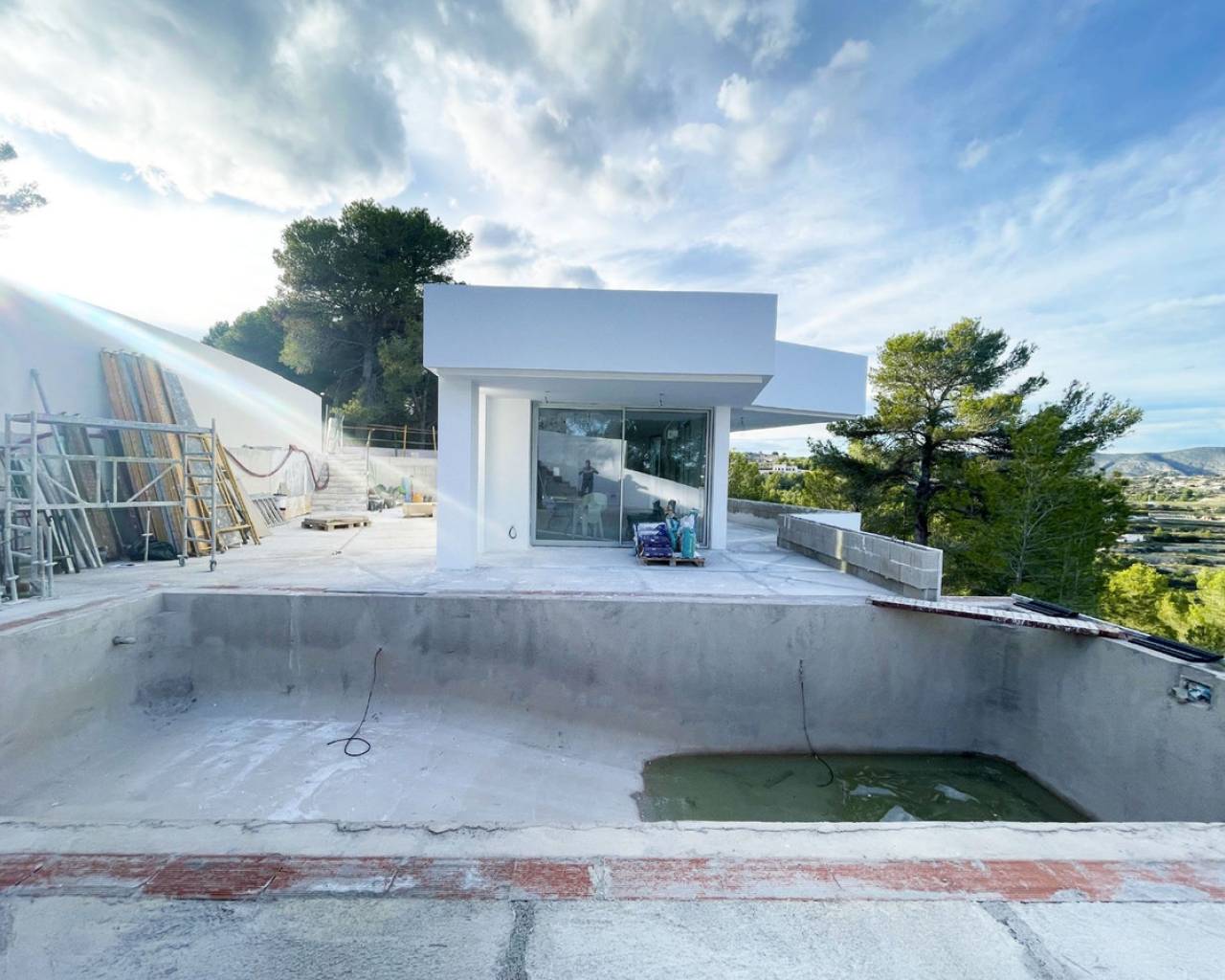 strong>Modern Villa Under Construction (80% Complete) in Moraira – Contemporary Style with Panoramic Views This stunning modern villa, currently 80% built, is located in a quiet area of Moraira, offering a contemporary design with high-quality materials. Situated on an 887 m² plot, the property has a built area of 286 m², intelligently designed to maximize natural light and unobstructed views of the surroundings. Inside, the home features spacious open-plan living areas with a stylish living-dining room seamlessly connected to a fully equipped American kitchen, creating a modern and functional space. It includes three bedrooms with built-in wardrobes and three bathrooms, plus a guest toilet. The villa is equipped with central heating, air conditioning, double-glazed windows, and a security door, ensuring comfort and safety all year round. Outside, the property offers a private garden, a private swimming pool perfect for relaxing, and parking space. Its southeast orientation guarantees plenty of natural light throughout the day. A perfect property for those seeking a modern, efficient, and comfortable home in one of the most exclusive areas of the Costa Blanca. Ideal as a permanent residence or as an investment. Don't miss the opportunity to complete this magnificent villa to your taste and start enjoying the Mediterranean lifestyle in Moraira.