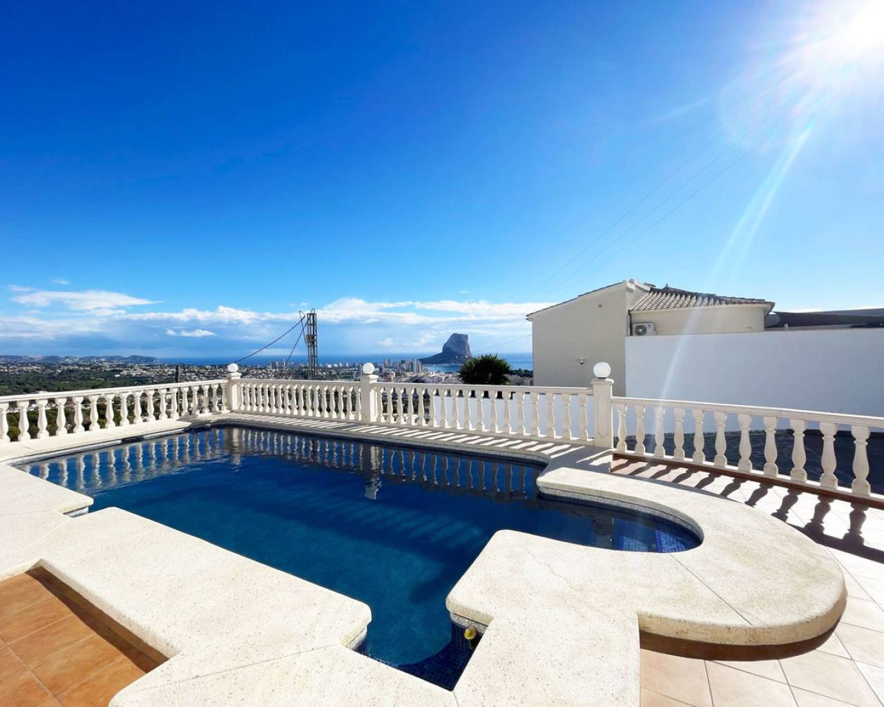 strong>House with Sea and Mountain Views in a Peaceful Area of Calpe For sale: an impressive detached villa located in an elevated and quiet area of Calpe, offering panoramic sea and mountain views. A spacious and comfortable home designed to provide maximum comfort all year round. The property features 384 m² of built area on a 799 m² plot, distributed over two floors and equipped with solar energy for excellent energy autonomy. It offers 4 bedrooms and 4 bathrooms (2 and 2 on each level), along with 3 fully equipped kitchens, one of them outdoors — perfect for barbecues and summer gatherings. Outside, the home includes a private pool, garden, spacious terraces with open views, and a private garage. It is equipped with air conditioning, electric heating, double glazing, and is sold fully furnished. A perfect property for those seeking tranquility, spectacular views, and a Mediterranean lifestyle with all modern comforts. Would you like to schedule a viewing or receive more information? We will be happy to assist you at any time.