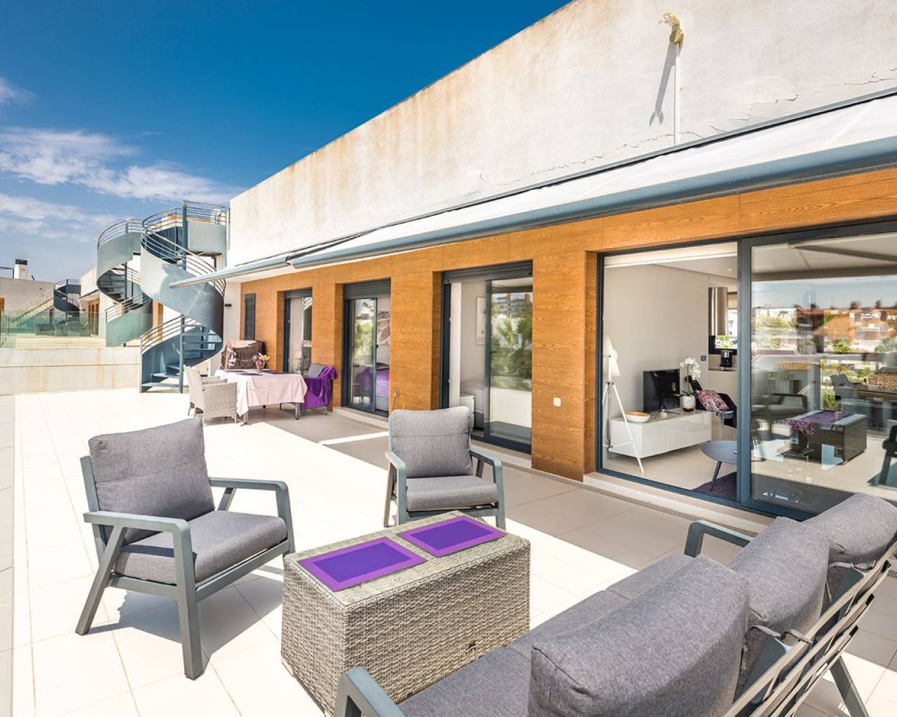 Stunning penthouse in Villamartin A stylish home in the sun In the heart of Villamartin, a penthouse of exceptional beauty and quality offers living comfort for discerning tastes. The apartment has three spacious bedrooms, each with access to a huge awning-shaded terrace perfect for sunbathing, dining or relaxing. The modern and functional open-plan kitchen connects seamlessly to the bright living room, which opens onto the large terrace. In addition, the apartment has a private roof terrace the size of the entire apartment, offering breathtaking views of the Mediterranean Sea. There is a comfortable swimming pool area where you can start your day with a peaceful morning swim. The apartment has been used by only one family and is in excellent condition. The location is ideal for golf courses and other leisure activities to be found nearby, and all daily services are within walking distance. The seafront is about 20 minutes away and Alicante airport is about 50-60 minutes away. This home offers the perfect combination of stylish living, stunning views and a great location.