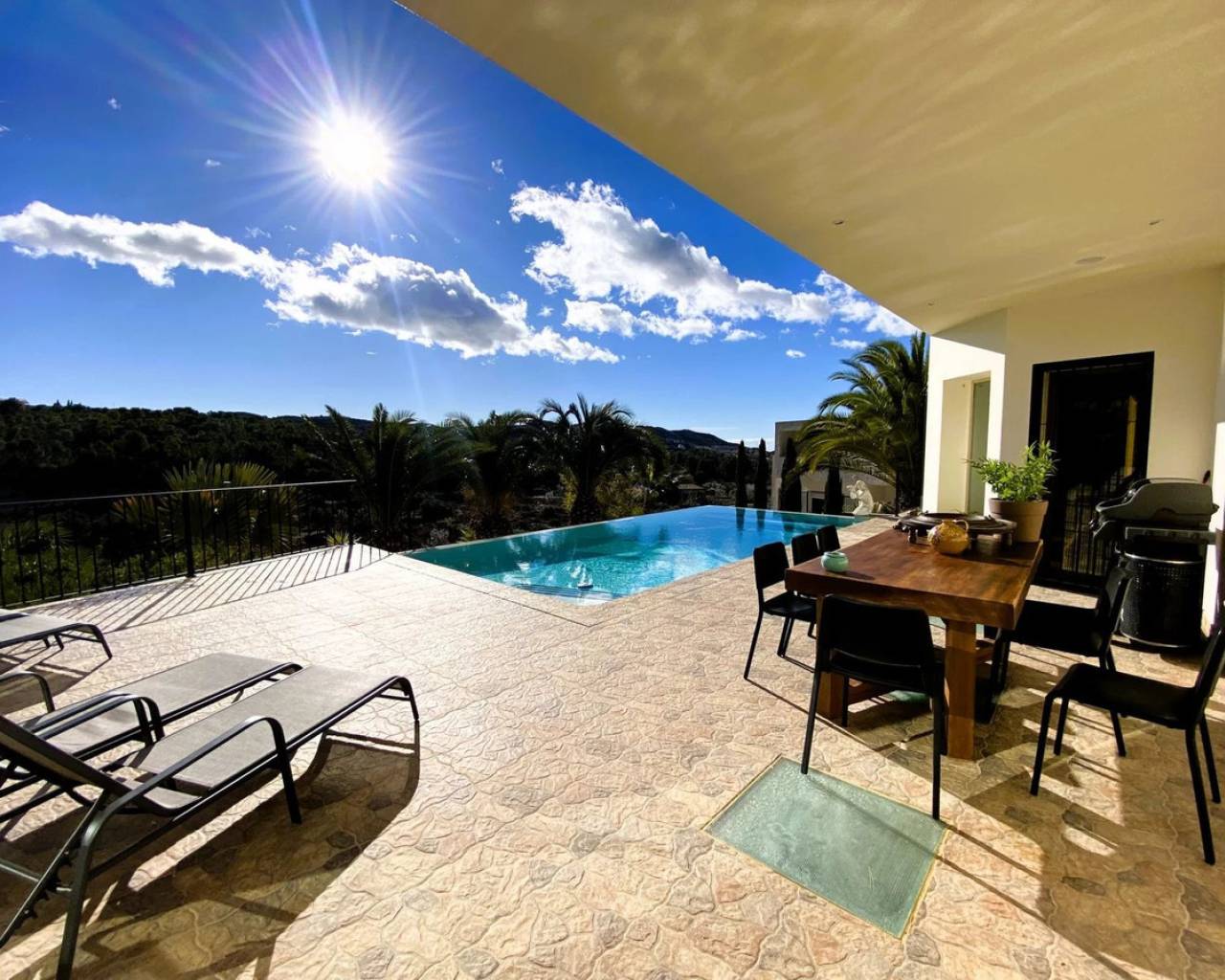 Beautiful luxury villa with indoor pool in an exclusive area with breathtaking views for sale in Busot We are delighted to present this meticulously designed villa with indoor and outdoor pool nestled in an exclusive locale boasting unparalleled views. Situated at the cul-de-sac's end within a prestigious residential enclave, this property offers tranquility and privacy, just a brief 10-minute drive from the picturesque shores of El Campello. With the village a mere 2-minute journey, Alicante city center within 20 minutes and easy access to the airport within 25 minutes, convenience meets luxury in this idyllic setting. Constructed in 2012 with robust materials and just now renovated to the highest standards, the villa exemplifies elegance and sophistication. Revel in the seamless integration of indoor and outdoor living with both an indoor and outdoor swimming pool. The main level features a generously proportioned living area adorned with lofty ceilings and a newly equipped open-plan kitchen. Floor-to-ceiling windows ensure panoramic views of the terrace and the surrounding natural splendor. The expansive master suite, complete with an en-suite bathroom boasting both a shower and a bath, opens onto the terrace. An additional bedroom with an en-suite bathroom, a guest toilet, and ample storage space complete this level. Step onto the spacious terrace to bask in the serenity, complete with an inviting infinity pool and multiple seating areas. Ascend to the top floor, where a bedroom, bathroom, office, and expansive outdoor terrace await, offering breathtaking vistas of the surroundings. The ground floor offers respite with a large indoor swimming pool, ideal for year-round enjoyment. Two bedrooms, a bathroom, a generously sized sitting area/library, and a versatile living or play area with a billiards table provide ample space for leisure. Additionally, a separate laundry room and access to the spacious garage can be found on this level. Underfloor heating, ventilation, and air conditioning ensure year-round comfort, while solar panels contribute to energy efficiency. If you seek an exclusive villa boasting timeless elegance and superior craftsmanship, look no further. Arrange a viewing today to experience the epitome of luxury living firsthand. Contact us for further details or to schedule a visit.