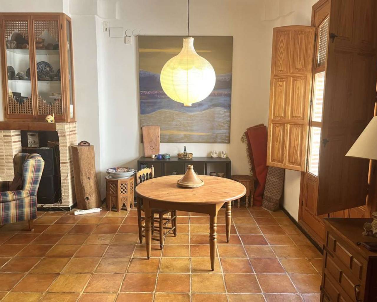 Experience the charm of this unique townhouse, crafted with exceptional taste and rustic materials sourced locally as well as from Africa. From its manually made clay pavement to its stunning façade adorned with exposed clay bricks, every detail exudes character and quality. Spanning three floors, this property boasts a ground floor featuring a picturesque old wooden entrance door leading to a spacious living-dining room with a spectacular fireplace. The fully equipped kitchen, laundry room, dining area with a wood stove fireplace, a bedroom, and a shower-equipped bathroom complete this level. Step outside to discover a delightful patio adorned with plants, fruit trees, and a beautiful well. At the back of the patio, a separate building serves as a summer kitchen and storage room. Ascend the internal staircase adorned with a beautiful wooden railing imported from Morocco to access the first floor, which comprises four double bedrooms, each with its own balcony and built-in solid wood wardrobes. Additionally, there's a large bathroom with a double sink and a separate shower room, as well as a central dressing room with three large closets. The second floor offers a spacious open room, a laundry room, and a terrace boasting breathtaking views of the mountains and the charming town of Orba. With its considerable potential, this property could serve as a private residence or be transformed into a Rural Accommodation House. There's even room to create two additional bedrooms on the second floor. Ideally situated on a tranquil street yet close to Orba's center and all amenities including restaurants, bars, pharmacies, and banks, this property offers convenience and serenity. Moreover, it's just a 15-20 minute drive from the beaches of Dénia and a short distance from Ondara, home to one of the largest shopping centers in the area, with easy access to the AP-7 connecting directly to the cities of Alicante and Valencia. Orba is a popular town with a vibrant local community and many British, German and Dutch inhabitants. It is famous for its alternative school, Ojo de Agua, which recently announced its closure. However, there are still many small forest-style school projects within a short drive from this house. To schedule a viewing or to have all your questions answered, please don't hesitate to contact us. We are fluent in English, Dutch, Spanish, Polish, and Hungarian, and we are excited to assist you.