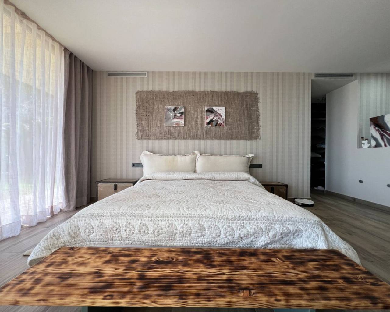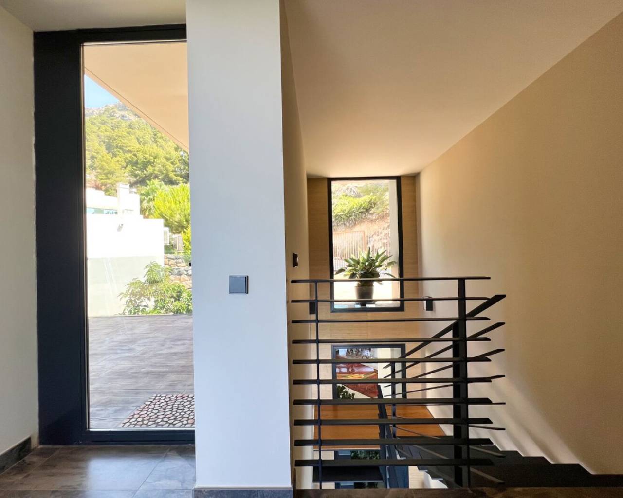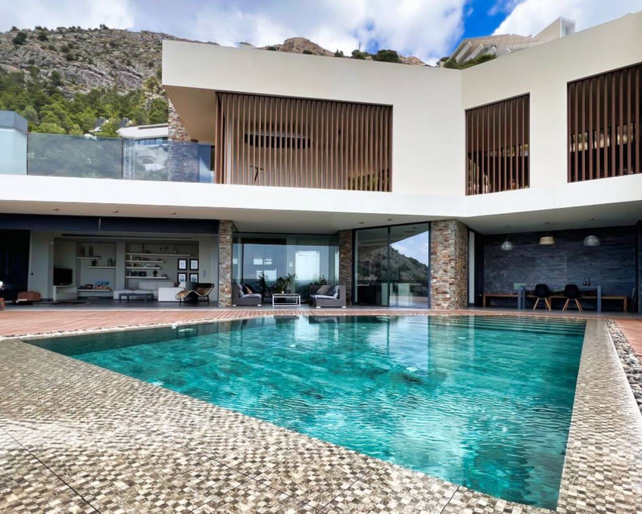 We present a sophisticated contemporary villa in the exclusive community of Altea Hills, with 24/7 surveillance to guarantee the safety of its residents. This elegant property stands out for its spacious architecture and innovative interior design, which adopts a philosophy of open spaces, clean lines and harmony with nature. From its privileged location, you can enjoy panoramic views of the sea and the imposing bay of Benidorm. Enjoy every sunrise and sunset from the multiple rooms with terraces, all equipped with glass enclosures and a sophisticated night lighting design. The villa has three spacious bedrooms, each with its own private bathroom, designed to guarantee comfort and style. In addition, there is the possibility of transforming an additional space into a fourth bedroom, adapting the property to your specific needs. All bedrooms are equipped with built-in wardrobes and large bathrooms, ideal for customising the spaces according to your preferences. The property offers a range of luxury amenities, including a lift for easy access to each level, a large saltwater pool for summer days, an additional space with a jacuzzi and sauna for your moments of relaxation, an elegant Art Nouveau fireplace for cooler evenings, and a spacious car park for several vehicles. You will also find an extra semi-open bedroom and extensive green areas spread over the four levels of the property, creating an atmosphere of peace and tranquillity. This villa represents the perfect combination of luxury, design, spectacular views and comfort, all in a unique environment. Don't miss the opportunity to make this your ideal home!