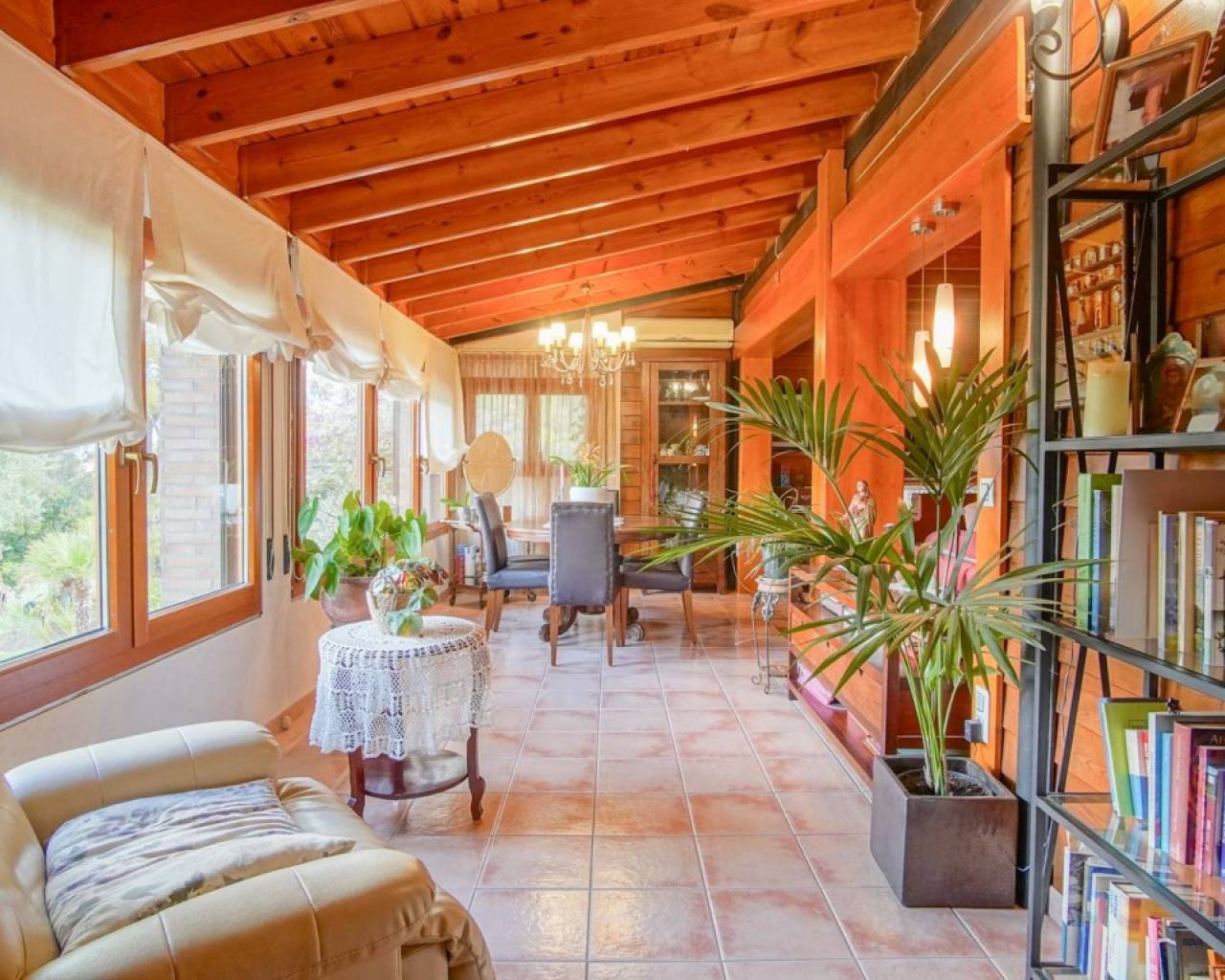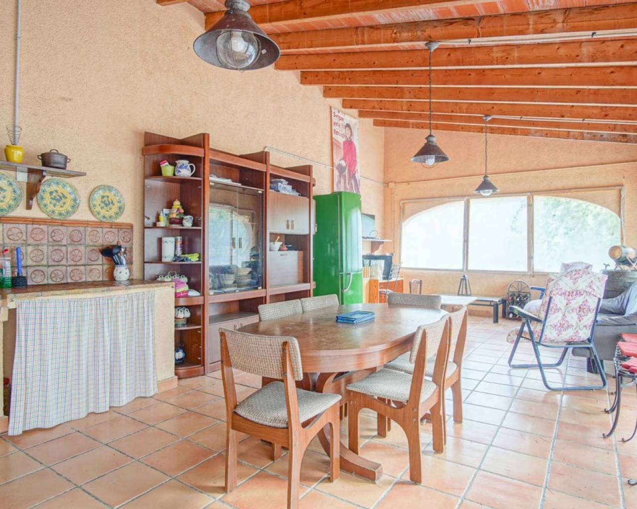 Experience the charm of this enchanting villa, built with noble materials such as Finnish pine and natural stone, nestled in the idyllic setting of Orba, Alicante. Situated on a mostly flat plot spanning nearly 18,000 m², this property is perfect for those who crave tranquility and a deep connection with nature. Ideal for animal and horse lovers, the estate comes equipped with stables, providing ample space for your pets to roam freely. As you enter the villa, you are greeted by a warm, inviting ambiance. The first floor features three spacious double bedrooms, one of which boasts an en-suite bathroom, ensuring comfort and privacy for family members or guests. The living-dining area, with its cozy central fireplace, is the perfect place to unwind while enjoying picturesque views of the lush garden and sparkling swimming pool. From this space, the surrounding valley and mountain landscape become part of the home, creating a serene and soothing atmosphere. The separate kitchen, complete with a pantry and laundry room, is designed for those who love to cook while basking in the peaceful ambiance of the countryside. On the upper floor, an expansive open space offers breathtaking views of the surrounding nature. Currently used as an office and reading nook, this area is ideal for creative work or quiet contemplation. The panoramic views from this level are truly spectacular, changing with the light of day and the seasons, providing endless inspiration. The half-basement is a versatile space that surprises with its potential. It includes parking for up to three vehicles, a workshop for DIY enthusiasts, a bedroom, a kitchen, and even a bathroom. With the option to convert this level into a self-contained apartment, you have endless possibilities for hosting guests or generating additional rental income. The villa's exterior is equally impressive, with Mediterranean gardens filled with pine and olive trees, enhancing the sense of natural immersion. The property also features a charming barn, perfect for hosting family gatherings or enjoying meals with friends—making every occasion special and memorable. Despite its secluded, peaceful setting, the villa is well-connected. Shopping centers and hospitals are just a 15-minute drive away, while the beach is only 20 minutes from your doorstep. The picturesque town of Orba, offering all essential amenities, is less than 10 minutes away. This villa is more than just a home; it's a sanctuary where nature and comfort merge in perfect harmony, offering a one-of-a-kind peaceful lifestyle. Don't miss the opportunity to make this dream property yours!