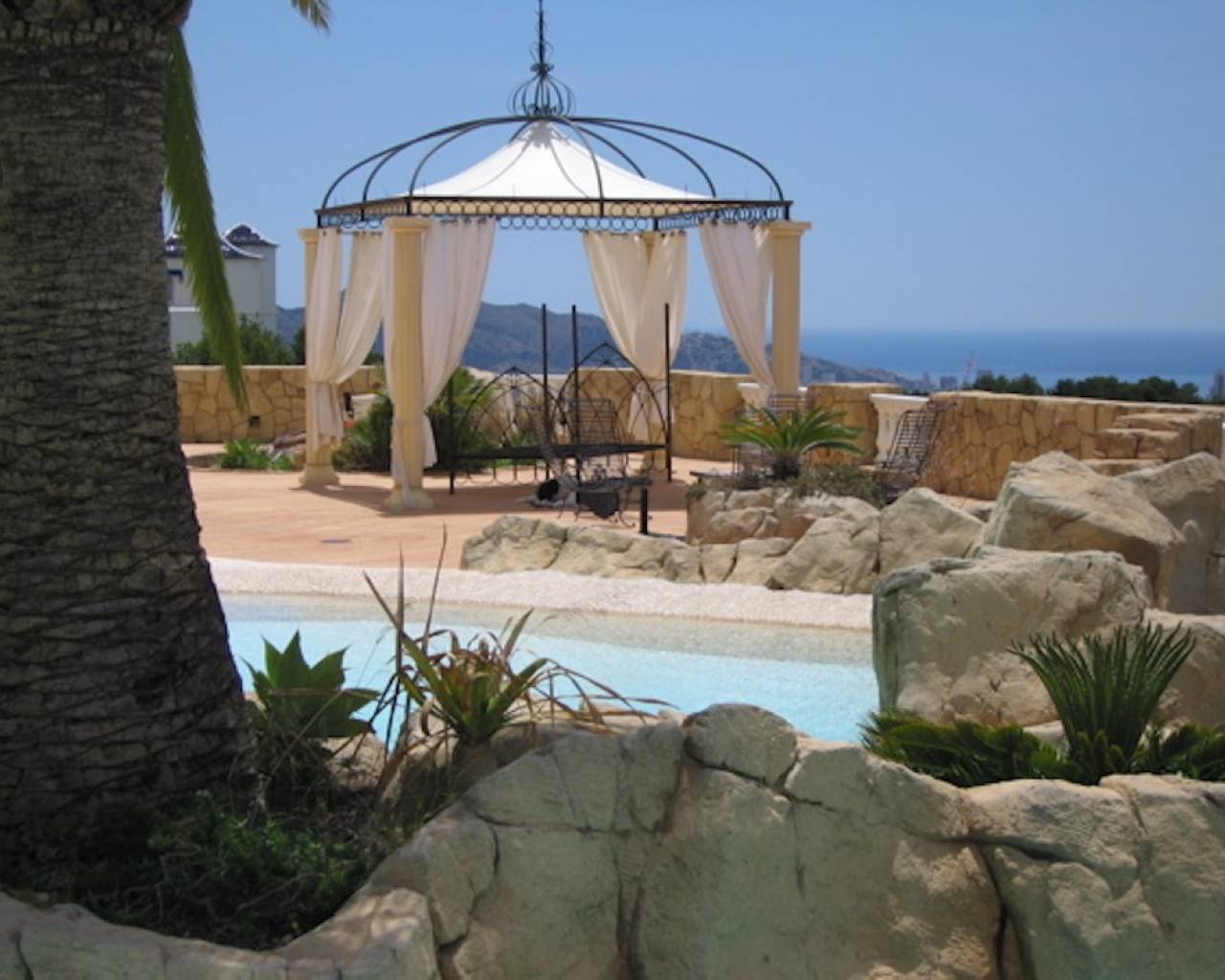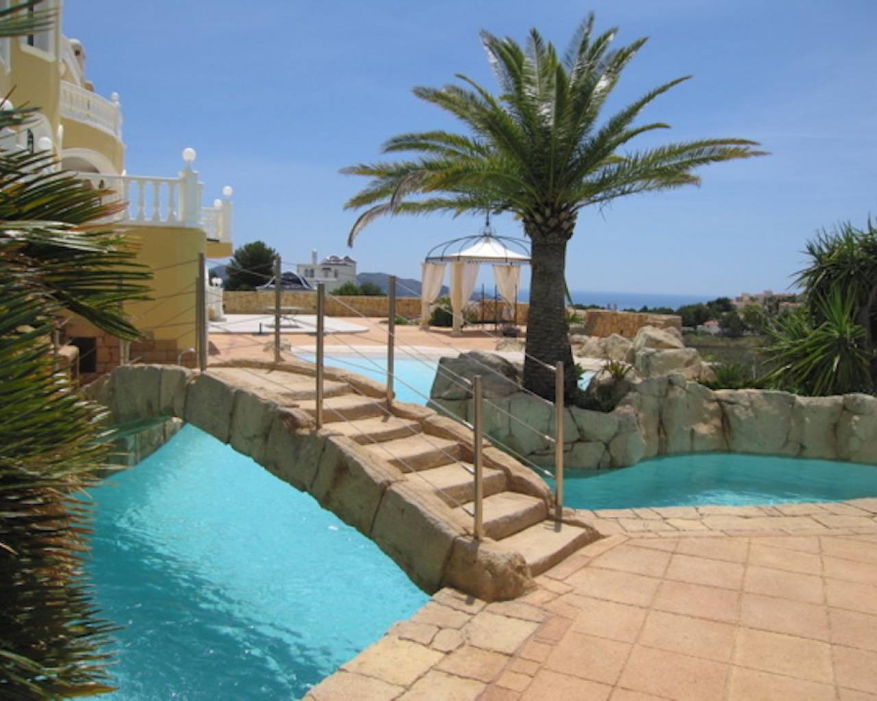 Stunning Luxury Villa/Mansion in La Nucía. Stunning Luxury Villa-Mansion with Panoramic Views in Altea This extraordinary villa-mansion offers approximately 2,000 m² of luxurious living space, set on a generous 17,823 m² plot with breathtaking 360-degree views of the sea, mountains, and the entire Bay of Altea. Designed and built to the highest standards, the property features Tecnal windows with armored glass, elegant marble bathrooms, Venetian stucco finishes, and premium-quality fixtures throughout. The estate includes: 8 spacious bedrooms (4 en-suite) 5 Living/Dining Rooms 6 bathrooms and 4 guest toilets 5 fully equipped kitchens 6 garages with automatic gates Wine cellar Fitness Studio/gym Laundry Room 3 Storage Rooms 2 Machine Rooms 2 Large Multipurpose Rooms or Party Or Games Rooms 177 m² swimming pool with waterfalls, fountains, and jacuzzi A 400 m² party room and a conference room The mansion comprises four independent living areas—three within the main residence and one separate guest apartment—providing privacy and versatility for family and guests. Comfort is assured with underfloor heating powered by hot water and other state-of-the-art amenities. Contact us today for more detailed information and to request a brochure with floor plans. Don't miss this rare opportunity to own a true masterpiece in one of the most desirable locations on the Costa Blanca.