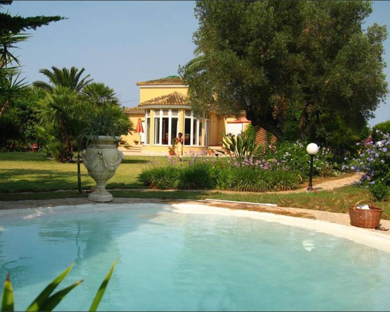 Beautiful property for sale in Denia between Torrecarrals, La Xara and Ondara, in a very calm place - Park of 5000 m2 totally settled: different Mediterranean species, palm trees, orange grove, shrubs, flowers, succulent plants, several terraces and a swimming pool of 12m x 5m with roman steps - The villa of 150 m2 comprises an entrance hall with built-in wardrobes, a large living / dining room, a glazed rotunda with view on the park, fully equipped kitchen, 3 double bedrooms with built-in wardrobes, 2 bathrooms and a guest toilet - Gas central heating, air conditioning, double glazing, shutters and mosquito nets - Next to the house is an independant studio of 50 m2 with American kitchen, full bathroom, large closets and a very nice covered terrace - Carport for 1 car and outside parking for 5 cars - The whole property is fenced and closed by a metallic gate with intercom - Very interesting to view !