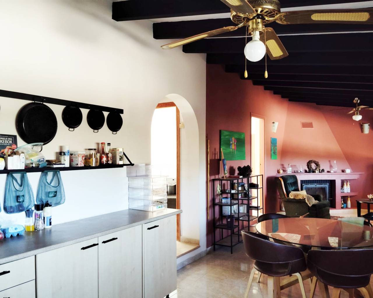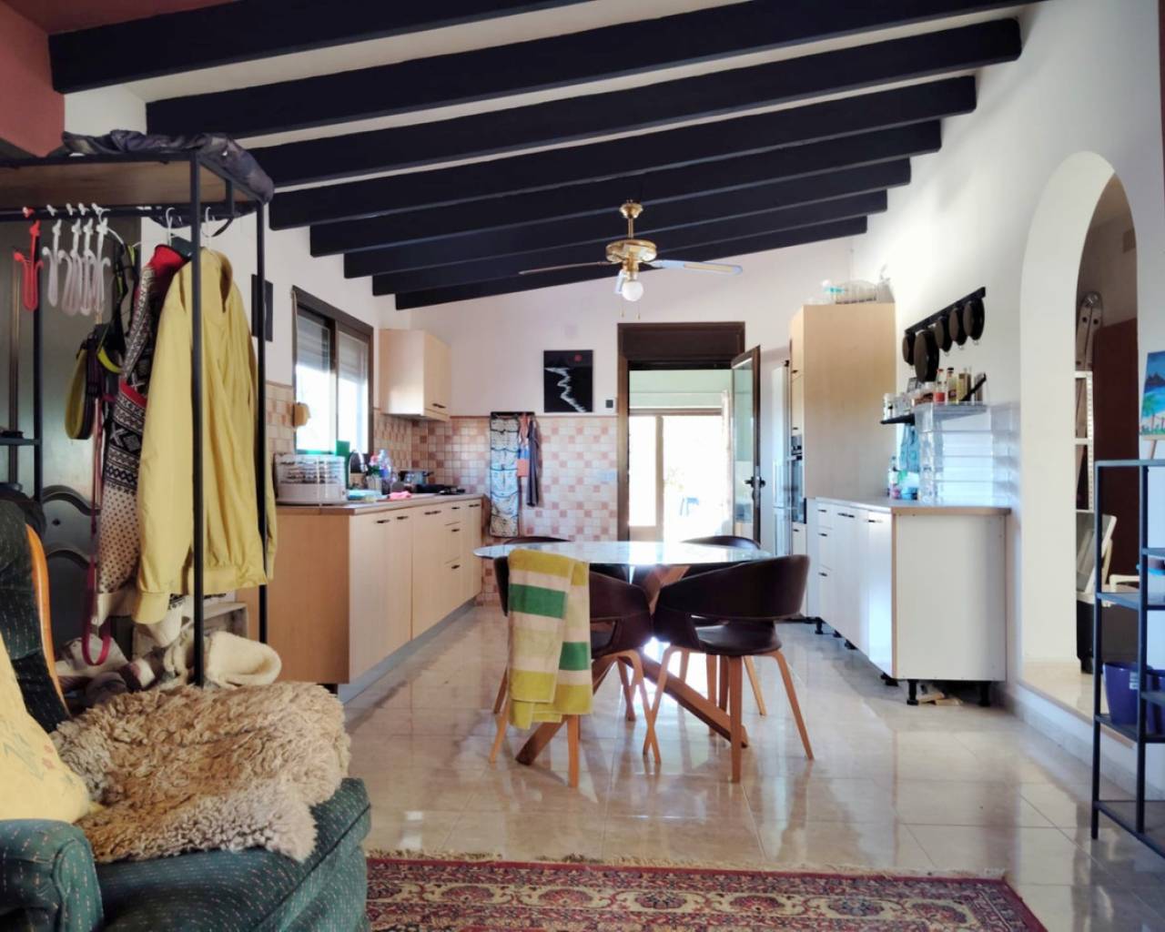 Unique Opportunity: Charming Estate with Olive Trees and Pool Just Minutes from TeuladaAre you looking for tranquility, space, and a natural environment without sacrificing comfort? This fantastic property has it all. Located just a few minutes' walk from the center of Teulada, this estate of 5,165 m² offers you a true refuge in nature, surrounded by fruit trees and 90 producing olive trees. The main house, with an area of 132 m², stands out for its cozy and functional style, featuring three bedrooms—two of them very spacious and the third a bit smaller—two full bathrooms, one of them en suite. The living-dining room opens to a spacious and bright kitchen. Outside, you will enjoy a beautiful pool, a large barbecue area, a summer kitchen with a traditional oven, shaded pergolas, and perfect corners to relax or share unforgettable moments with family and friends. Additionally, it includes a garage, an independent workshop where we find a press for olive cultivation, allowing you to enjoy your own Mediterranean olive oil. There is parking space for several vehicles. All this in a privileged location, with a rainwater well, as well as an interior patio for companion animals, away from noise, yet very close to all services. The home has several split air conditioning units and a closed wood-burning fireplace in the living room. Electricity and water services are connected with municipal services. This property is perfect both as a primary residence and a second home, with great potential for lovers of the countryside, agriculture, or those simply seeking quality of life in an exceptional setting. Make your dream a reality!!