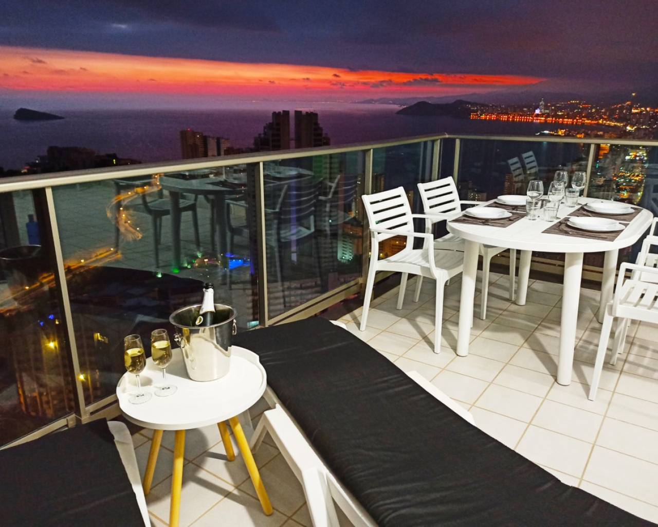 On the 29th floor of Torre Lugano, this apartment offers stunning panoramic views over the sea and the city of Benidorm. The apartment has a surface area of 89m² with 2 bedrooms, 2 bathrooms, a living room, and a large terrace where one can enjoy the sun and the views. There are also 2 private parking spaces and 1 storage room within the building. The apartment is facing full south. It is very well maintained and has a new Daikin air conditioning unit with integrated WIFI from the year 2024. The Torre Lugano building is the 2nd tallest building in Benidorm, with a total of 42 floors and a height of 158m. The apartment has a tourist license and is almost always rented out to tourists. It has its own website. The profitability is very high with demonstrable income of €26,600 in 2022, €29,500 in 2023, and €30,700 in 2024!! Website, furniture, accessories, customer base,... everything included! The apartment is in perfect condition and will be painted white again before handover. Torre Lugano in Benidorm features 2 large outdoor swimming pools, another pool for children, a gym, a large garden with a playground, a tennis court, a paddle court, and facilities for playing football and basketball.Torre Lugano has a doorman and video surveillance.