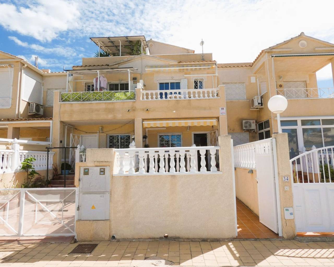 Welcome to this charming 83 m² townhouse, which offers a perfect home with stunning views. Here you will be greeted by two terraces on different levels. On the ground floor there is a large living room, kitchen and dining place and a patio with washing machine and storage. Upstairs there are two spacious bedrooms with built-in wardrobes and a large bathroom. This house has a west-facing balcony and roof terrace that offers stunning views of the mountains and the salt lake, making it the perfect place to relax. Enjoy access to a large and well-maintained communal pool, where you can cool off on those hot sunny days. The house is fully furnished and ready for you to move into immediately. Torrevieja is a lovely coastal resort known for its beautiful beaches and pleasant climate. The area offers a wide range of amenities, including shops, restaurants and entertainment options, making it easy to enjoy a comfortable lifestyle. In addition, there is a golf course nearby, perfect for golf enthusiasts. Don't miss the chance to own this fantastic home!