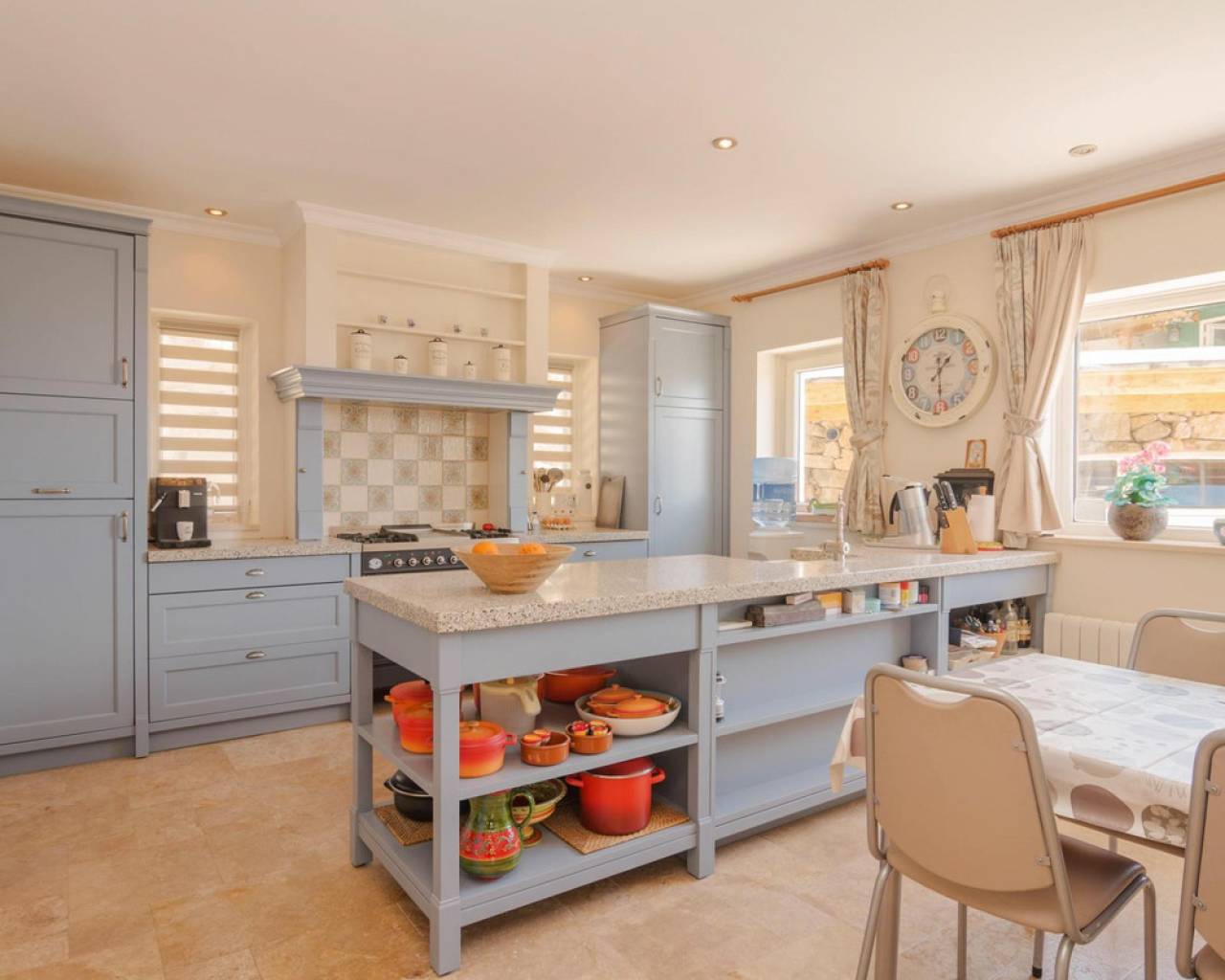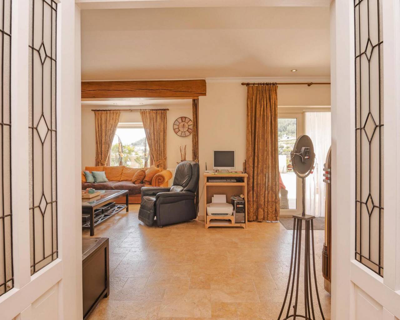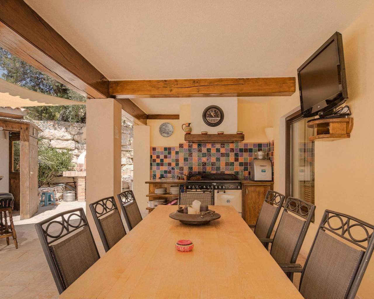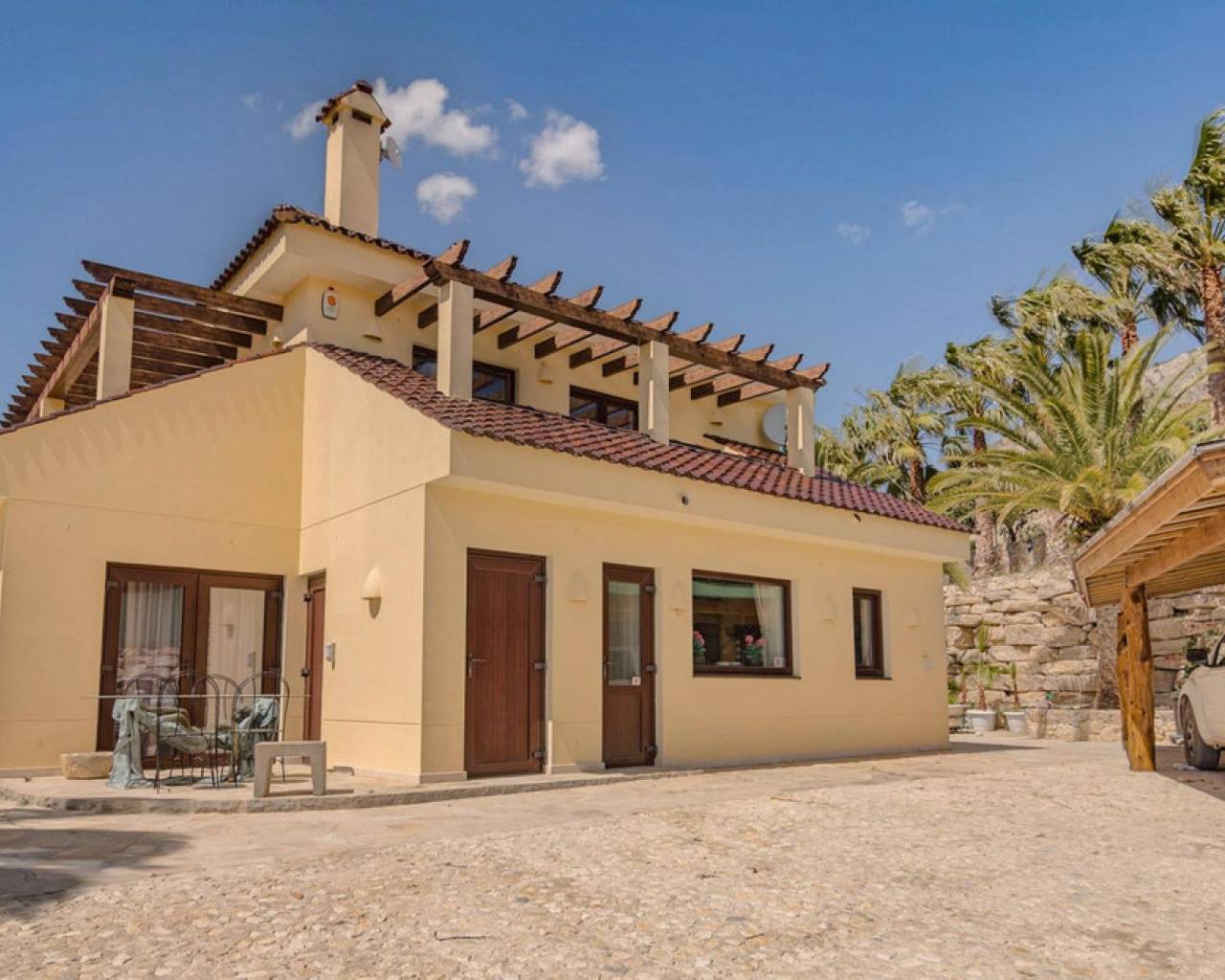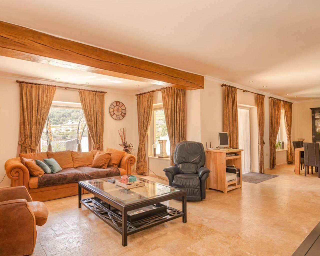 . Magnificent 4 bedroom villa in the hills of Callosa d'en Sarria     Great location in an oasis of tranquillity with panoramic views over the hills and even sea views!   This great house with a living area of approx. 320 m² was built under Dutch direction in 2012,2013 on a plot of 10.003 m². It is located in a rural area at approx. 4 km. from Callosa amidst orange, olive and medlar plantations. On the ground floor the house consists of an "official" entrance with spacious hall and guest toilet. The large living room access to a large, covered and open terrace and pool from where the view is overwhelming. The kitchen with utility room is large and fully equipped. Furthermore, on this floor the "master bedroom" with bathroom en-suite and walk-in closet, access to the large terrace. On the first floor there are three bedrooms, one with en-suite bathroom, each with its own terrace, and a second bathroom.  The house has terraces all around, so always a shady spot, and next to the pool a large outdoor kitchen, annex bar, which can be closed in the cooler winter months, so it can be used all year round. In short, a very interesting option for the more demanding enthusiasts!   The distance to the airport is about 80 km., the coast around Altea is 15 km.